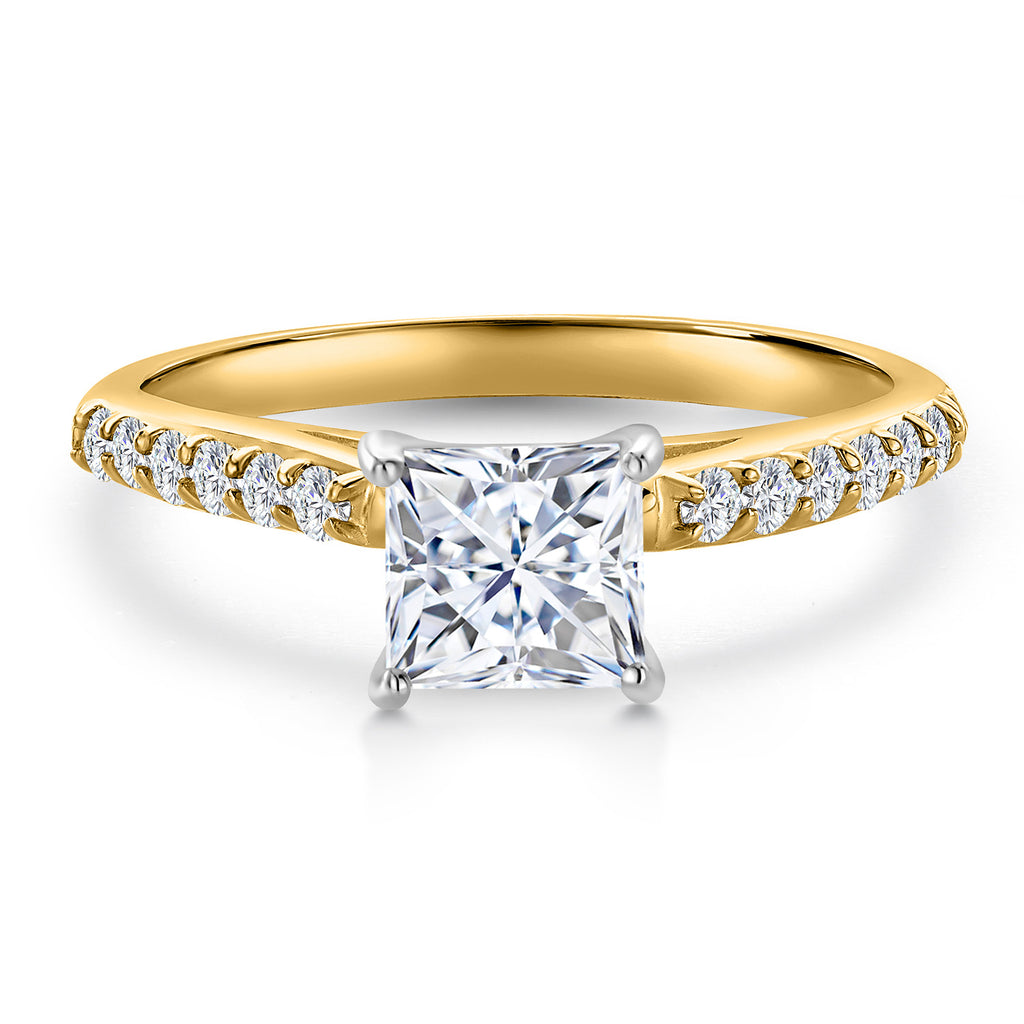 10K Two Tone Gold Princess 6MM Gemstone Birthstone and Lab Grown Diamond Engagement Ring For Women | Wedding Anniversary Promise Ring For Women | Size 5,6,7,8,9