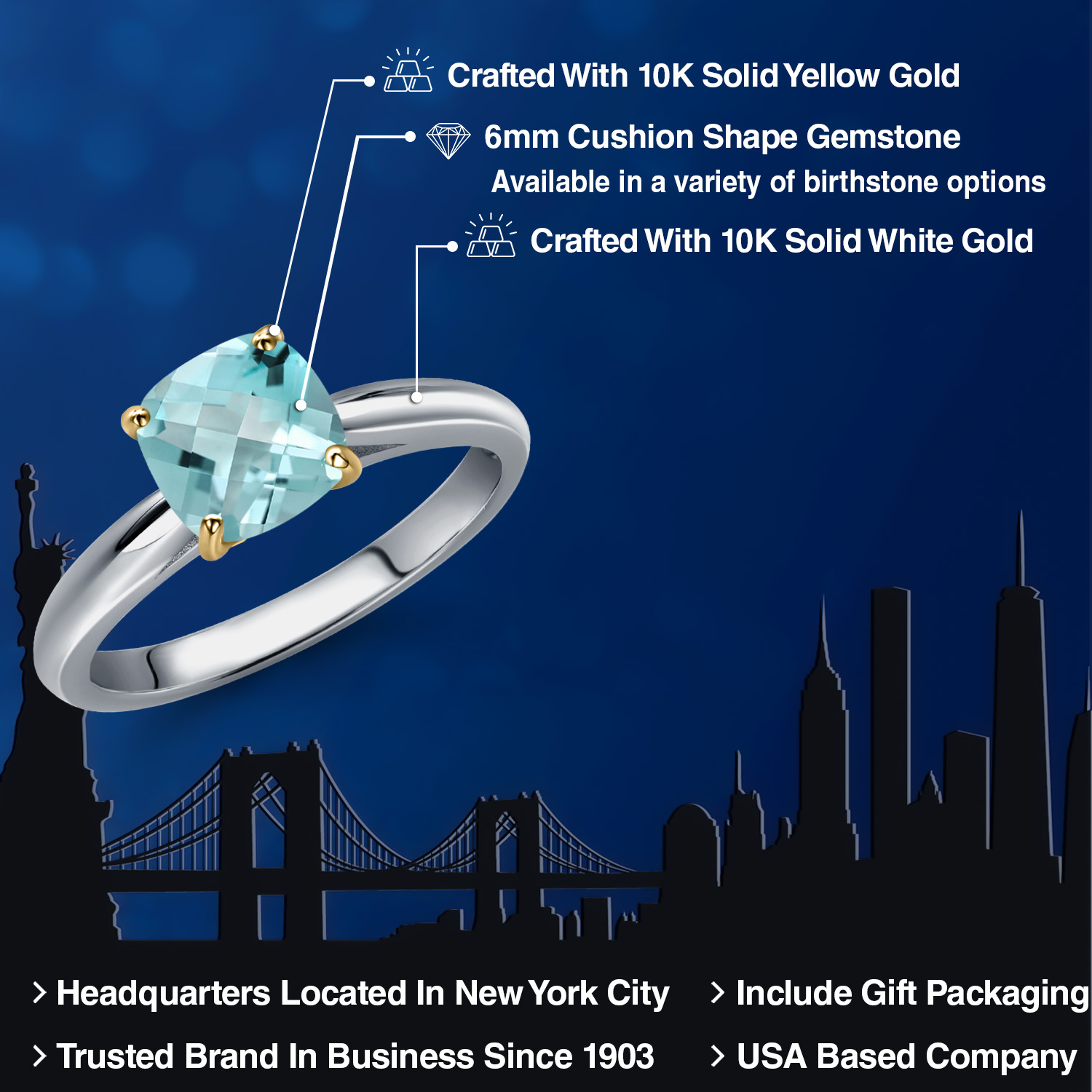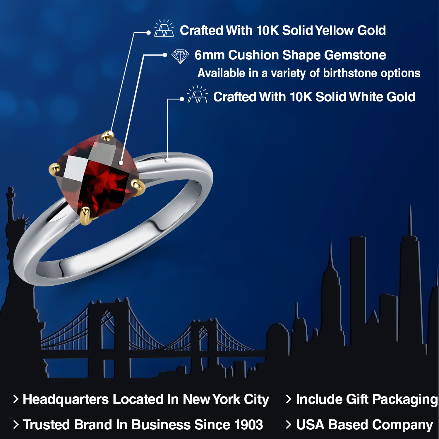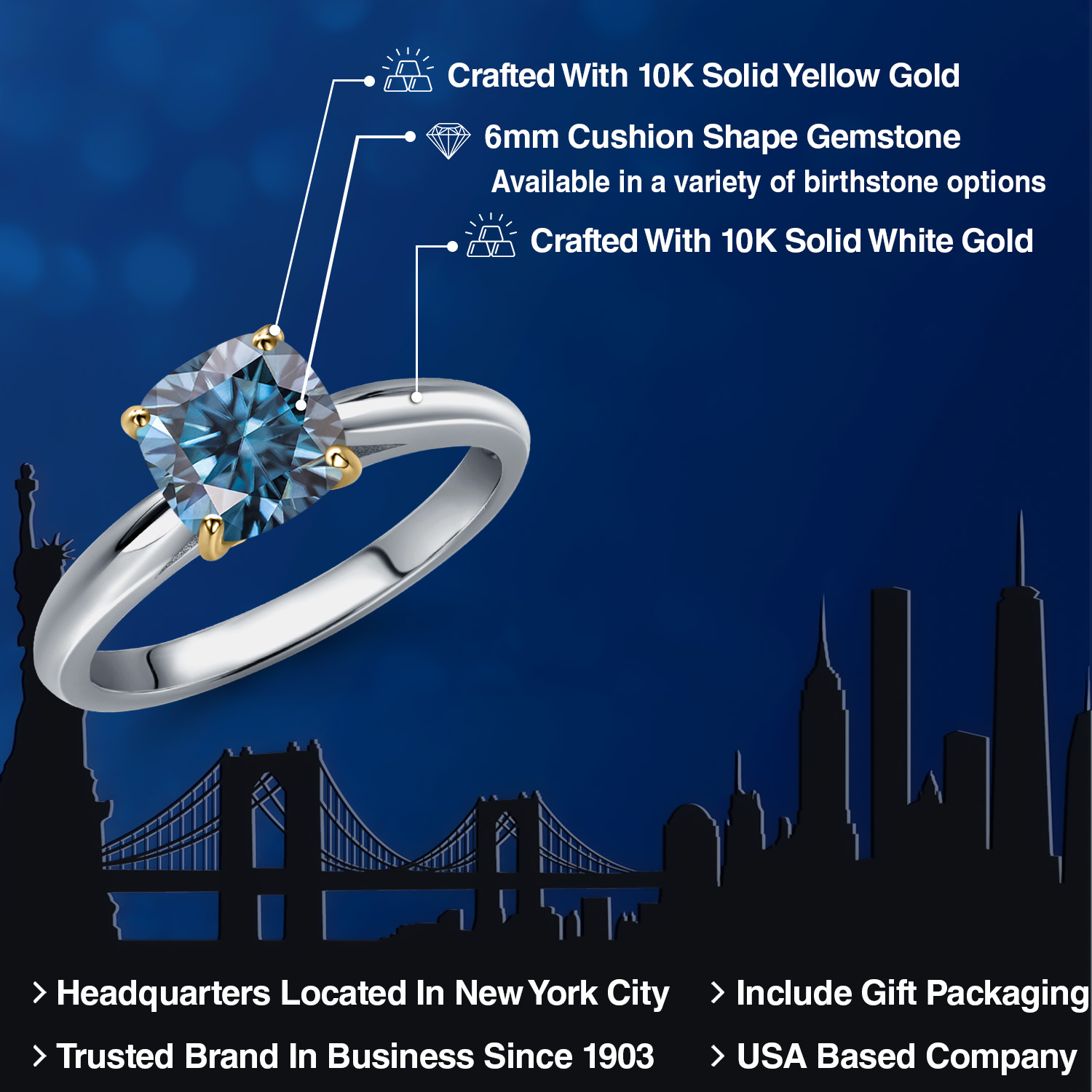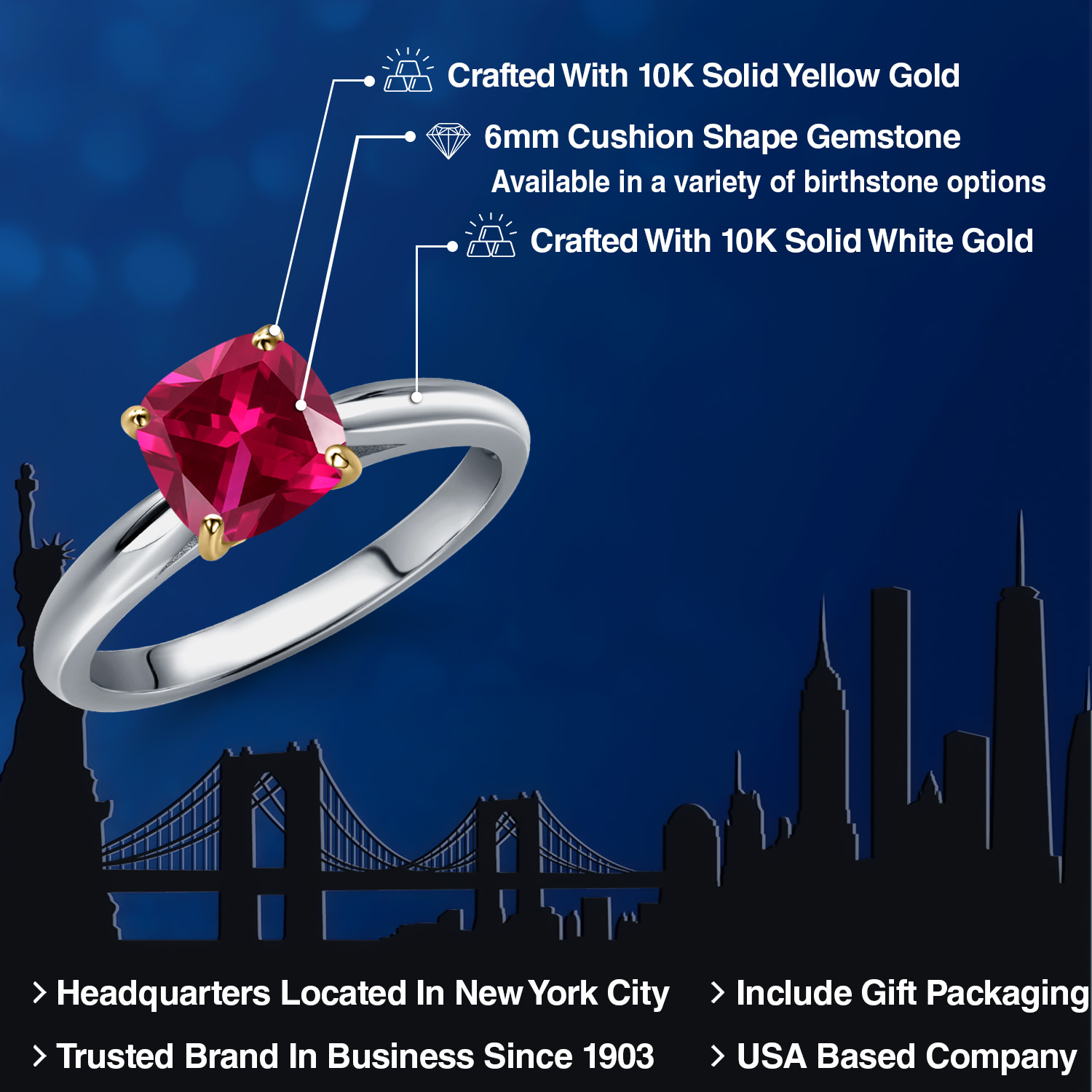 2-Tone Engagement Ring For Women | 925 Silver and 10K Yellow Gold | Gemstone Birthstone | 6MM Cushion Cut | Wedding Anniversary Promise Ring | Available In Size 5, 6, 7, 8, 9