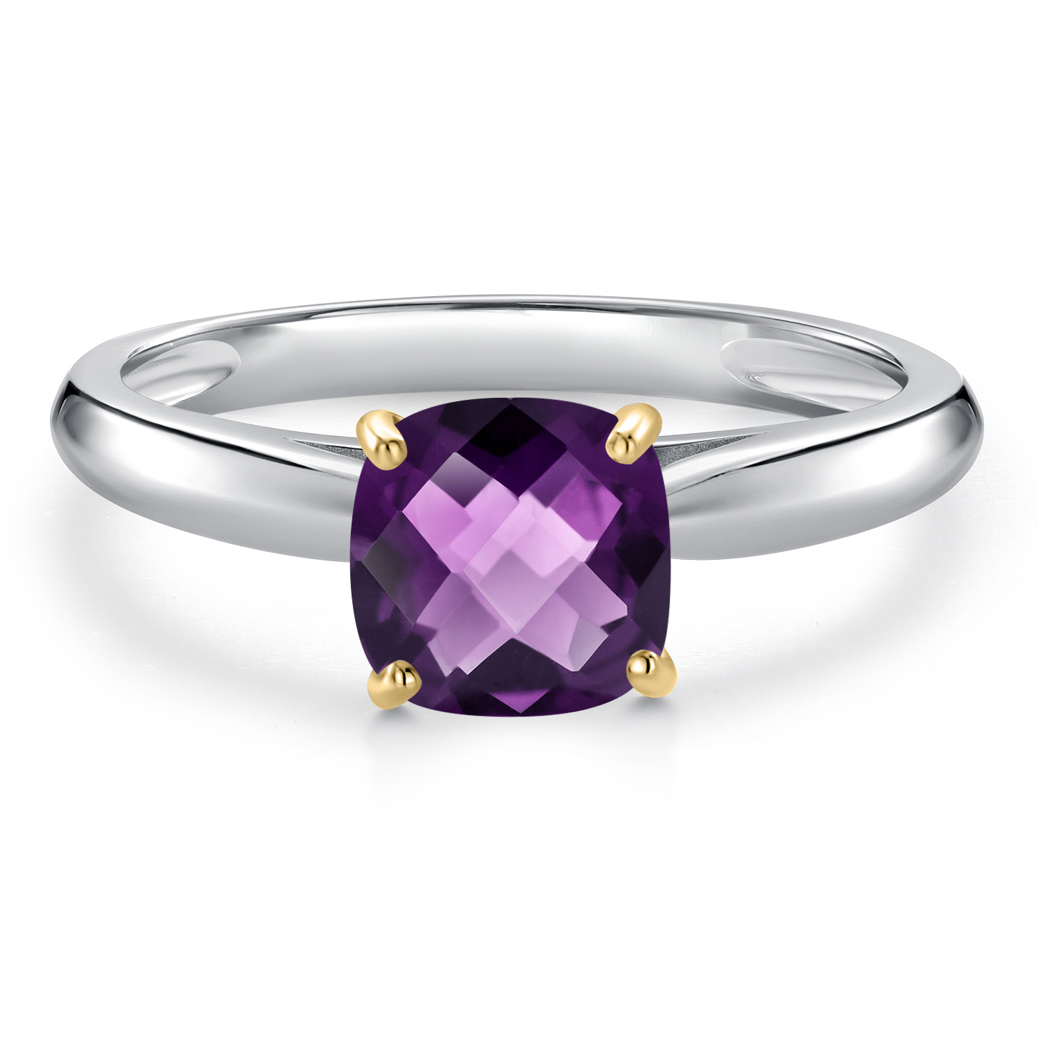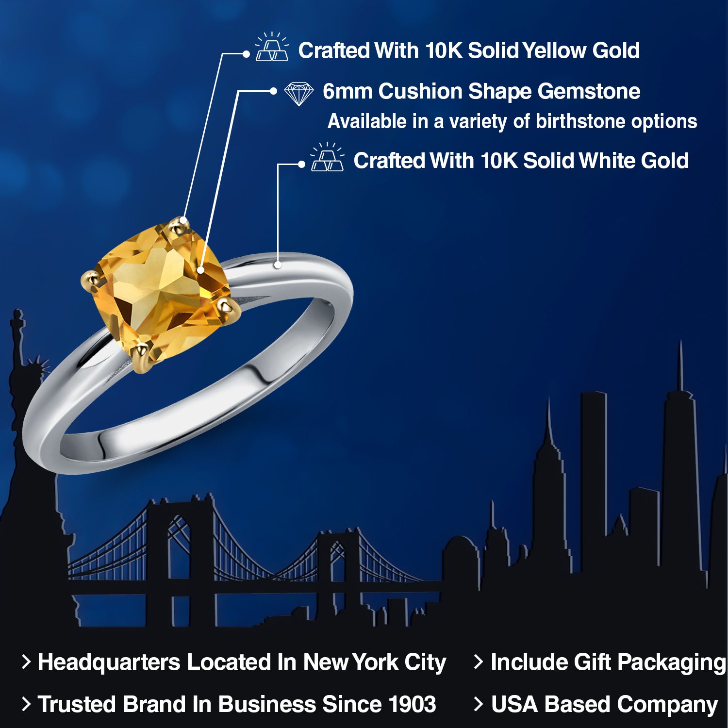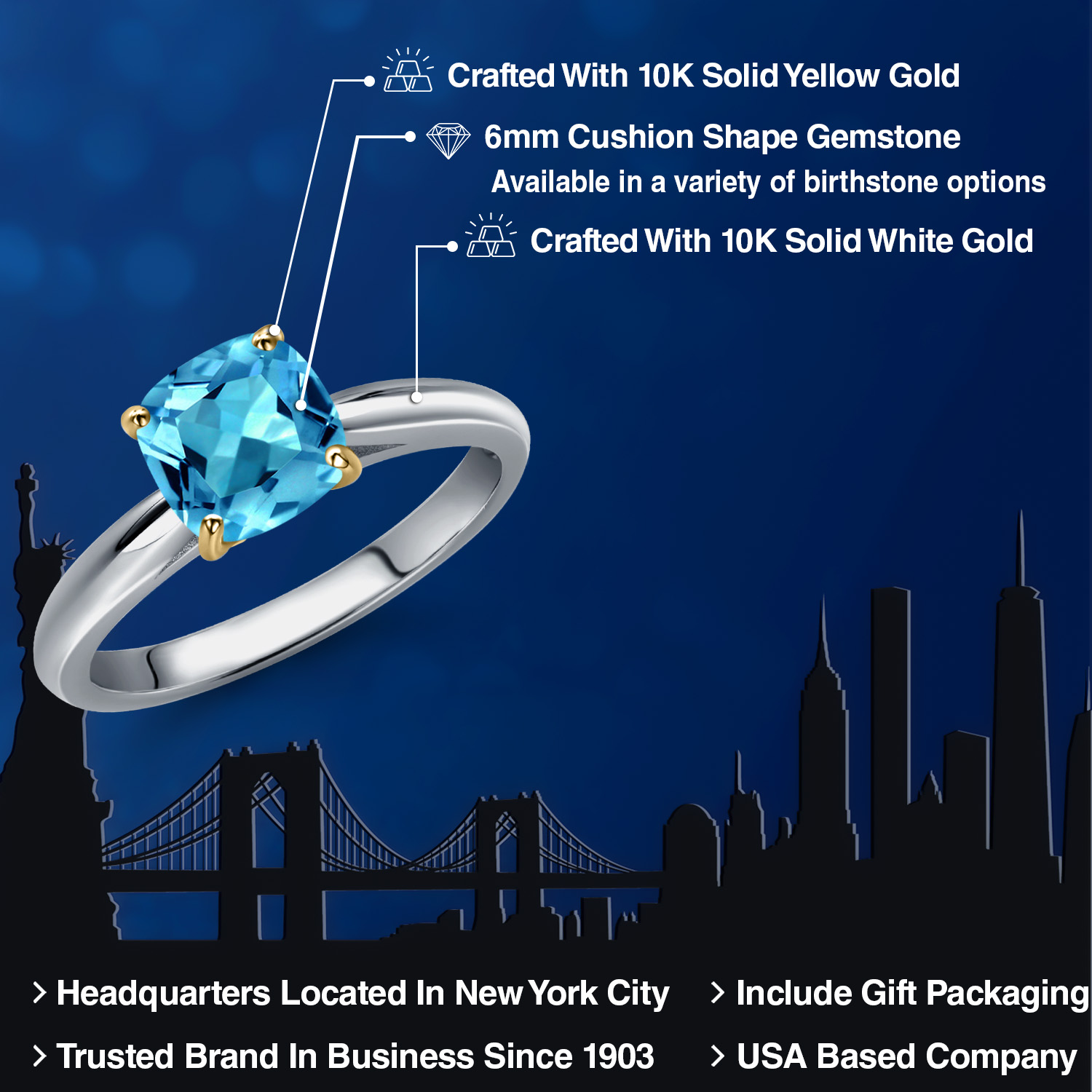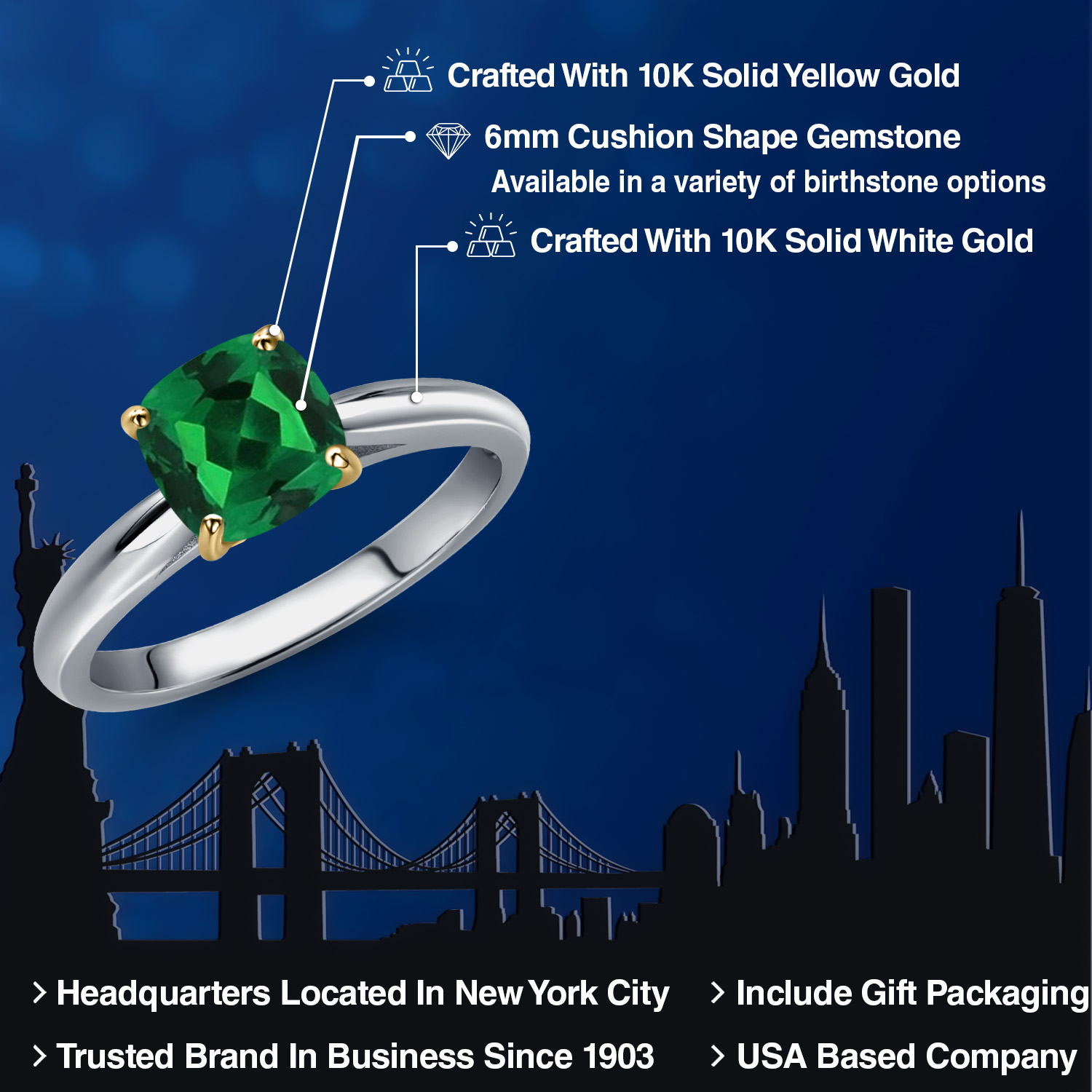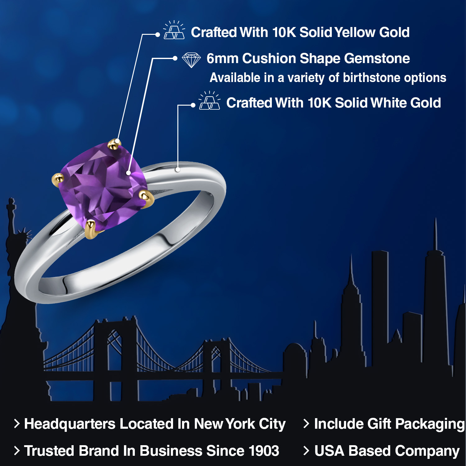 2-Tone Engagement Ring For Women | 925 Silver and 10K Yellow Gold | Gemstone Birthstone | 6MM Cushion Cut | Wedding Anniversary Promise Ring | Available In Size 5, 6, 7, 8, 9
