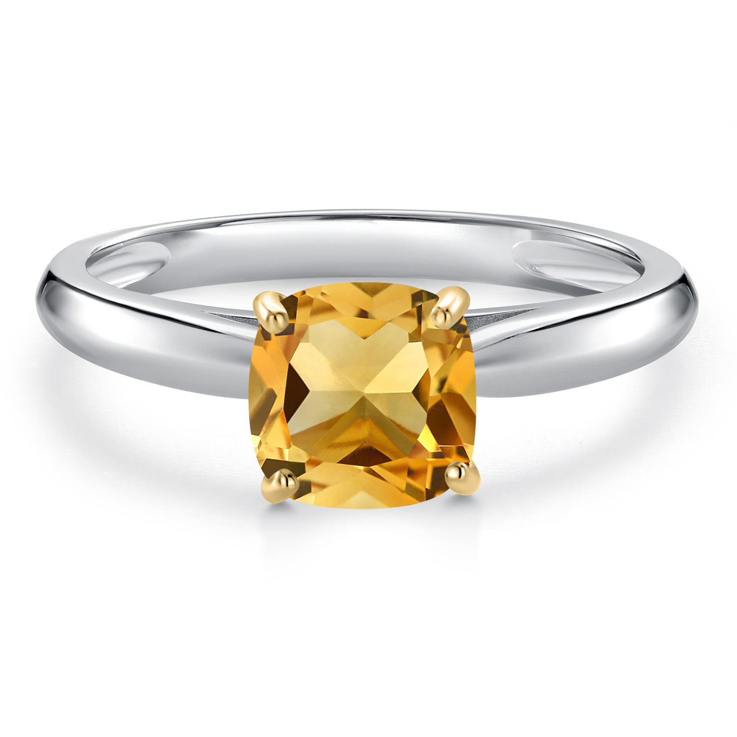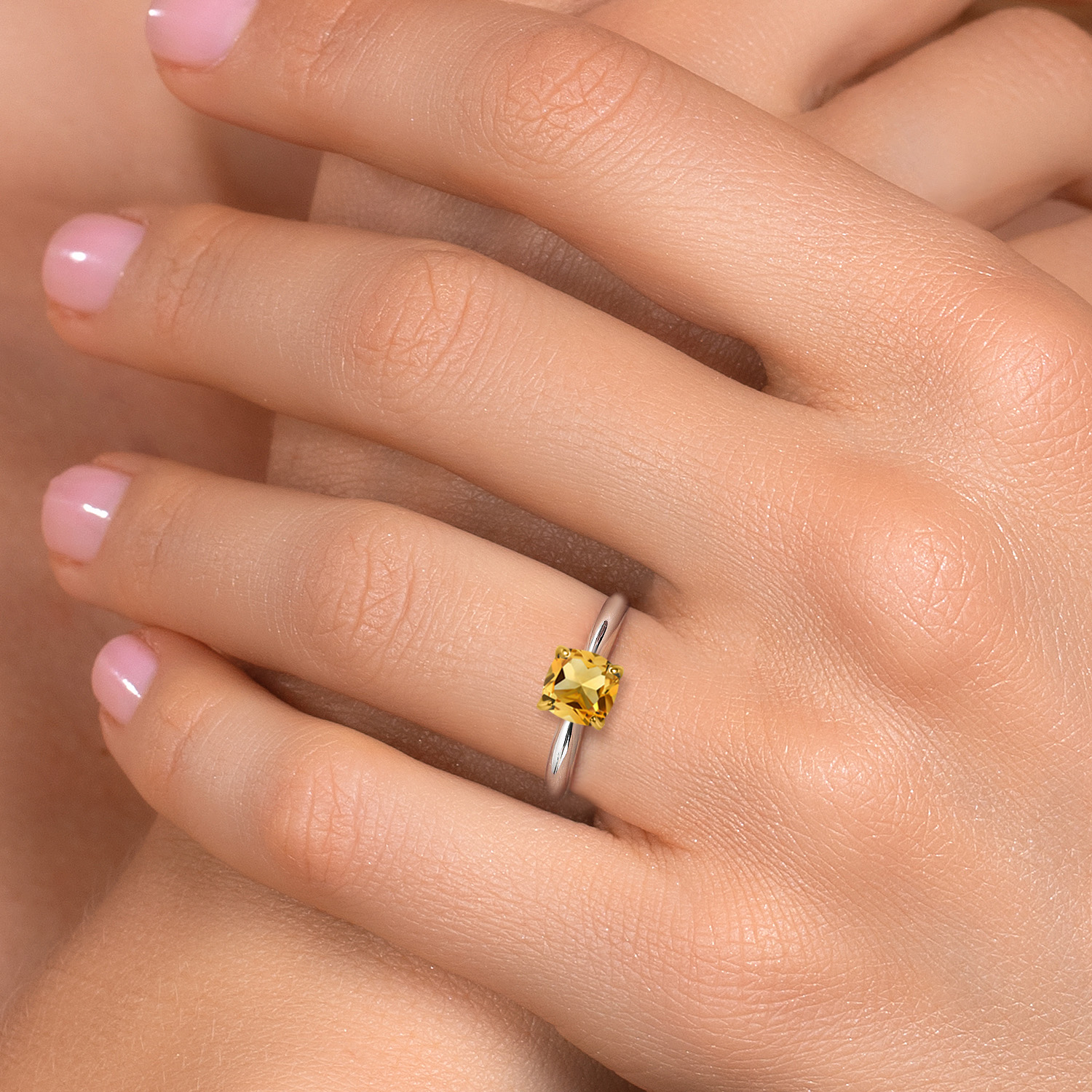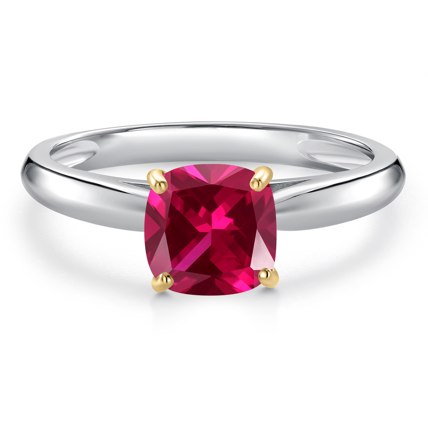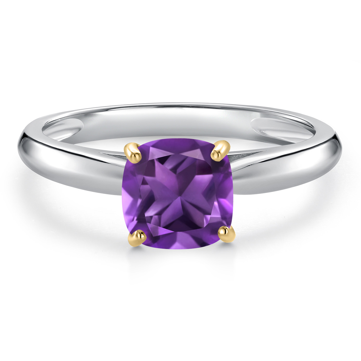 2-Tone Engagement Ring For Women | 925 Silver and 10K Yellow Gold | Gemstone Birthstone | 6MM Cushion Cut | Wedding Anniversary Promise Ring | Available In Size 5, 6, 7, 8, 9