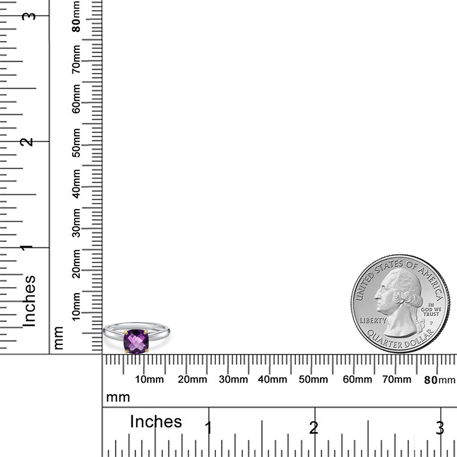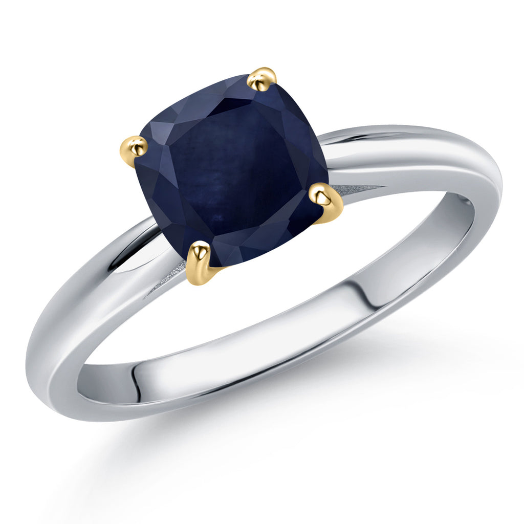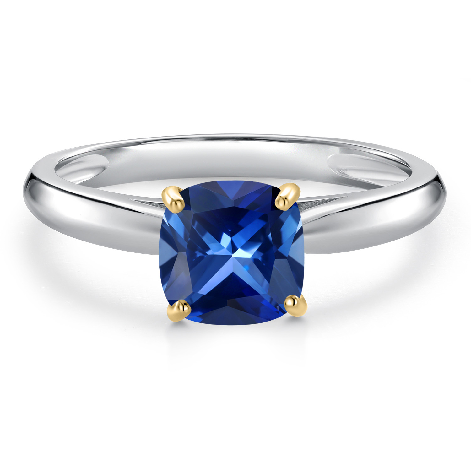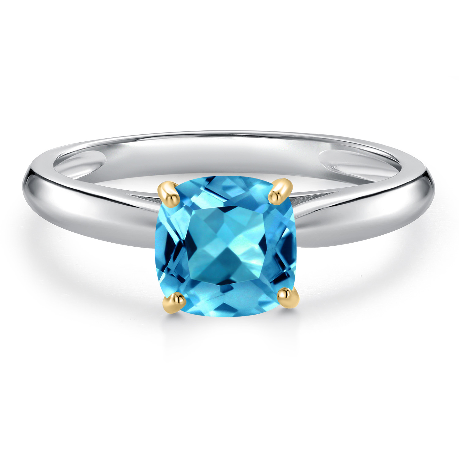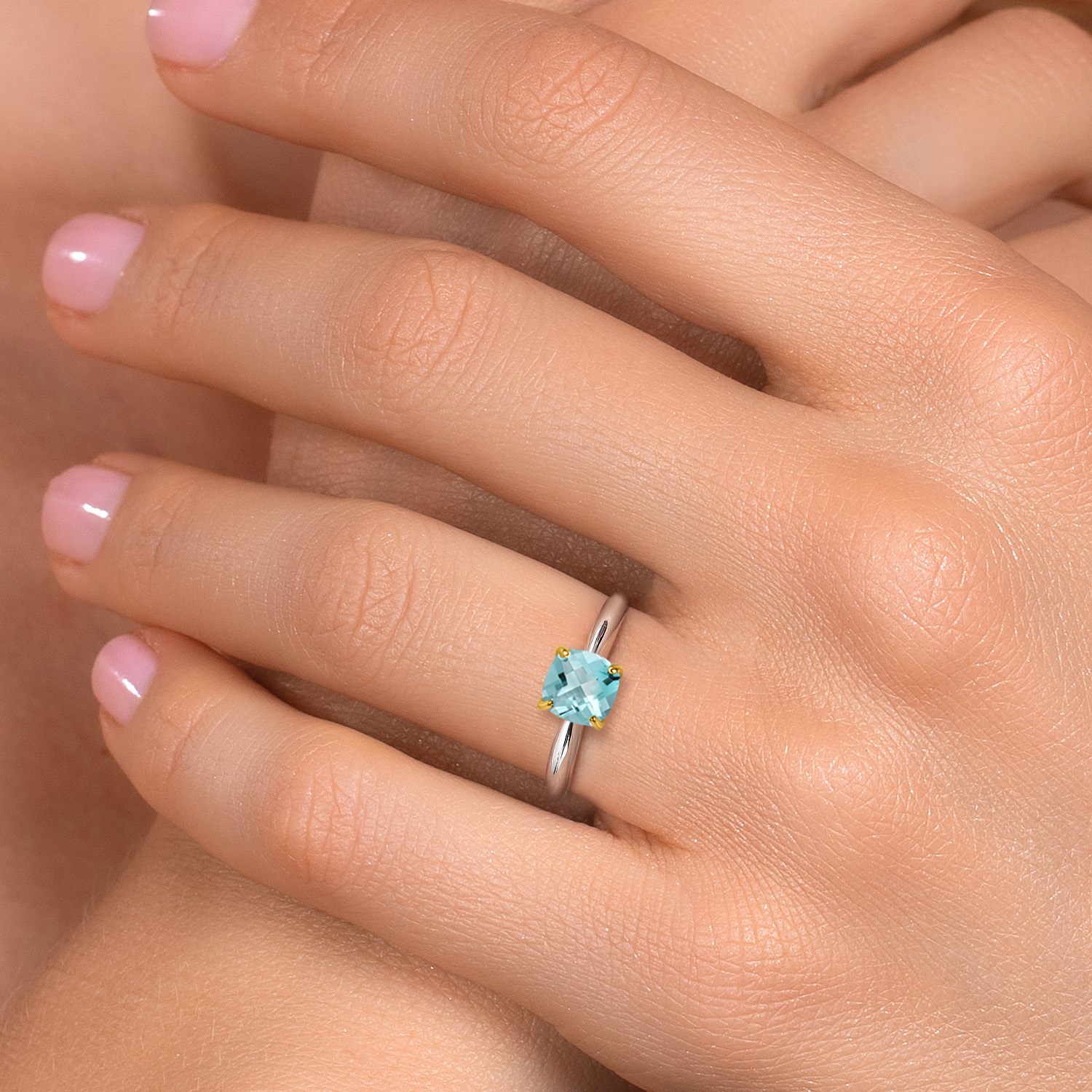 2-Tone Engagement Ring For Women | 925 Silver and 10K Yellow Gold | Gemstone Birthstone | 6MM Cushion Cut | Wedding Anniversary Promise Ring | Available In Size 5, 6, 7, 8, 9