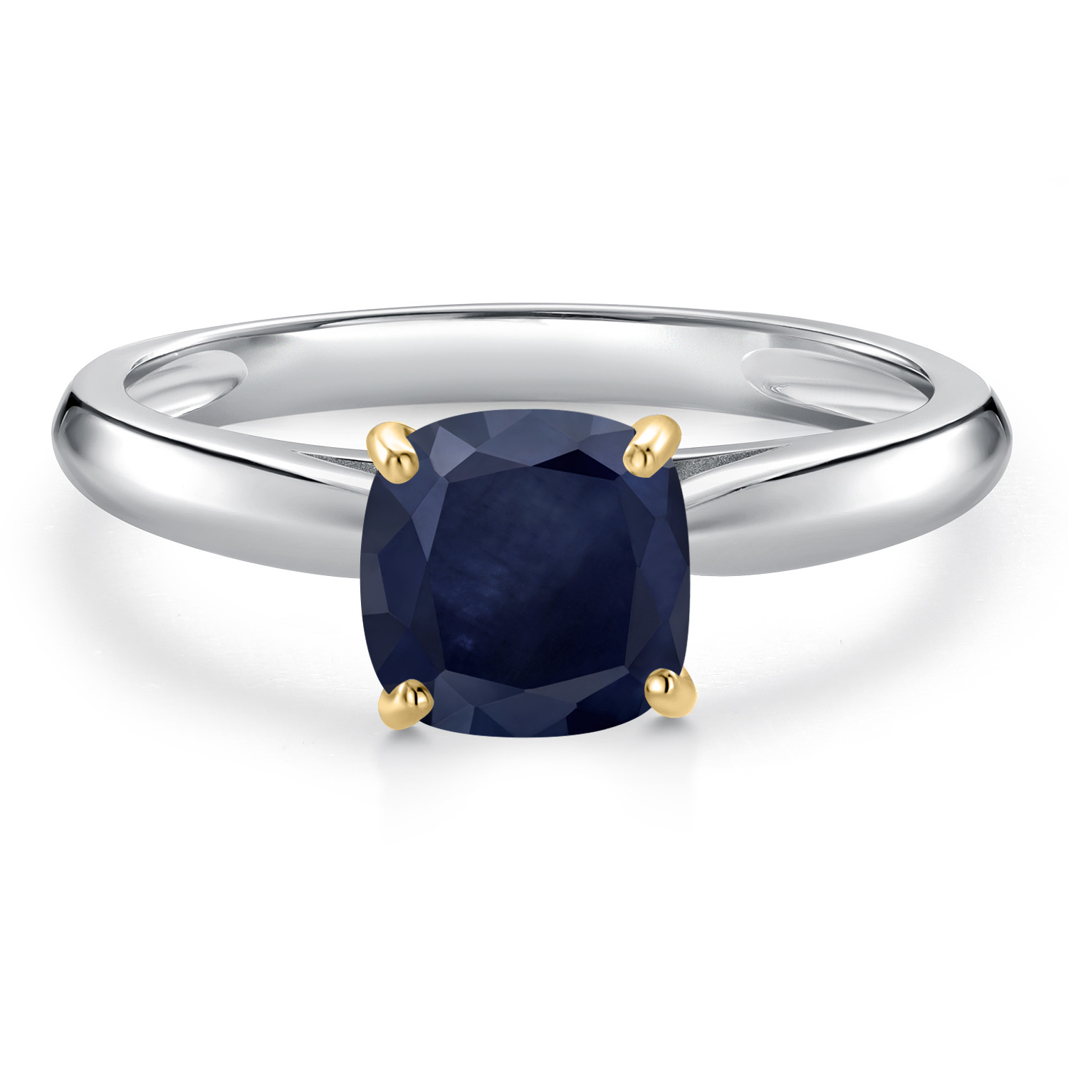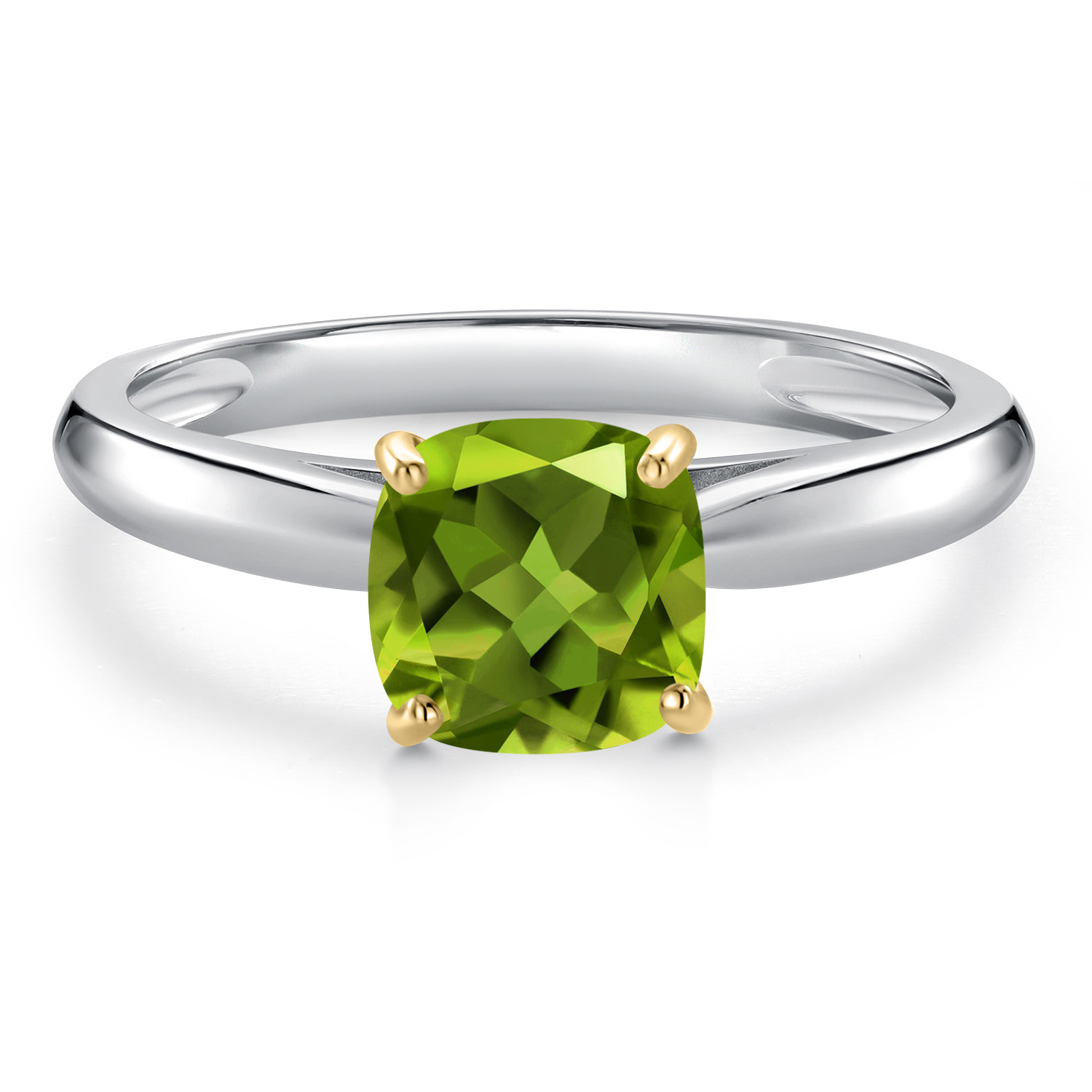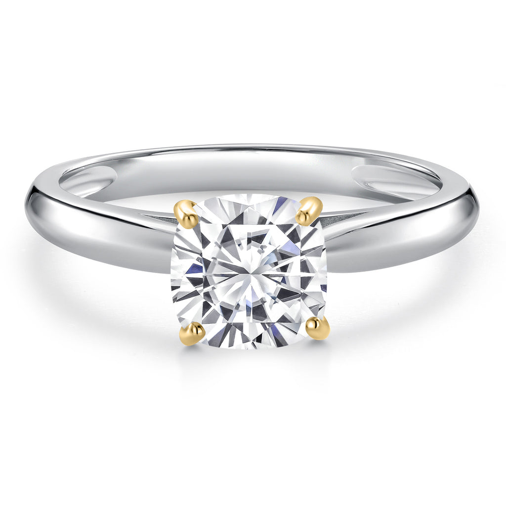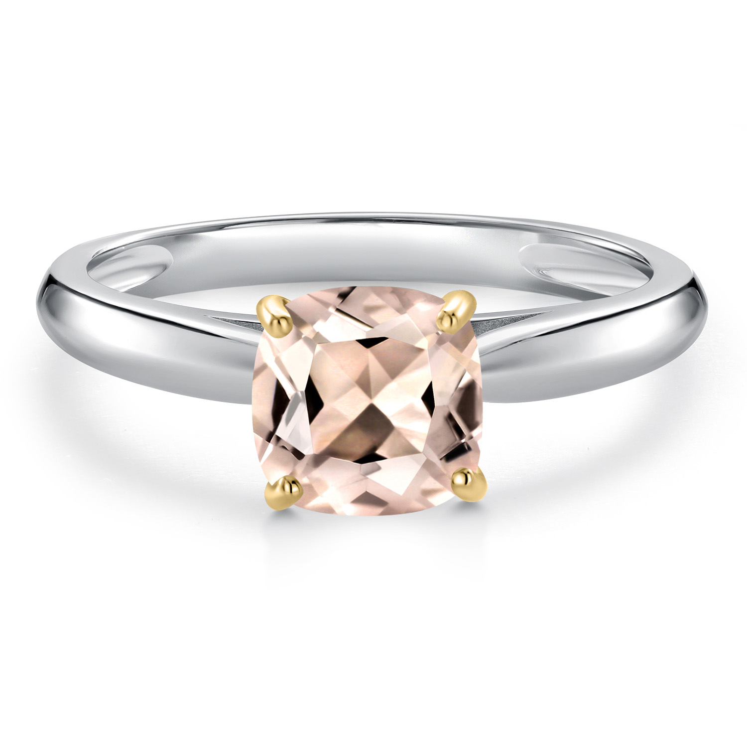 2-Tone Engagement Ring For Women | 925 Silver and 10K Yellow Gold | Gemstone Birthstone | 6MM Cushion Cut | Wedding Anniversary Promise Ring | Available In Size 5, 6, 7, 8, 9
