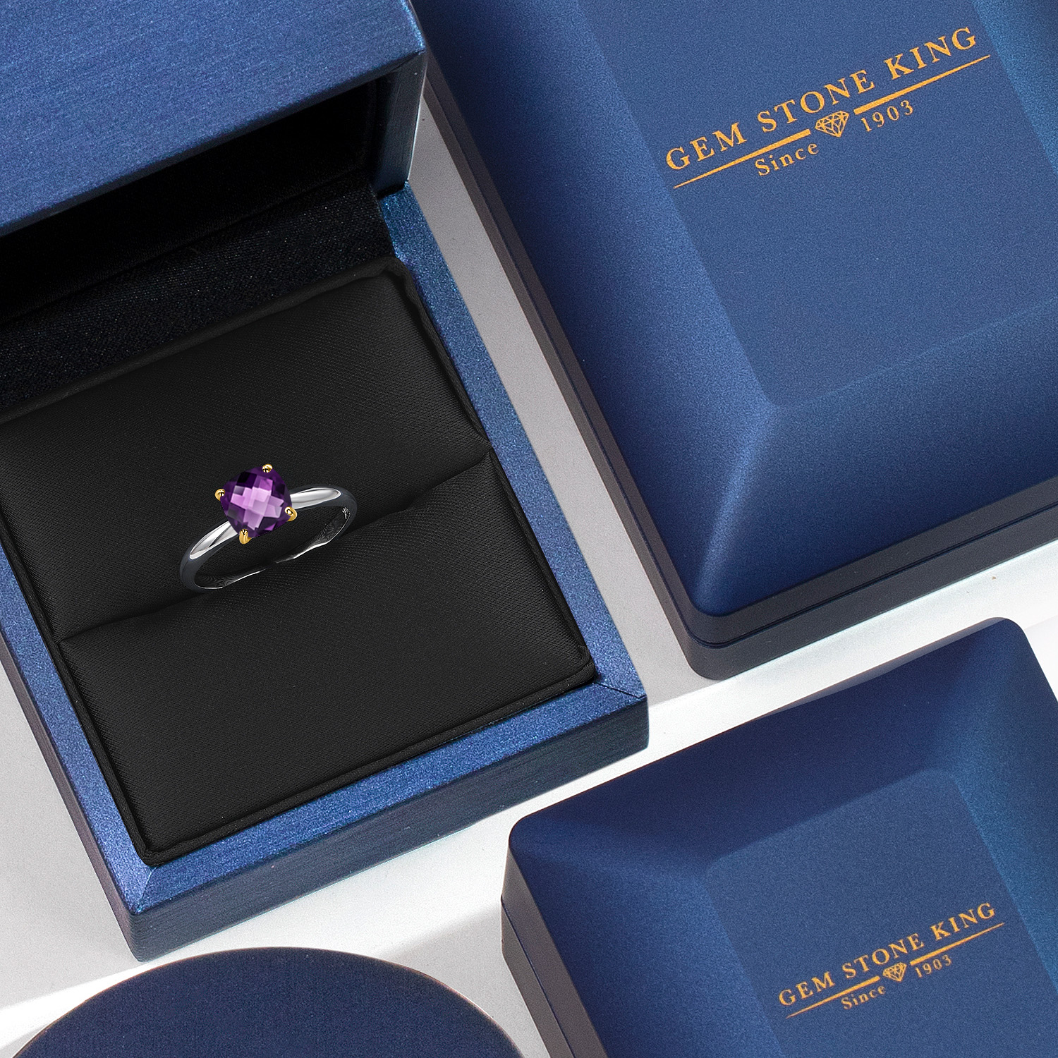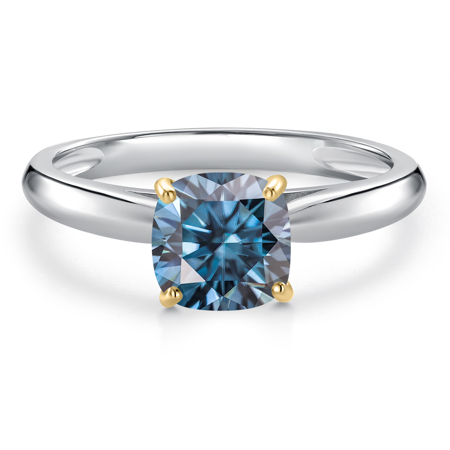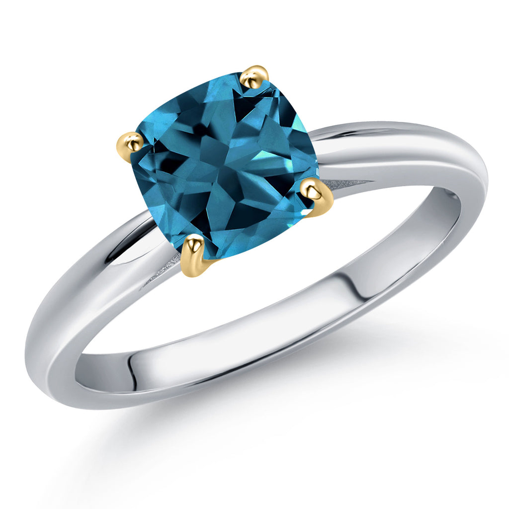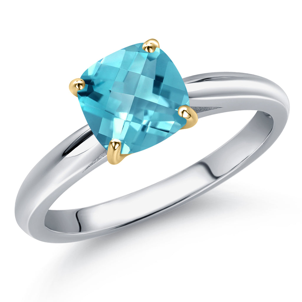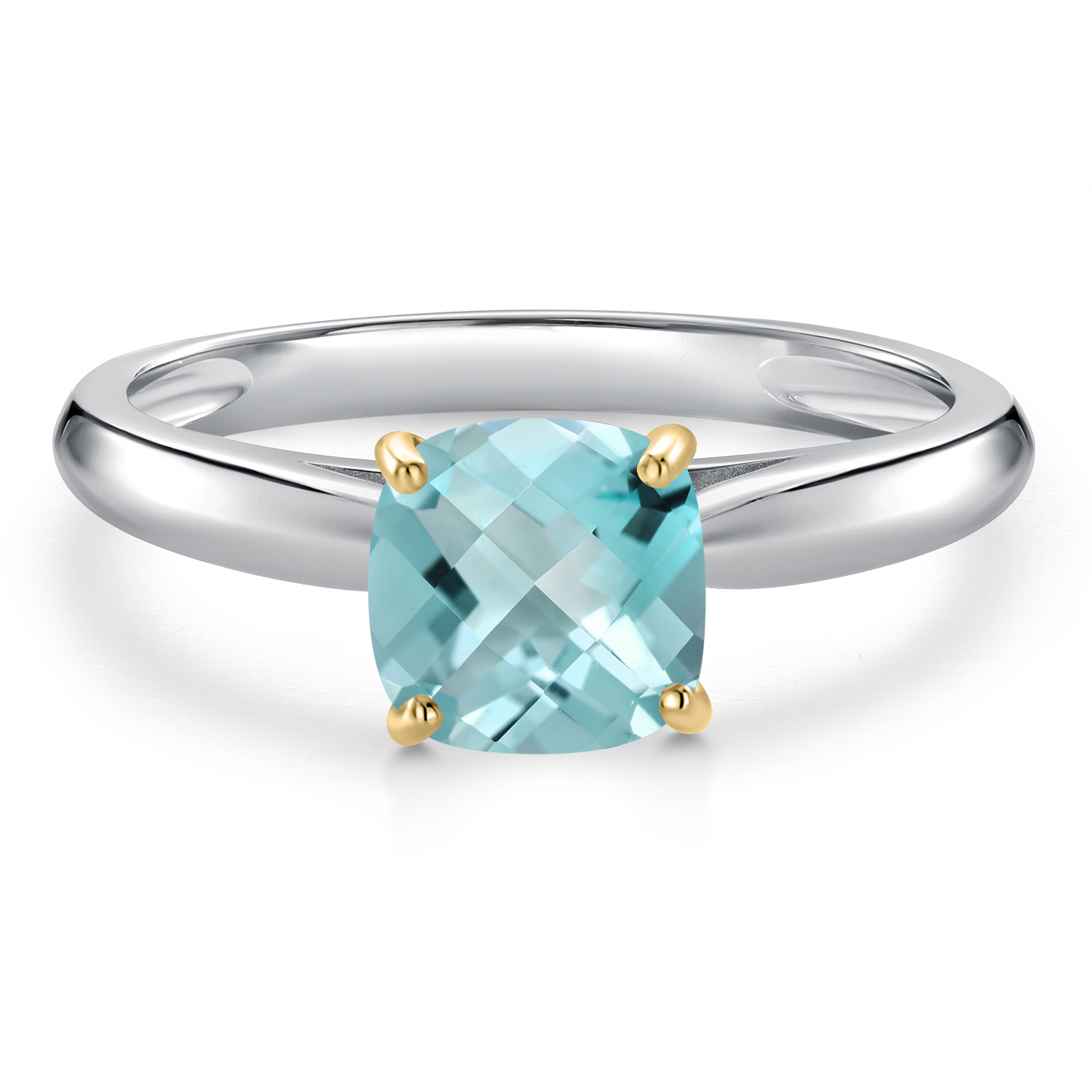 2-Tone Engagement Ring For Women | 925 Silver and 10K Yellow Gold | Gemstone Birthstone | 6MM Cushion Cut | Wedding Anniversary Promise Ring | Available In Size 5, 6, 7, 8, 9