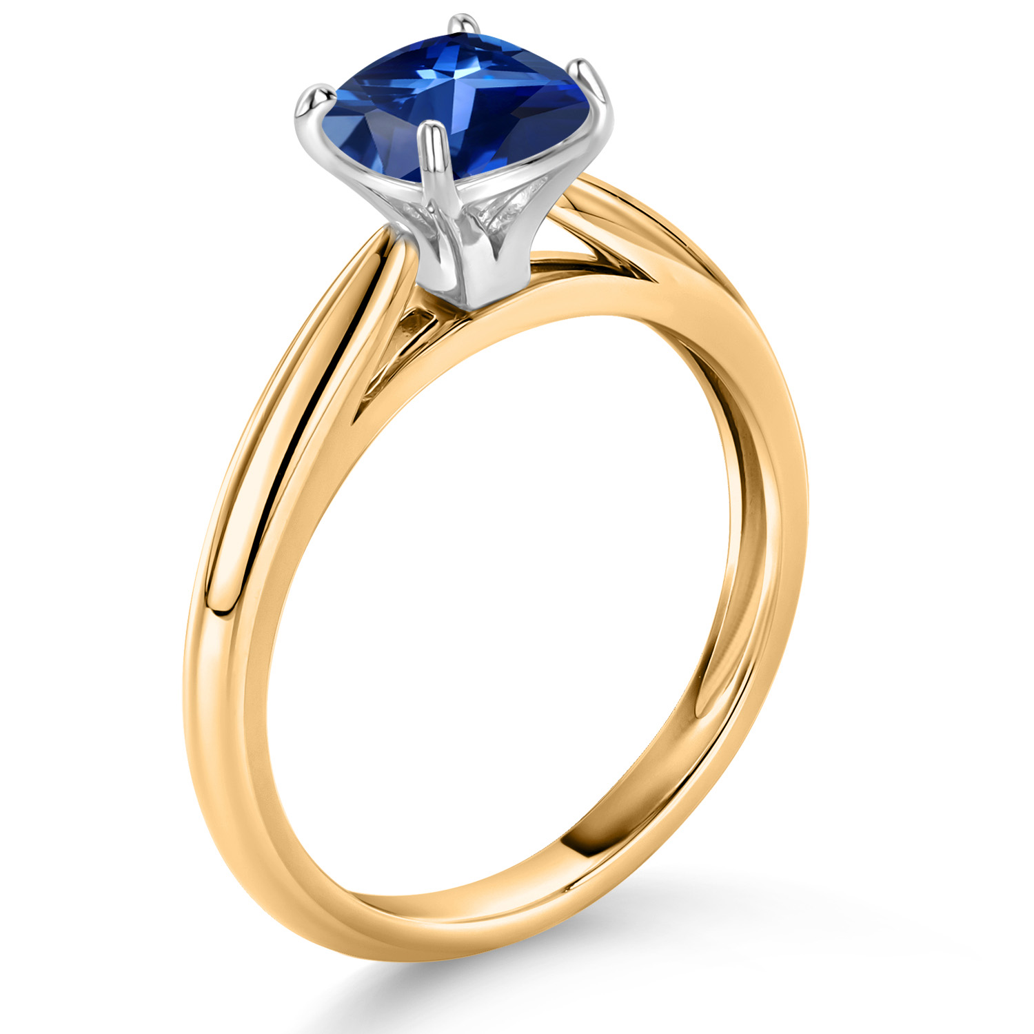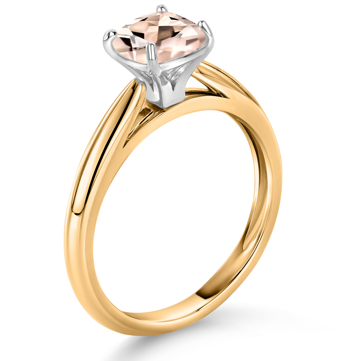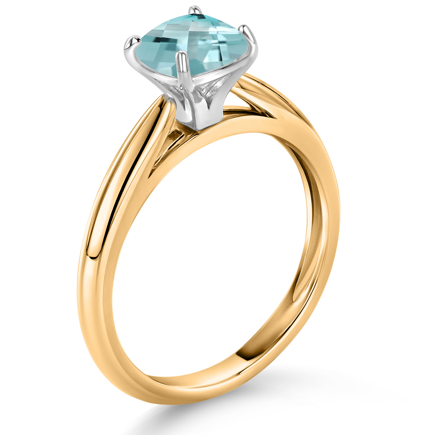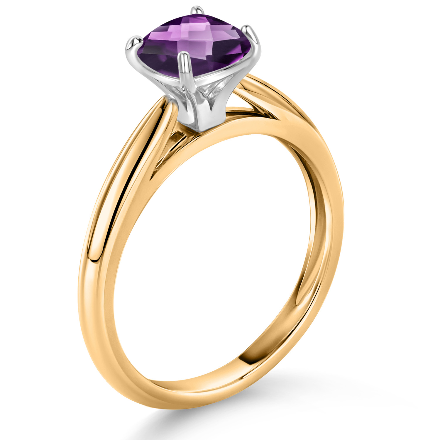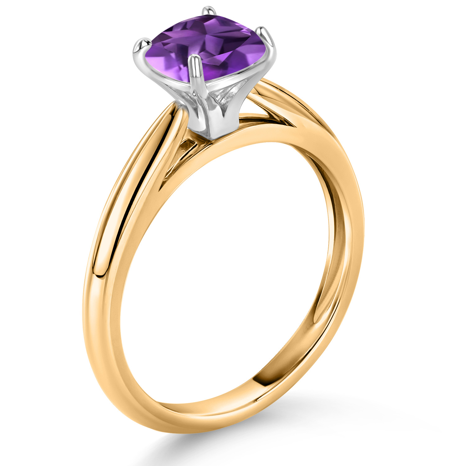10K Two-Tone Gold Gemstone Birthstone Solitaire Engagement Ring For Women | Cushion 6MM | Wedding Anniversary Promise Ring | Available In Size 5, 6, 7, 8, 9