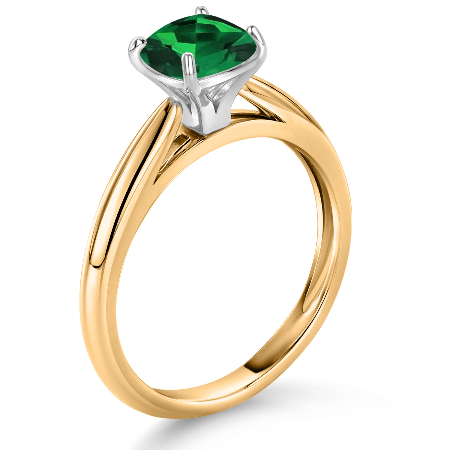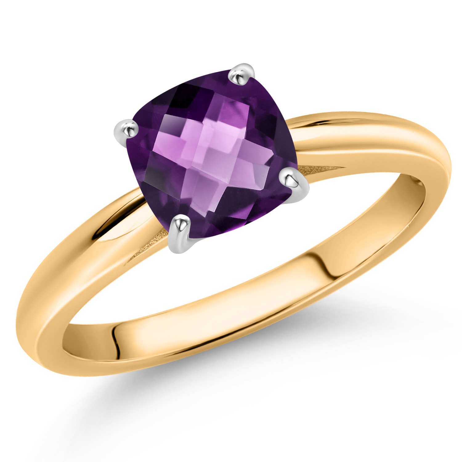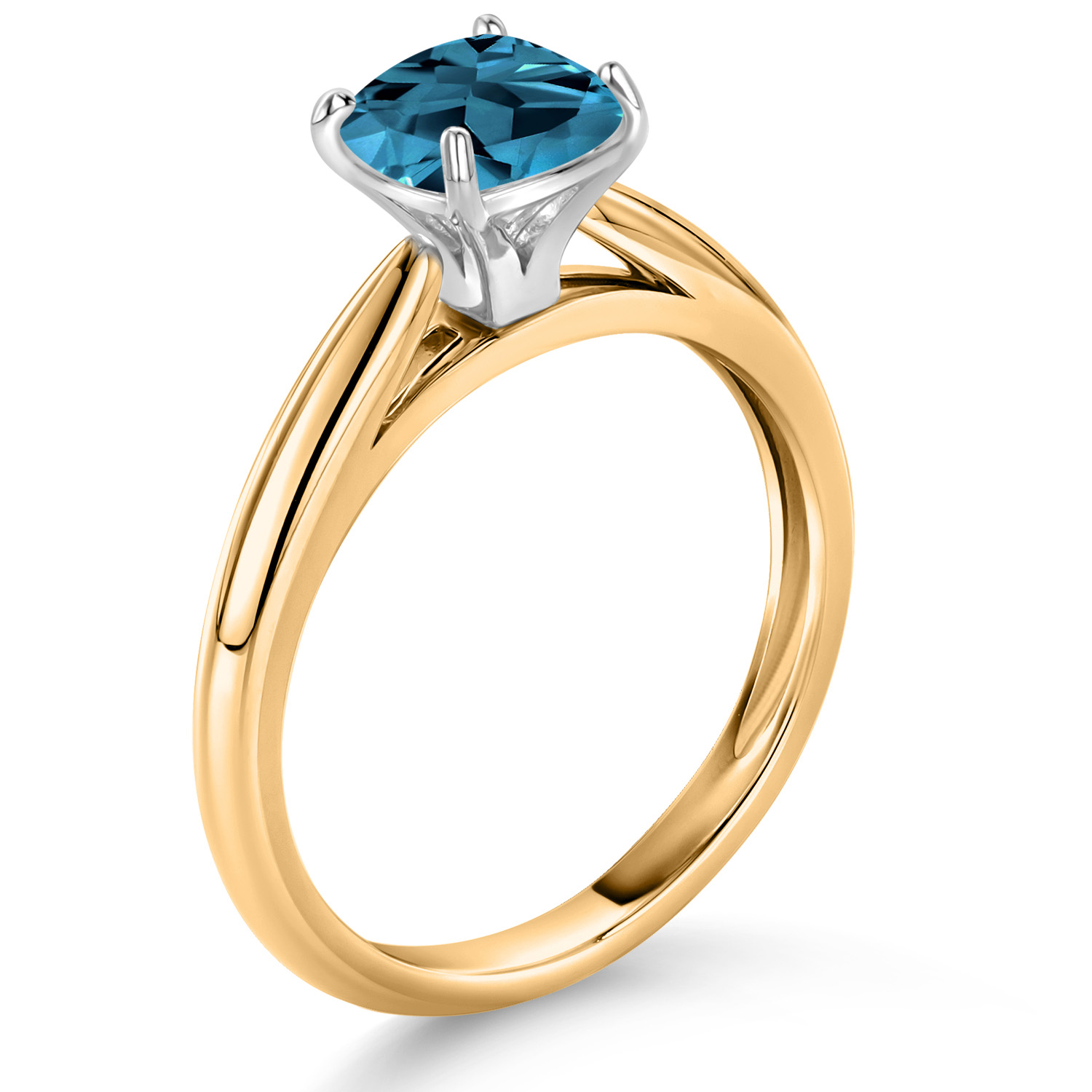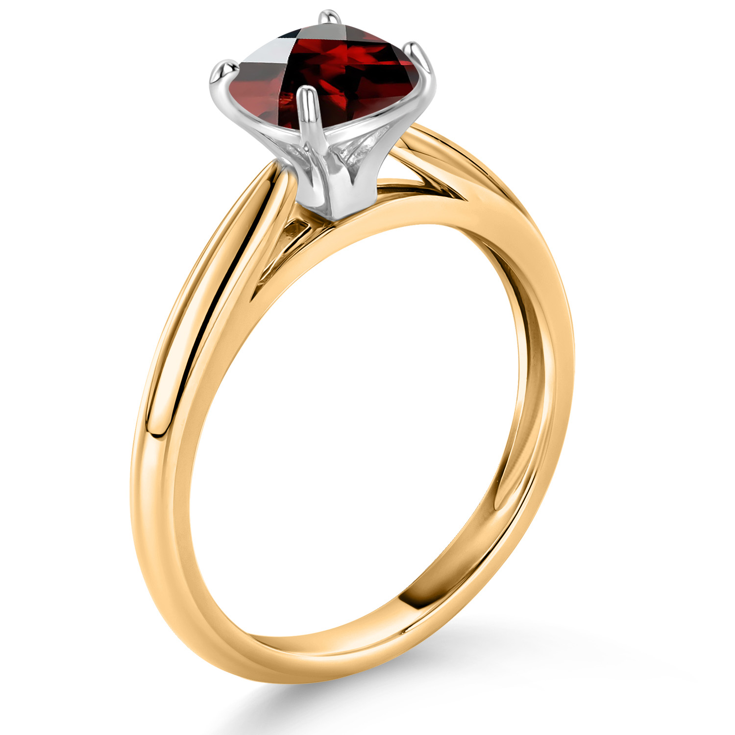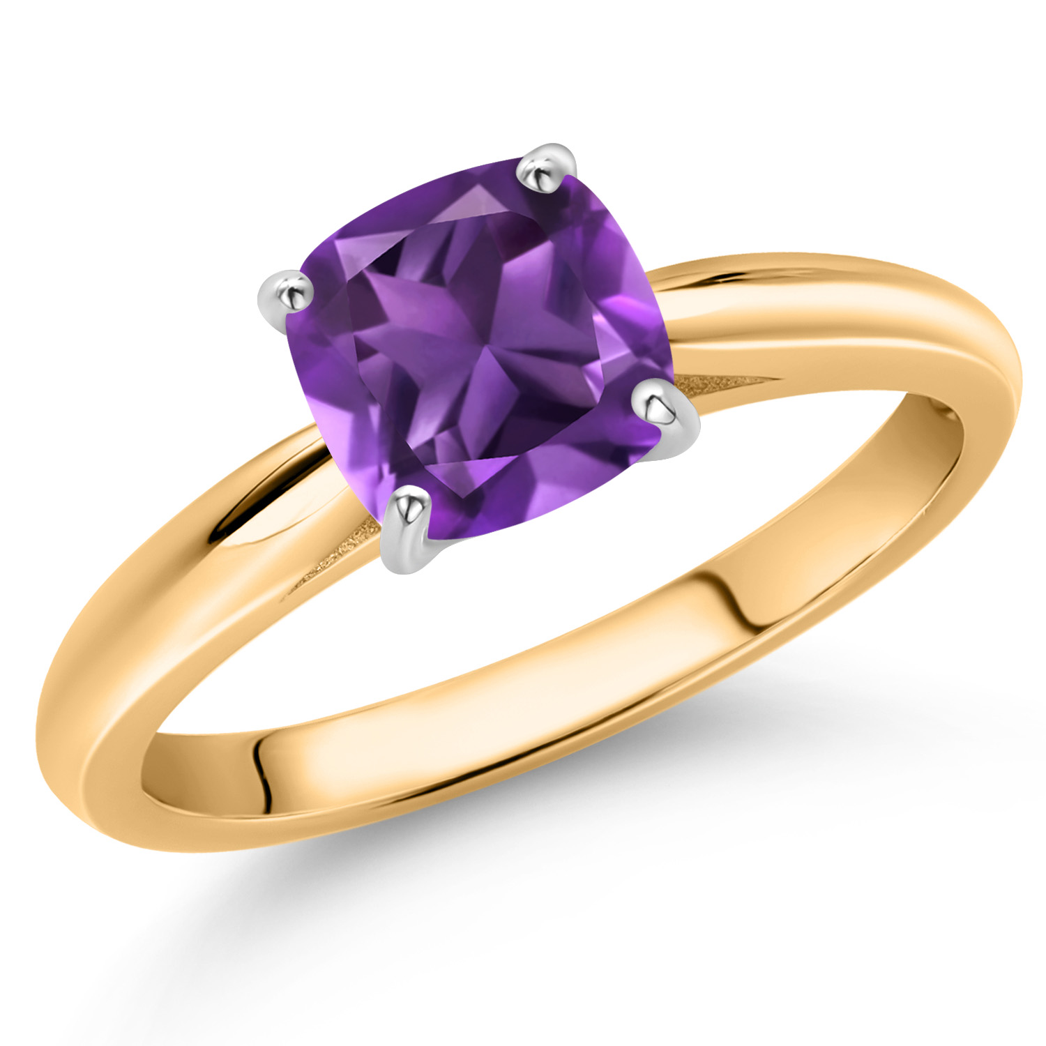 10K Two-Tone Gold Gemstone Birthstone Solitaire Engagement Ring For Women | Cushion 6MM | Wedding Anniversary Promise Ring | Available In Size 5, 6, 7, 8, 9