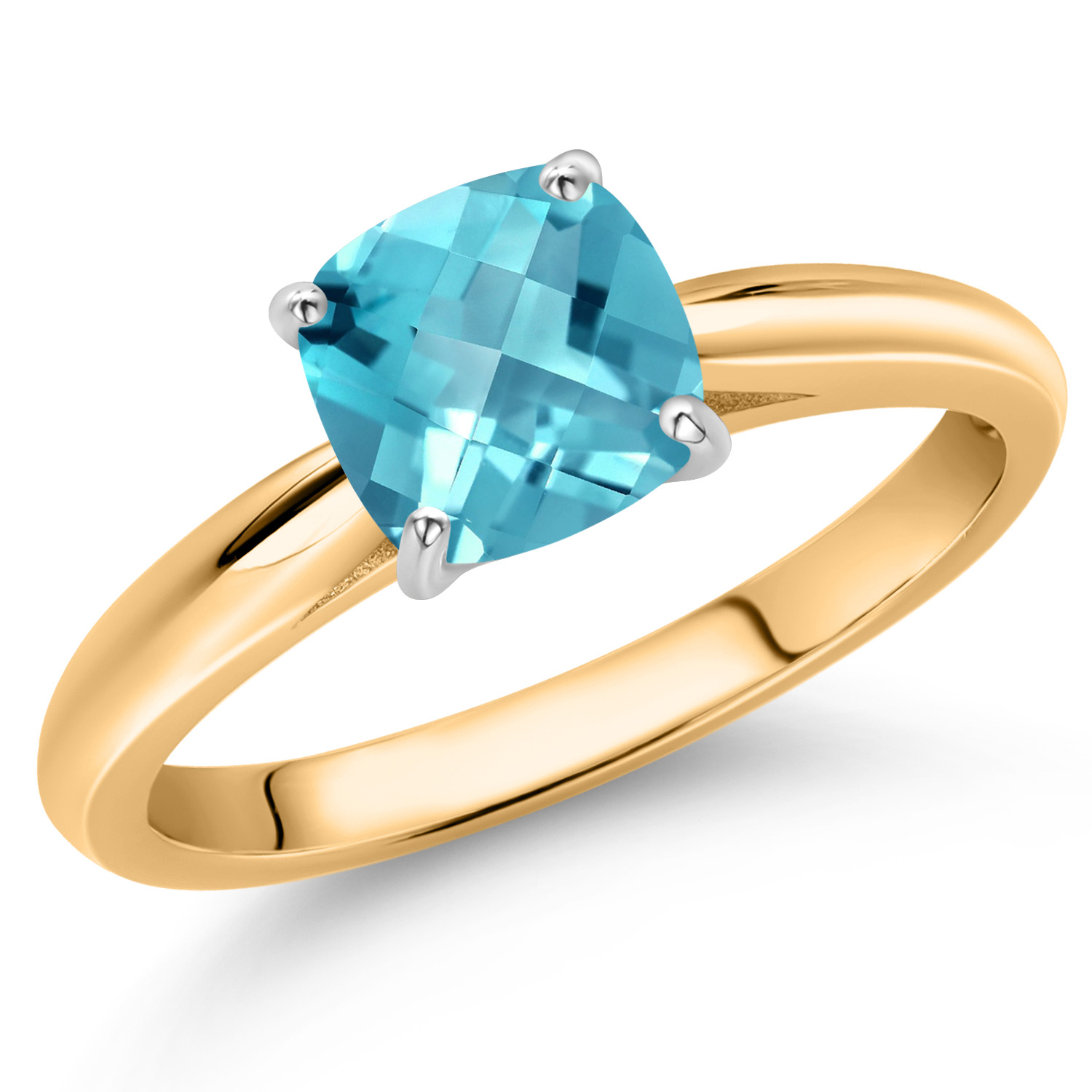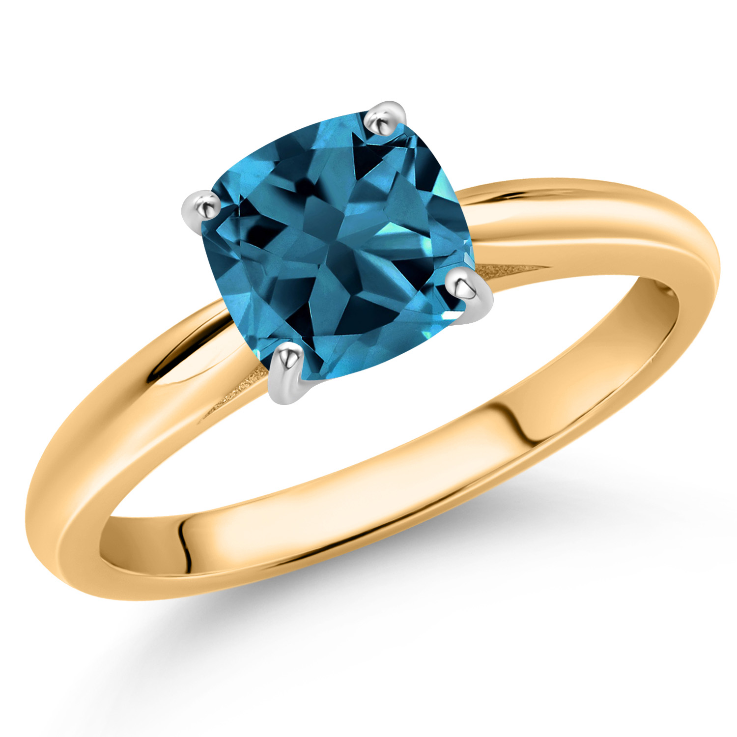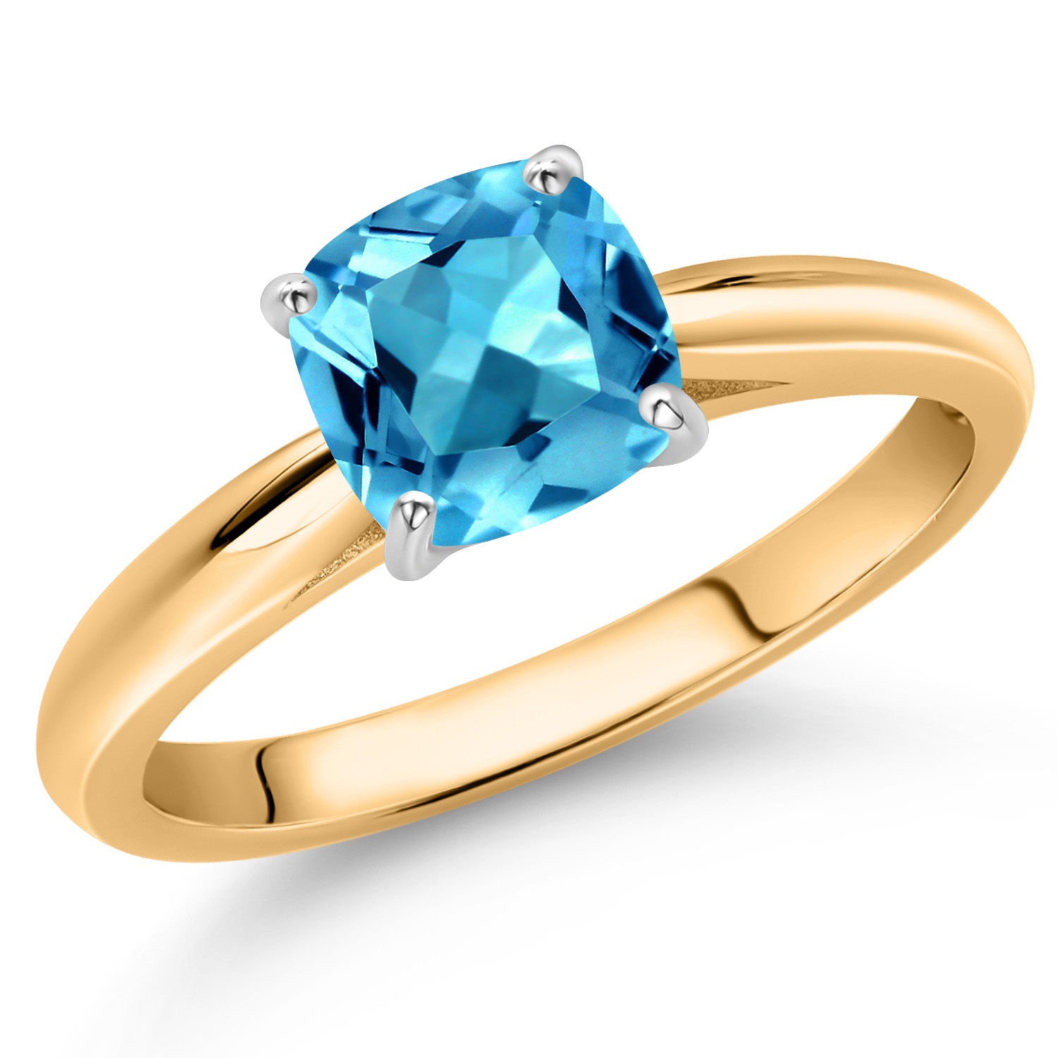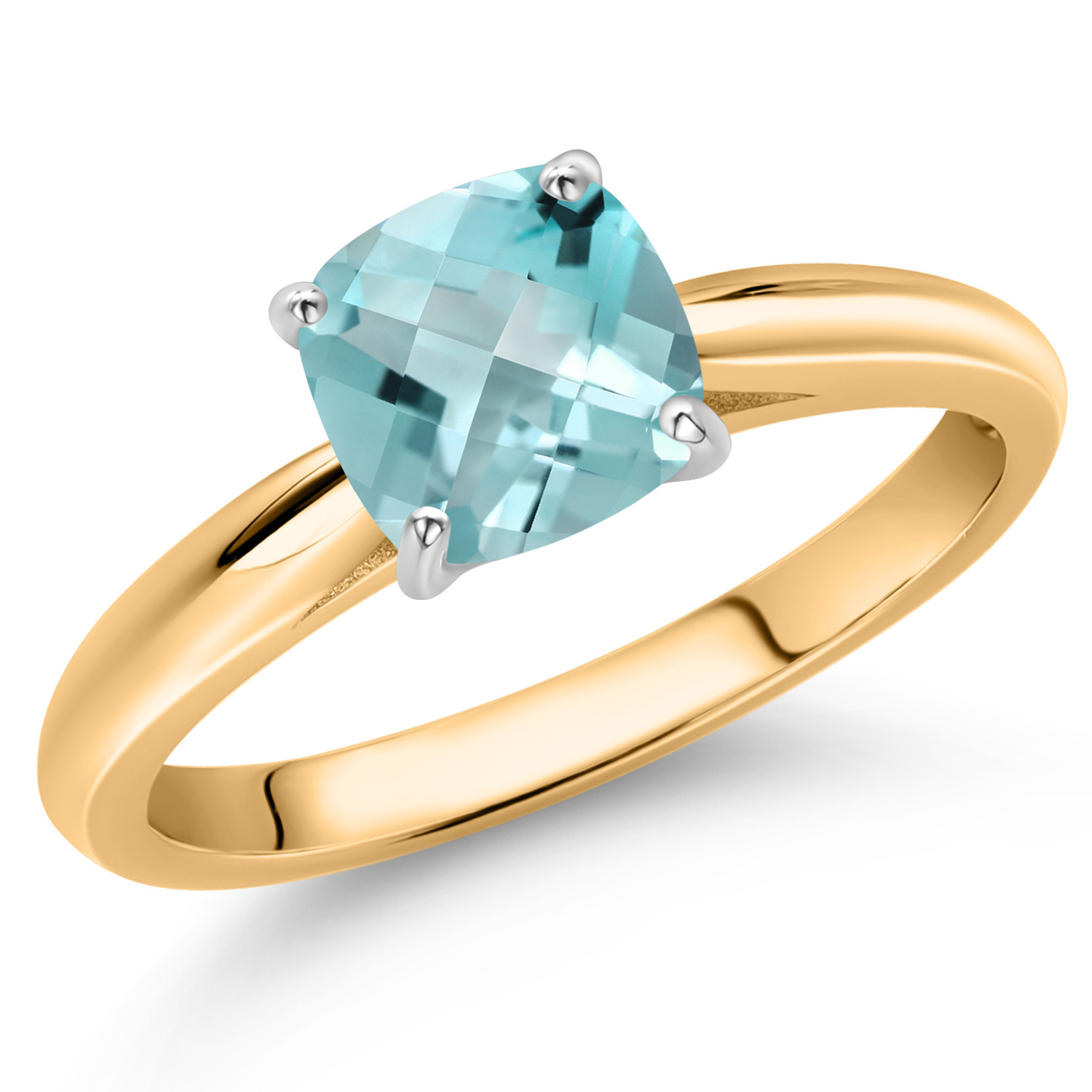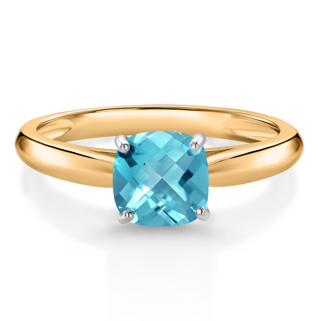 10K Two-Tone Gold Gemstone Birthstone Solitaire Engagement Ring For Women | Cushion 6MM | Wedding Anniversary Promise Ring | Available In Size 5, 6, 7, 8, 9