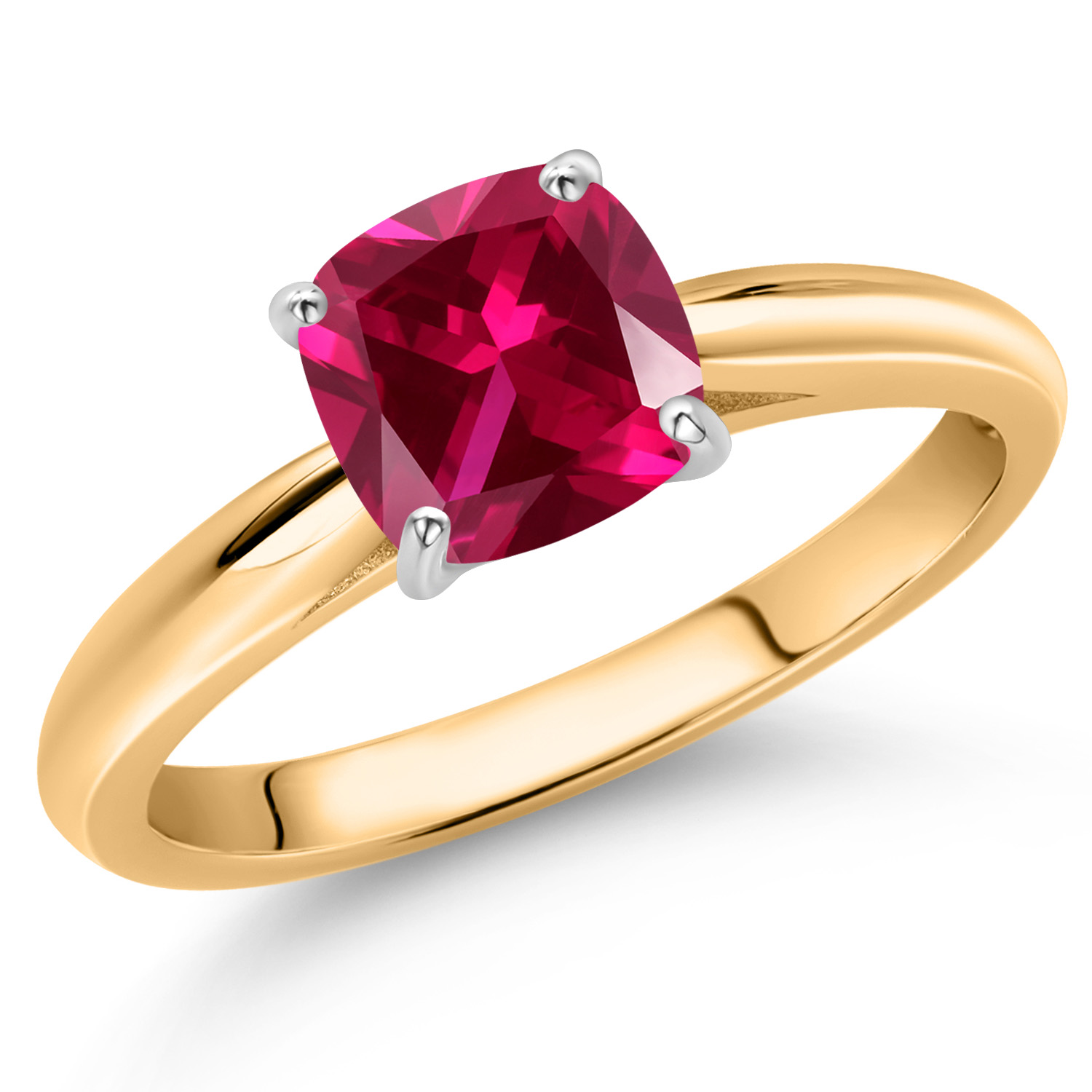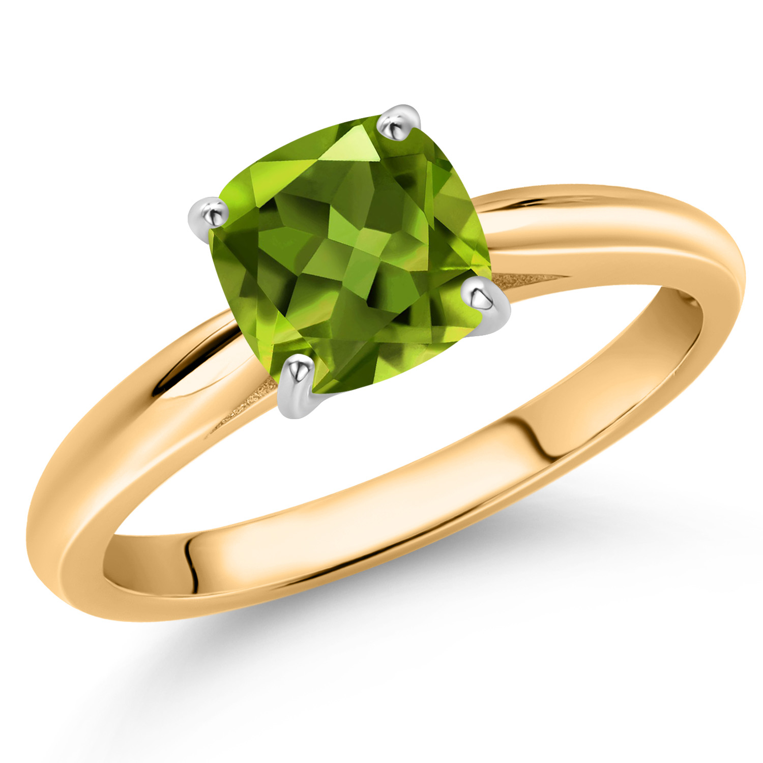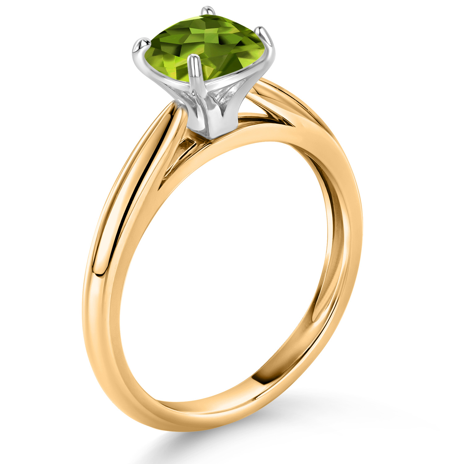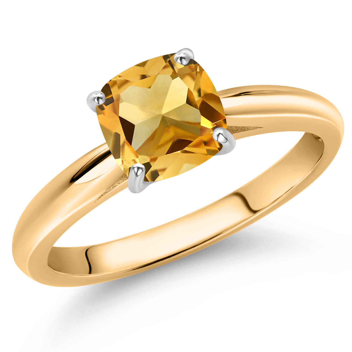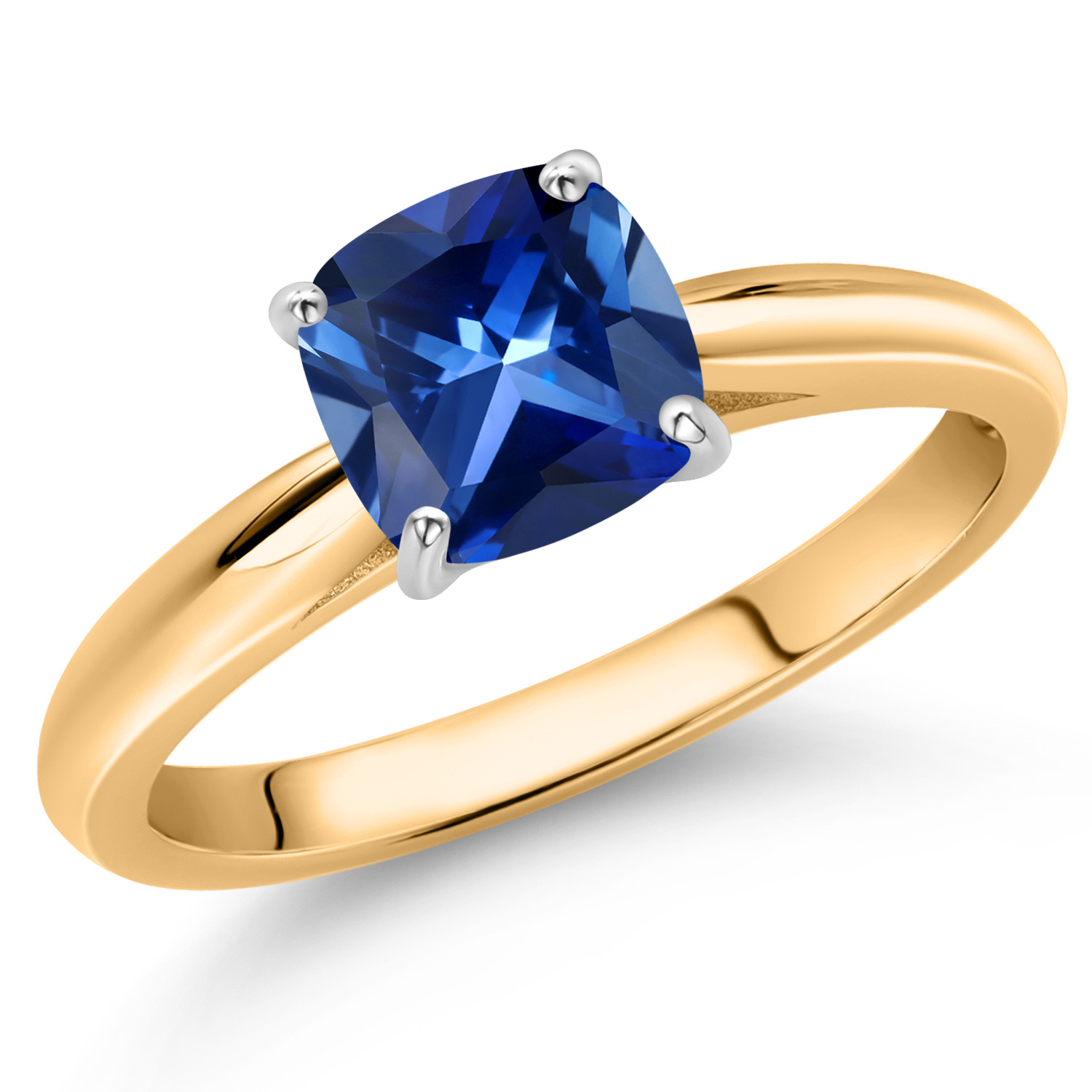 10K Two-Tone Gold Gemstone Birthstone Solitaire Engagement Ring For Women | Cushion 6MM | Wedding Anniversary Promise Ring | Available In Size 5, 6, 7, 8, 9