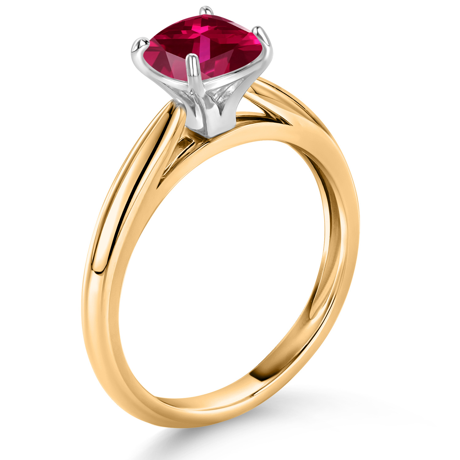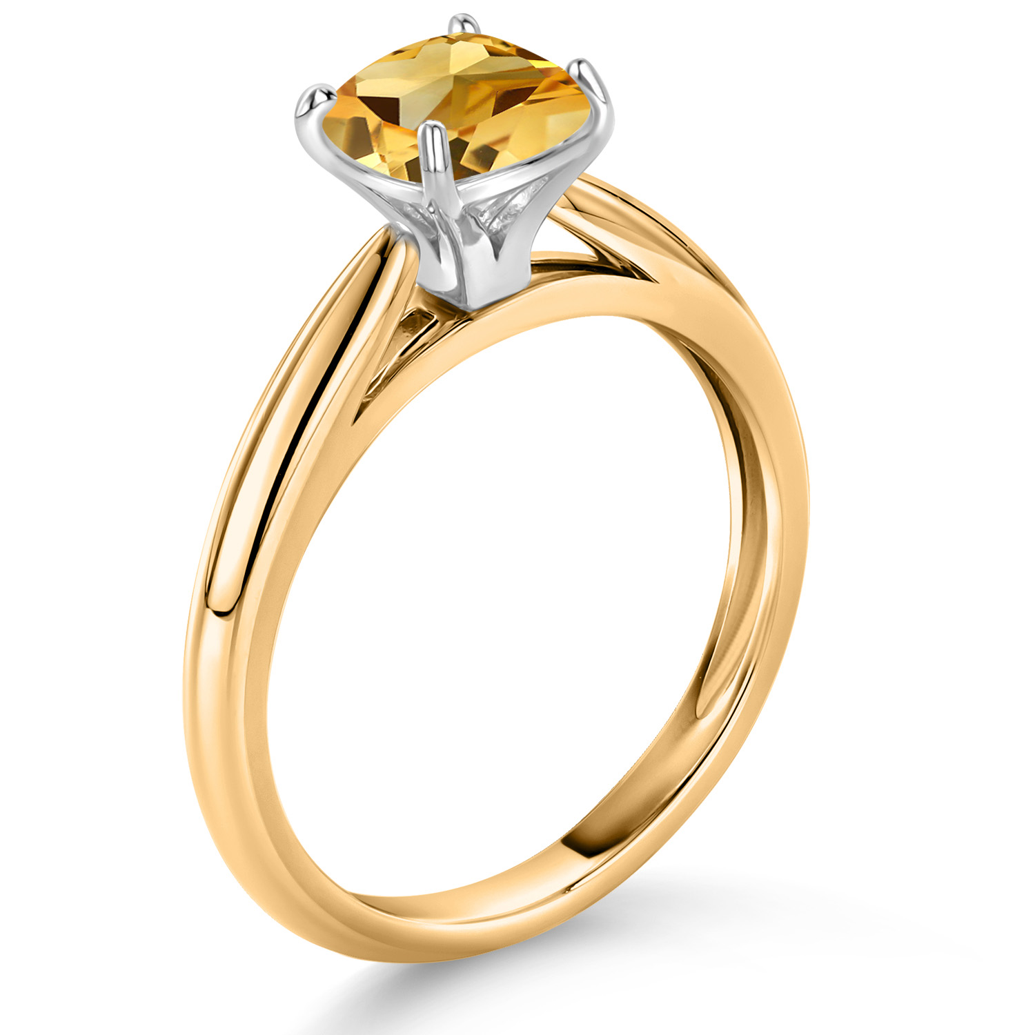 2-Tone Engagement Ring For Women | 925 Silver and 10K Yellow Gold | Gemstone Birthstone | 6MM Cushion Cut | Wedding Anniversary Promise Ring | Available In Size 5, 6, 7, 8, 9