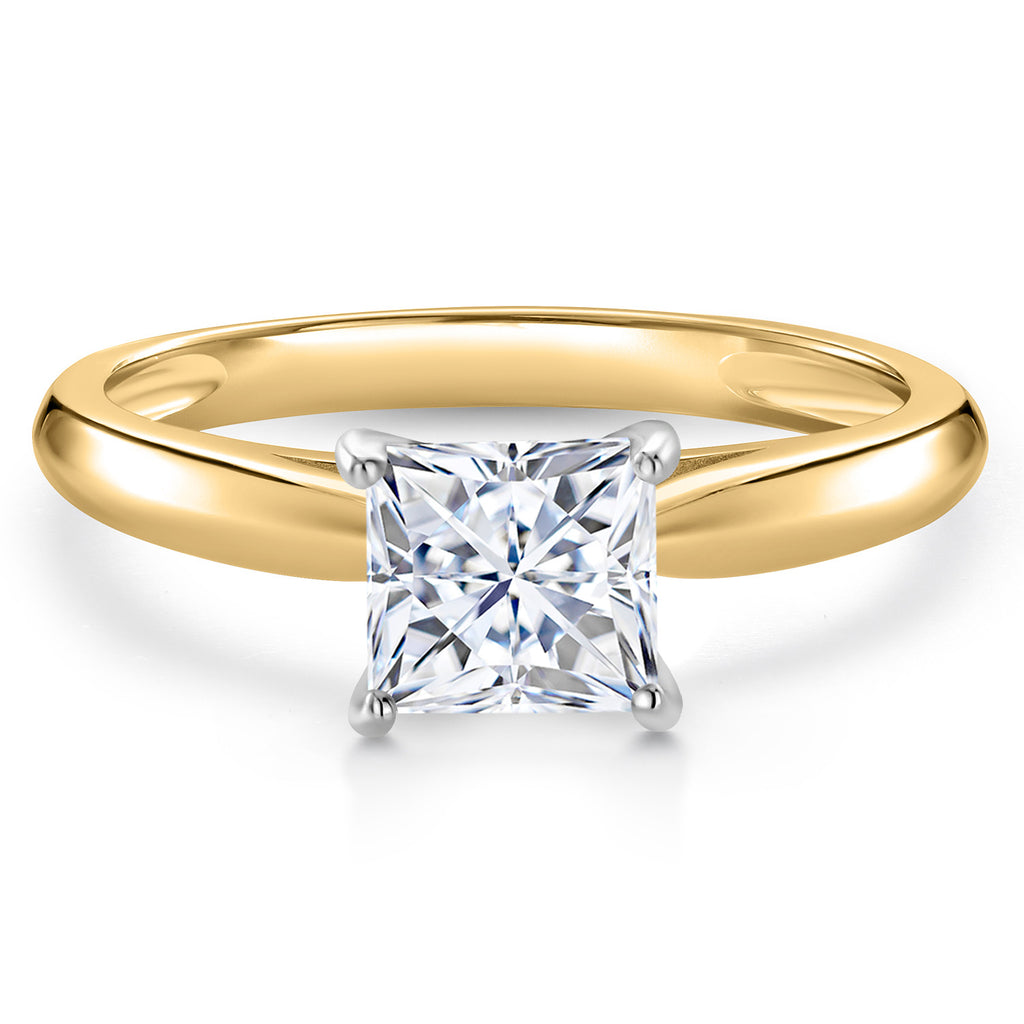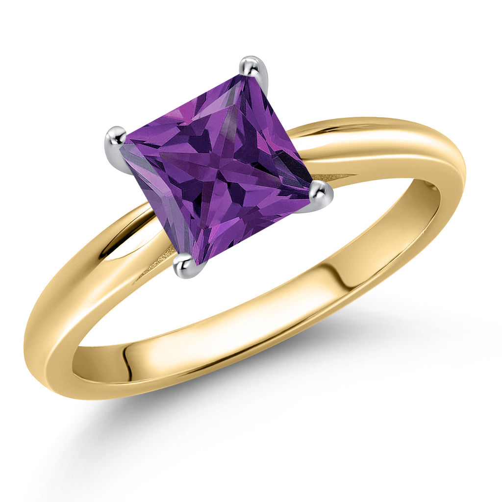 2-Tone Engagement Ring For Women | 925 Silver and 10K Yellow Gold | Gemstone Birthstone | 6MM Cushion Cut | Wedding Anniversary Promise Ring | Available In Size 5, 6, 7, 8, 9