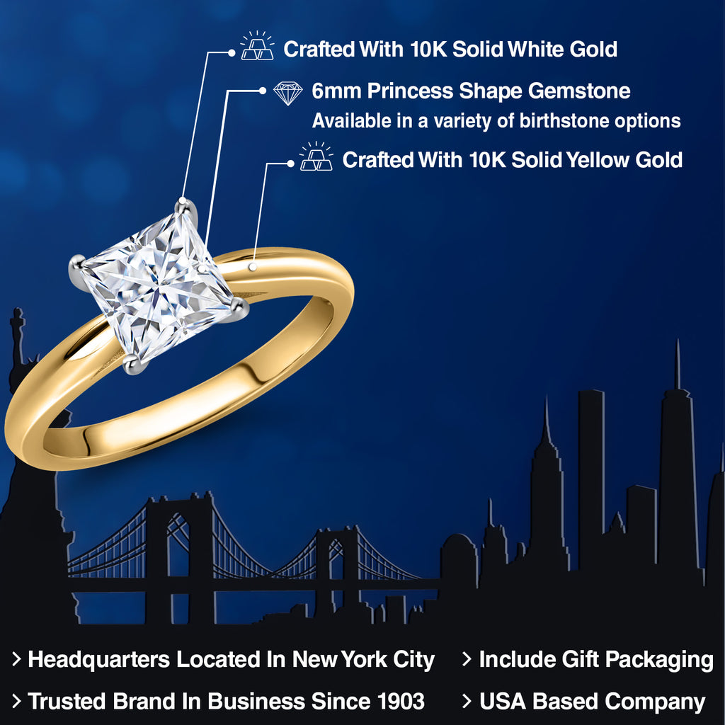 PRINCESS-CUT GEMSTONE BRILLIANCE: The centerpiece of this exquisite ring is a stunning 6MM princess-cut gemstone, expertly crafted to capture and reflect light with unparalleled brilliance. Available in a variety of birthstone options, each gem is hand-selected for its exceptional clarity and vibrant color, making this ring not just a piece of jewelry, but a personal expression of elegance and individuality. The square shape of the gemstone enhances its modern appeal, perfect for any occasion.