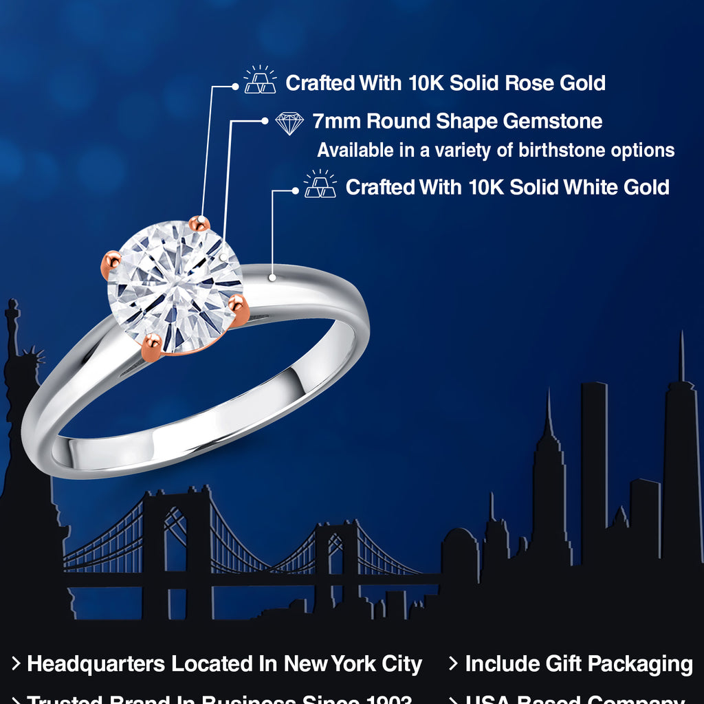 ROUND 7MM GEMSTONE ELEGANCE: Featuring a stunning 7MM round gemstone, this solitaire engagement ring captures the essence of timeless beauty. The birthstone adds a personal touch, making it a cherished symbol of love and commitment. Its perfect round shape enhances the stone's brilliance and clarity, catching the light from every angle for a dazzling display that captivates and enchants any jewelry enthusiast with its radiant allure.