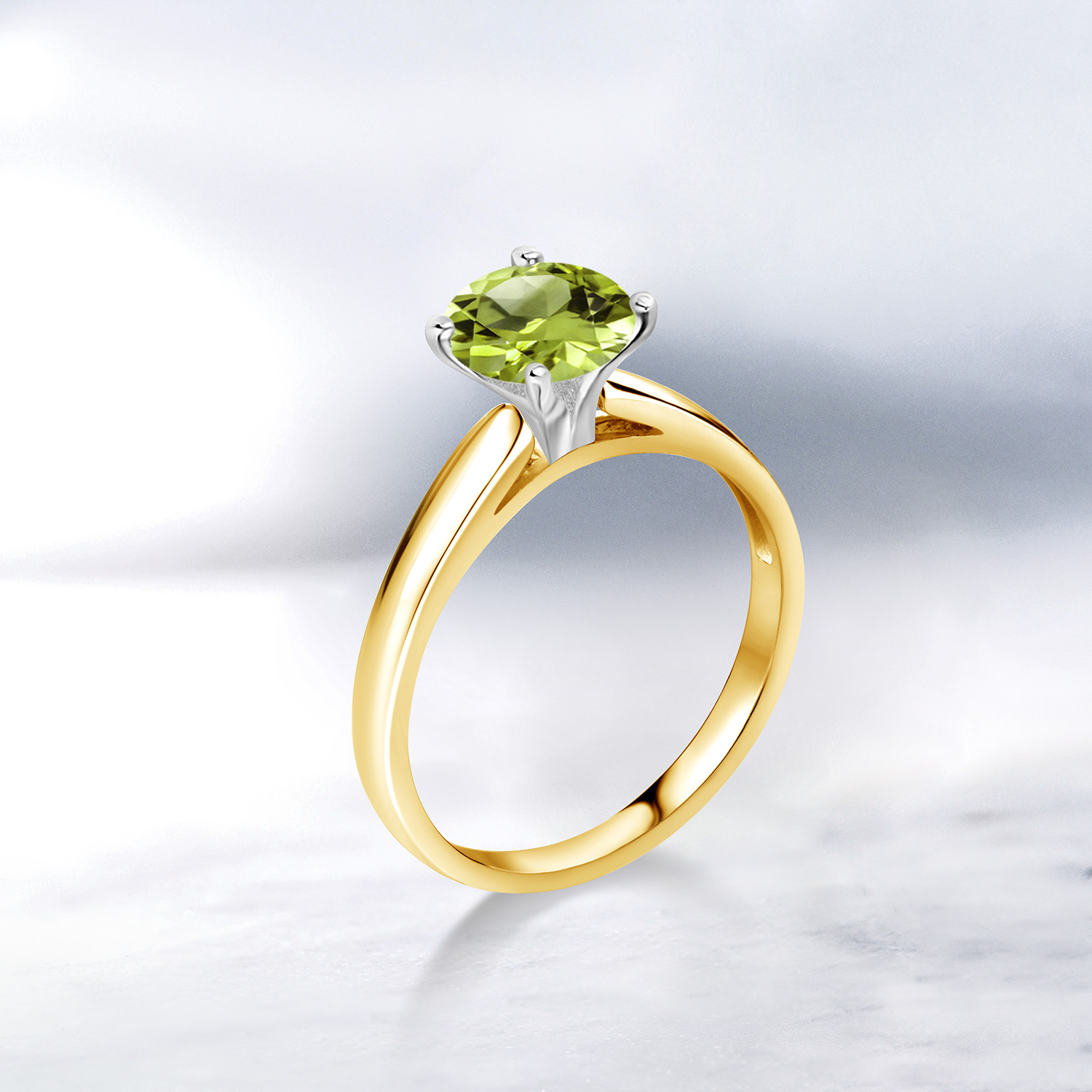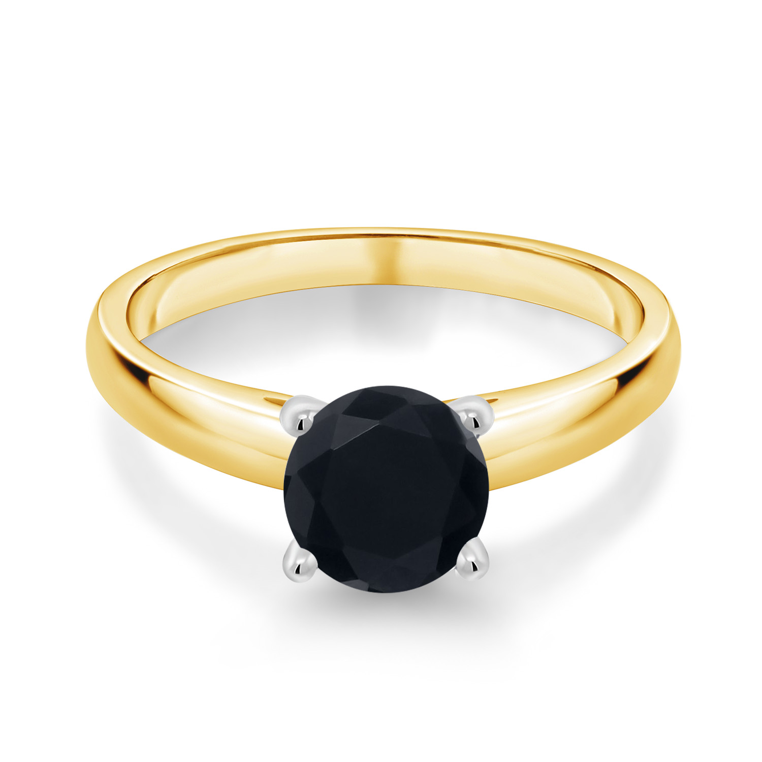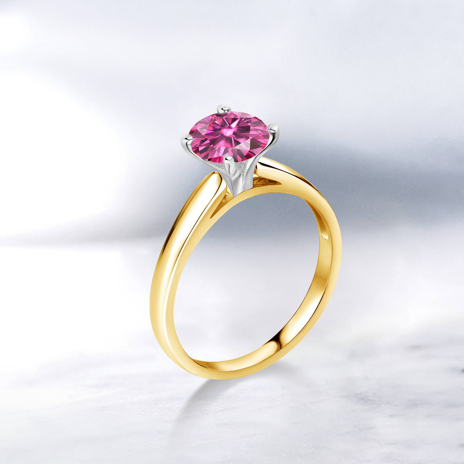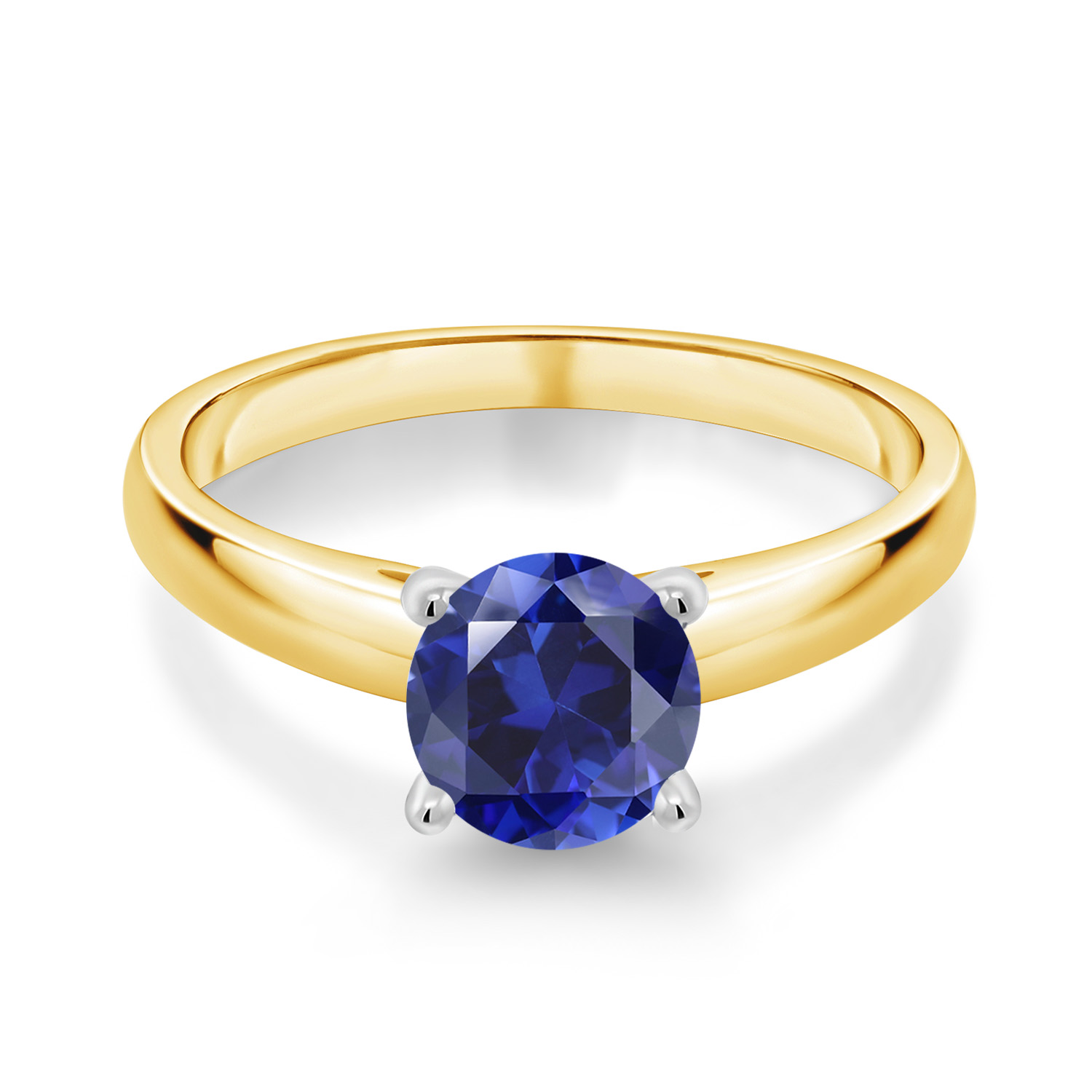 ELEGANT TWO-TONE DESIGN: A polished yellow gold band complements the white gold head, creating a striking contrast. This harmonious blend enhances the round gemstone's brilliance, adding sophistication and depth to the ring's timeless aesthetic.
