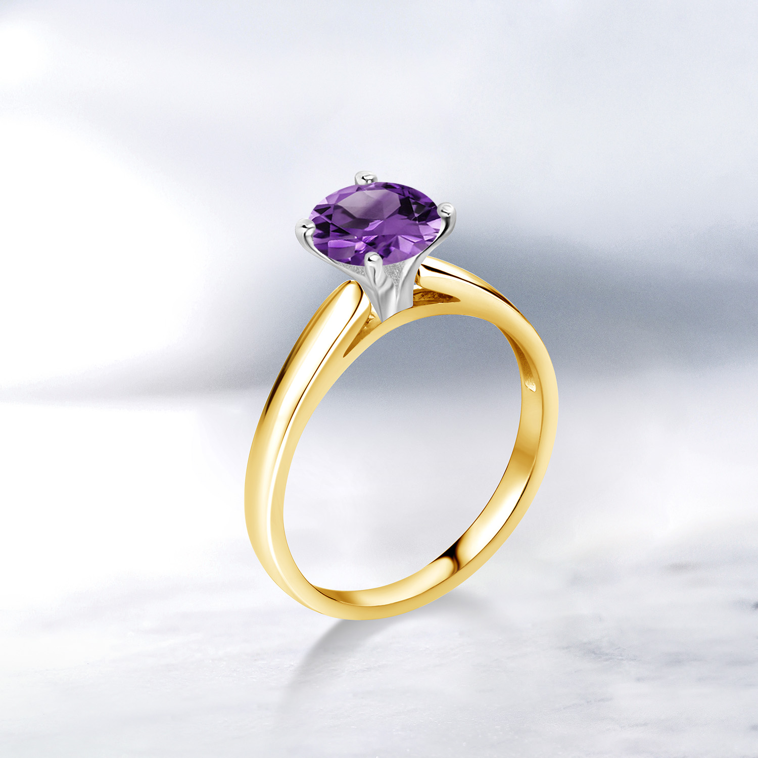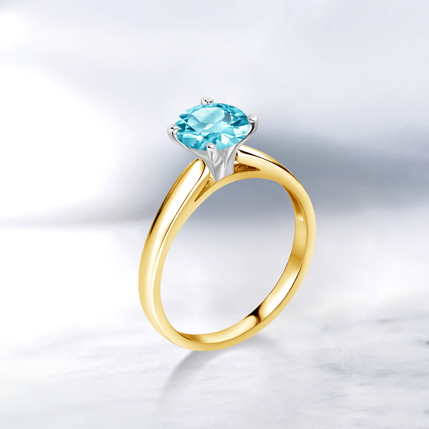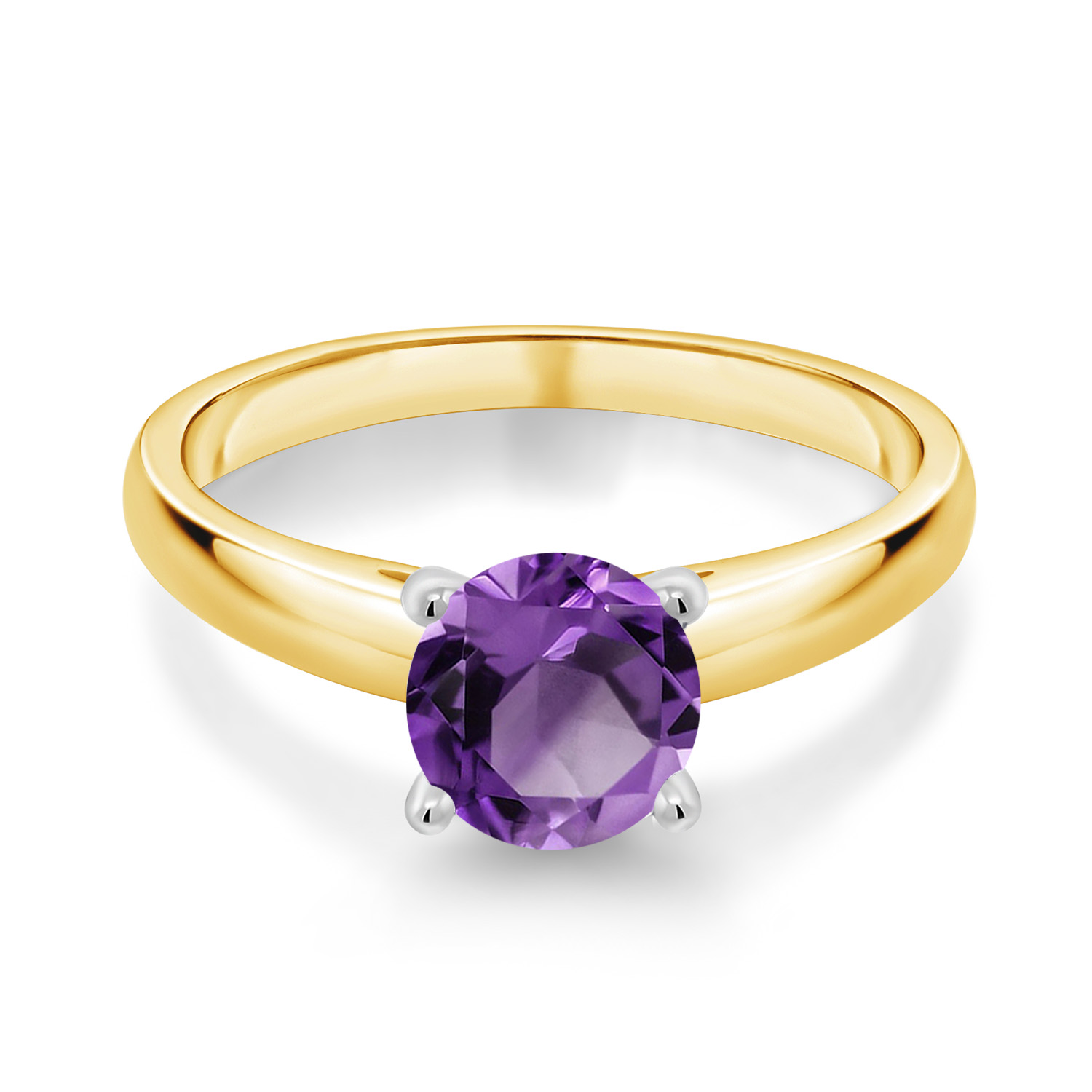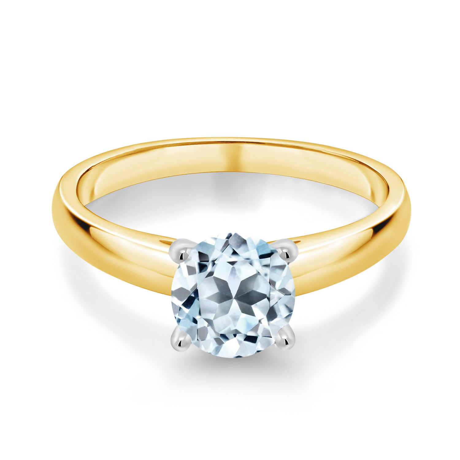 10K White and Yellow Gold Gemstone Birthstone Solitaire Engagement Ring for Women | Round 7MM | Wedding Anniversary Promise Two-Tone Gold Ring | Available in Size 5, 6, 7, 8, 9