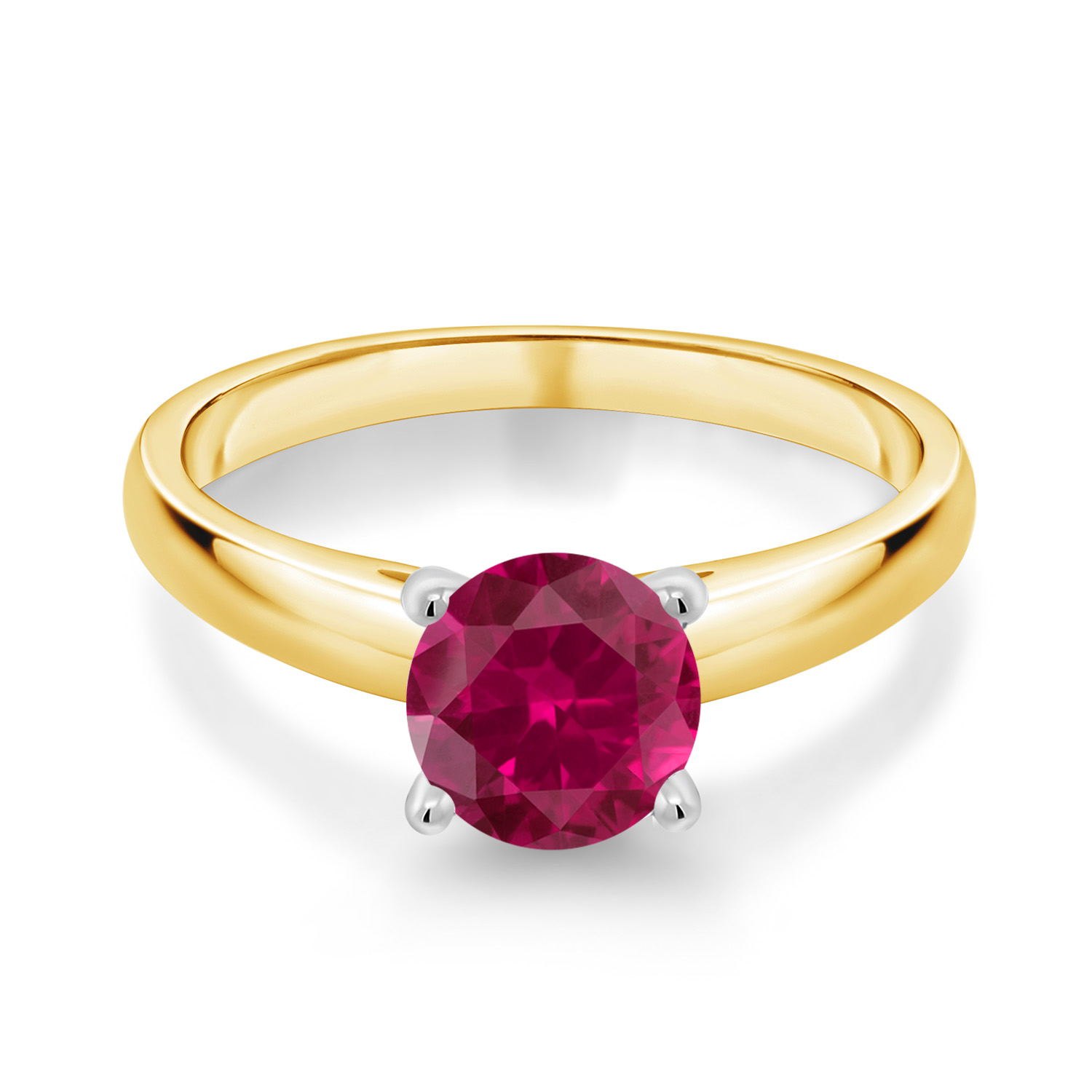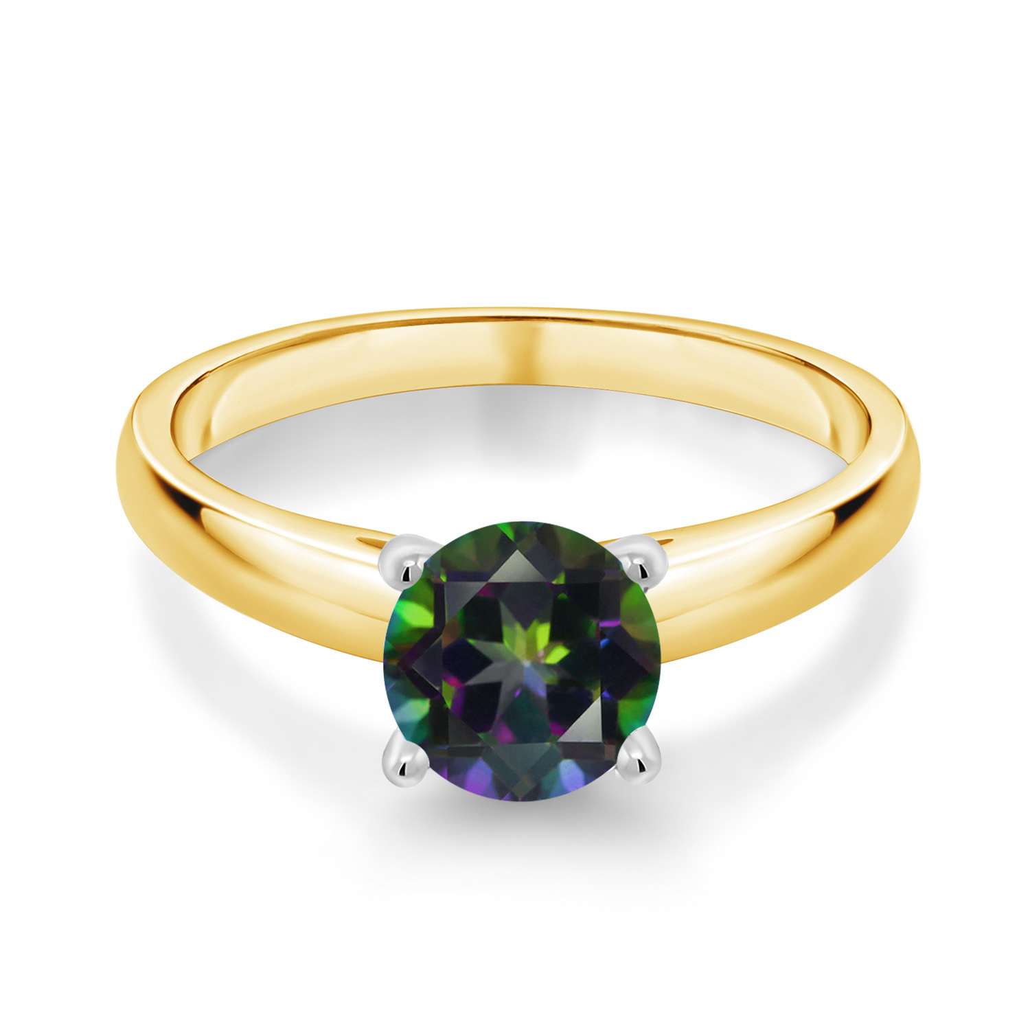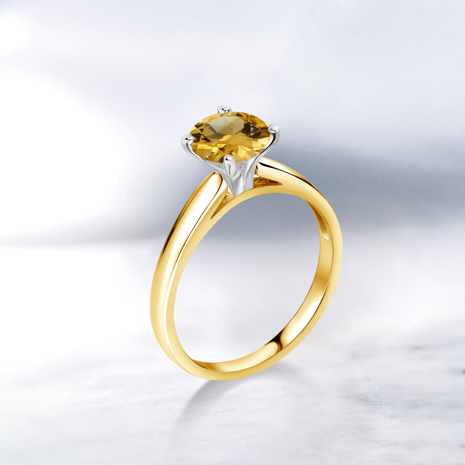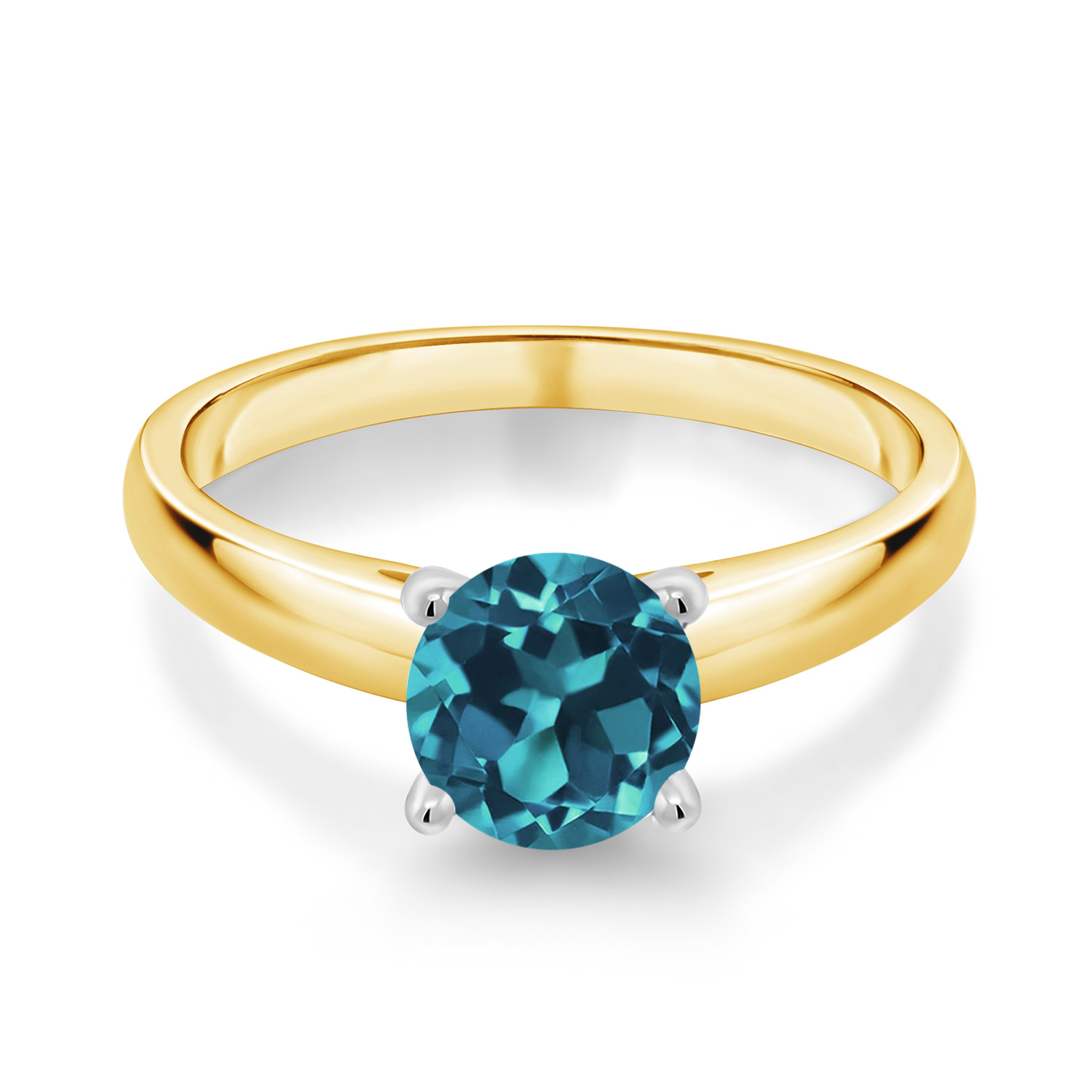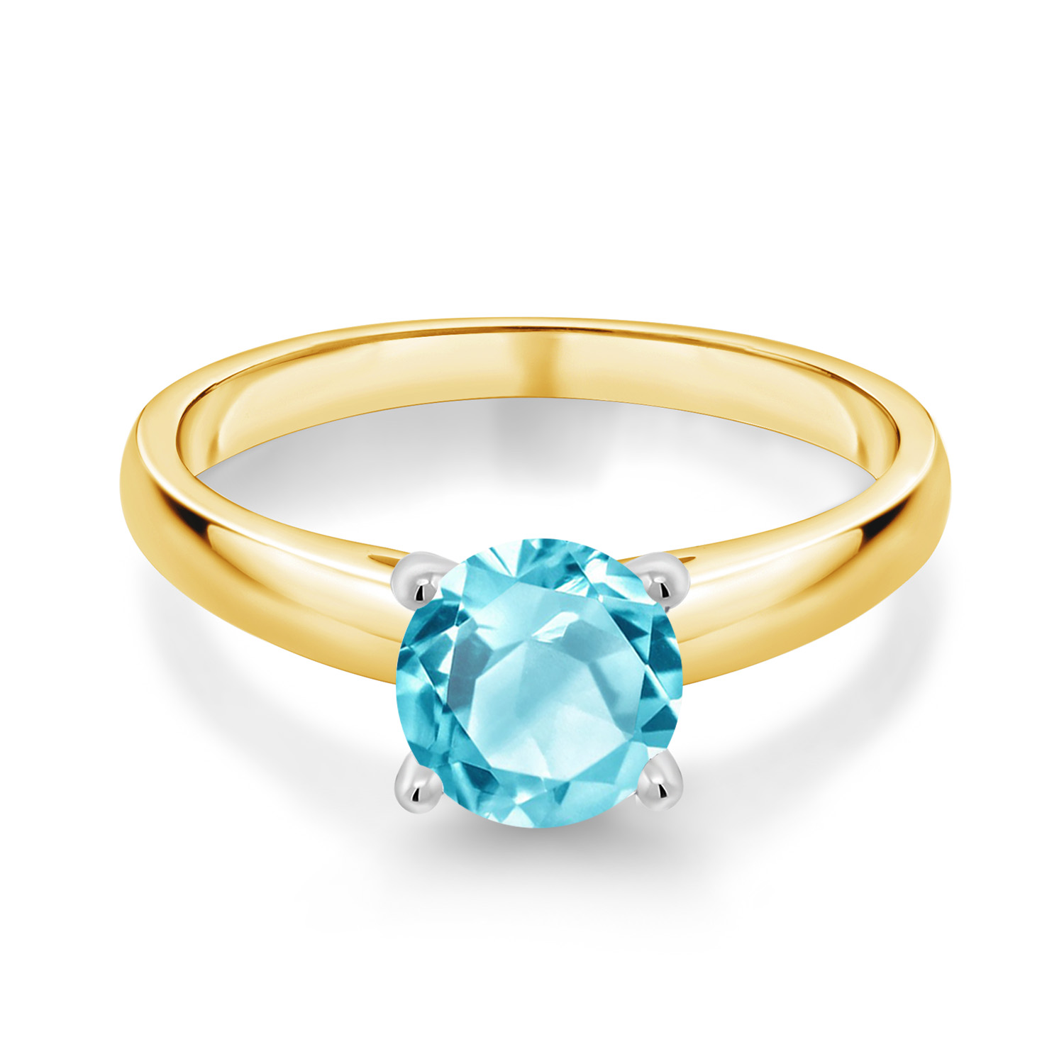 10K White and Yellow Gold Gemstone Birthstone Solitaire Engagement Ring for Women | Round 7MM | Wedding Anniversary Promise Two-Tone Gold Ring | Available in Size 5, 6, 7, 8, 9