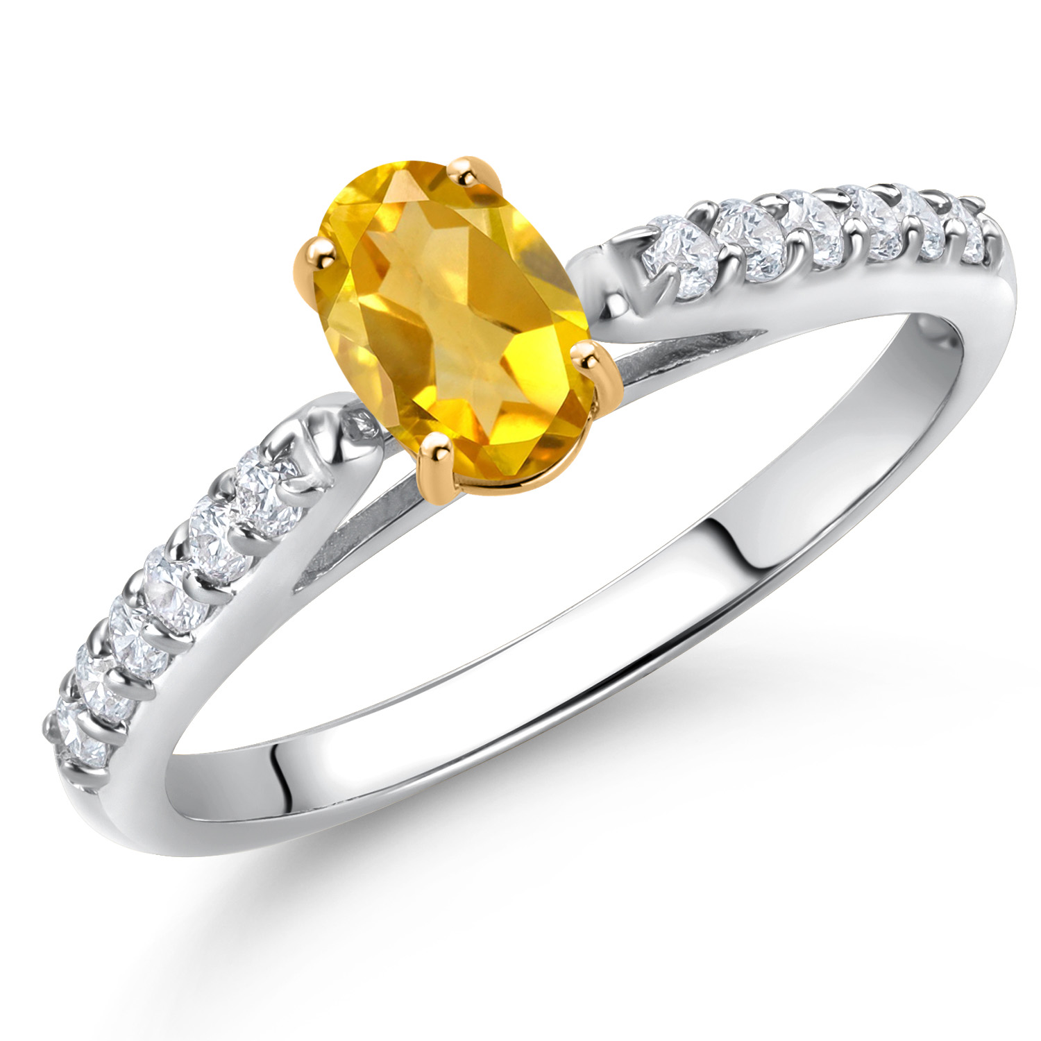 MEASUREMENTS: 6x4mm Oval Heat-Treated Yellow Citrine, 1.5x1.5mm Round E - F Lab Grown Diamond. Total Carat Weight is 0.63 cttw