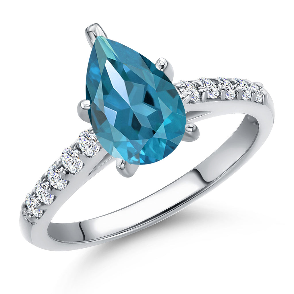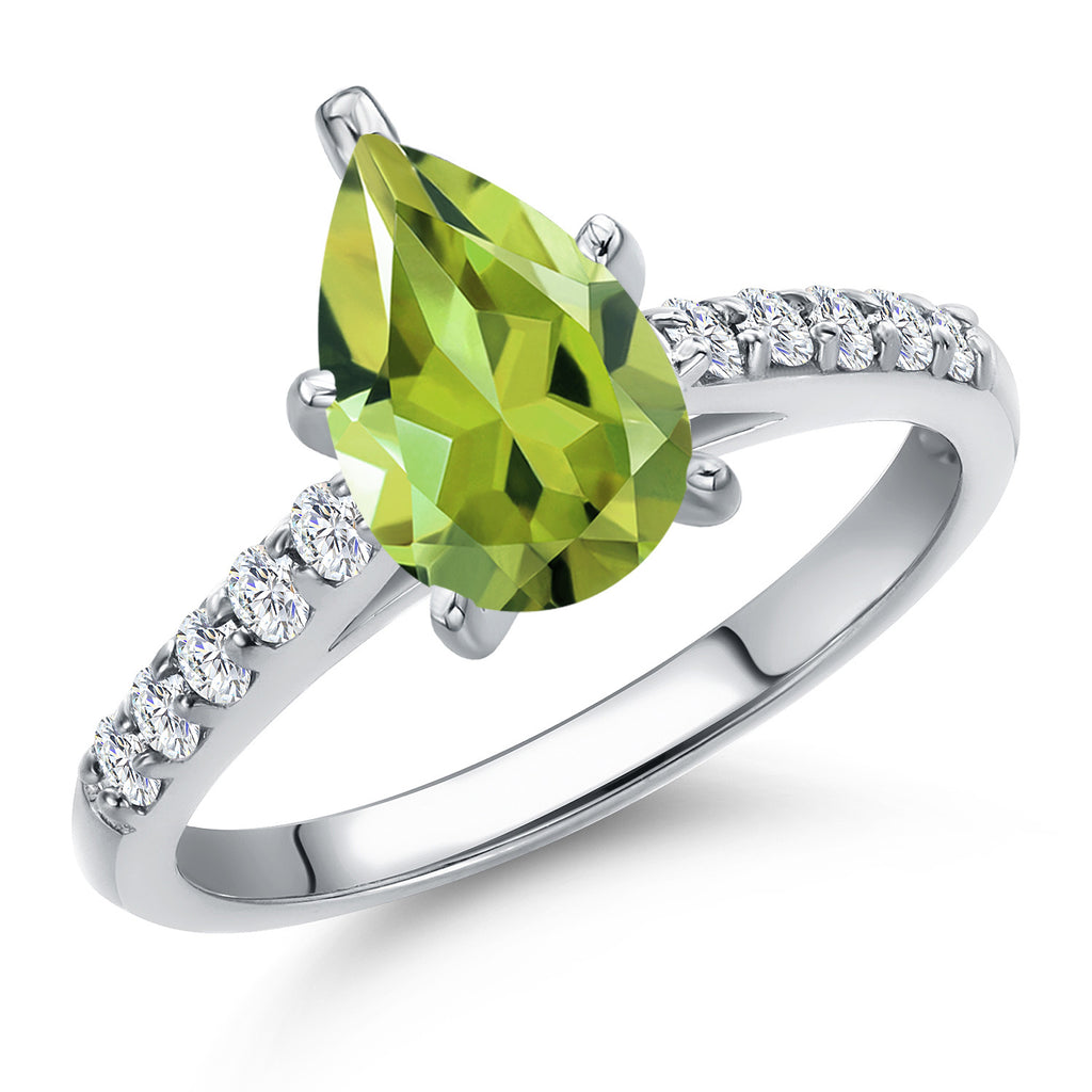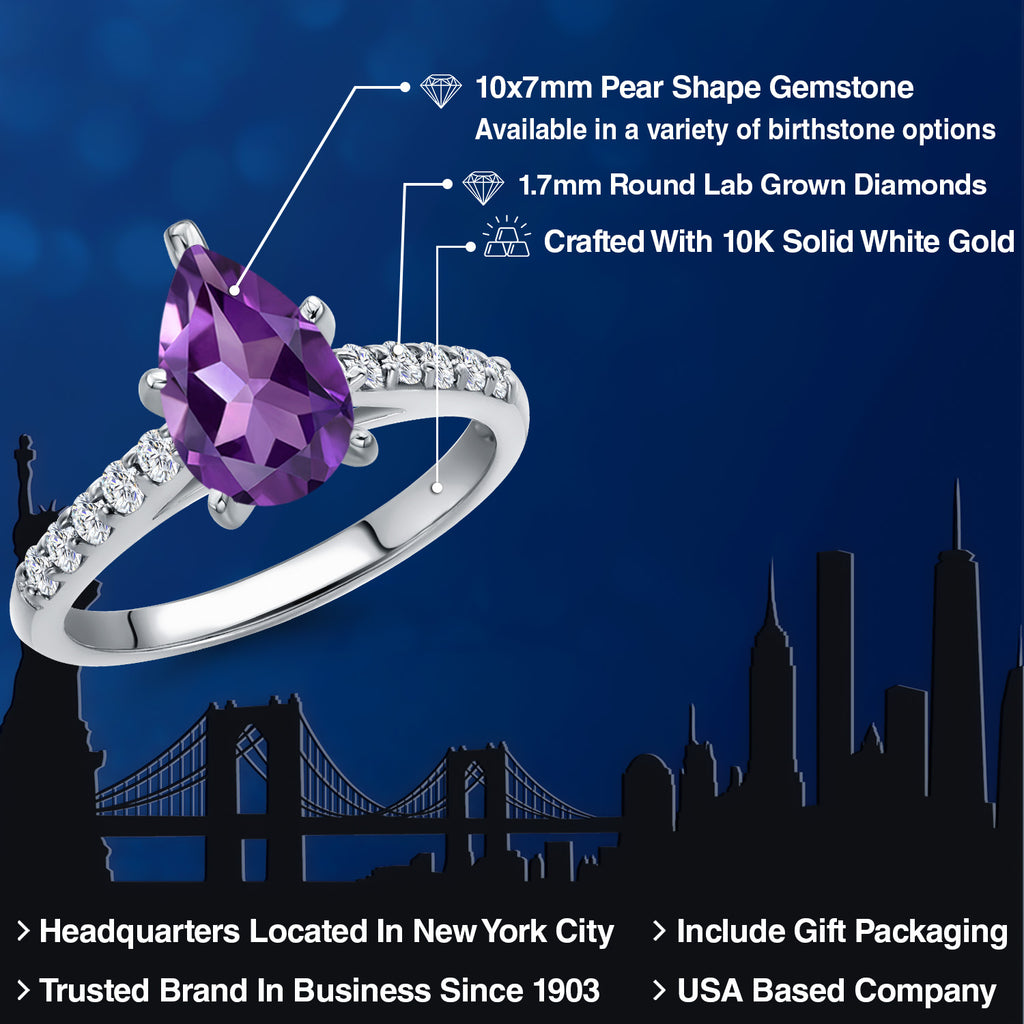 10K White Gold 10X7MM Pear Shape Gemstone Birthstone and White Lab Grown Diamond Engagement Ring | Wedding Anniversary Promise Ring For Women | Available 5, 6, 7, 8, 9