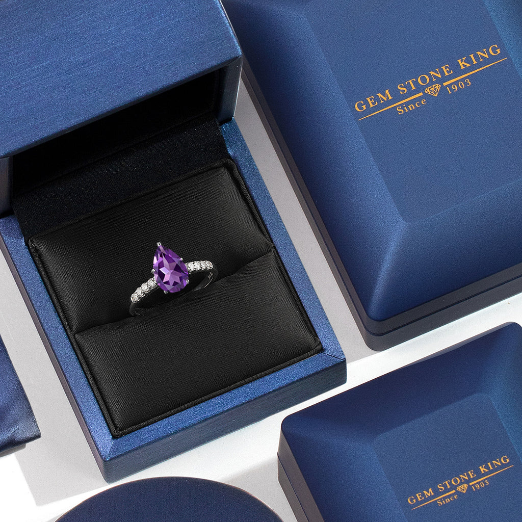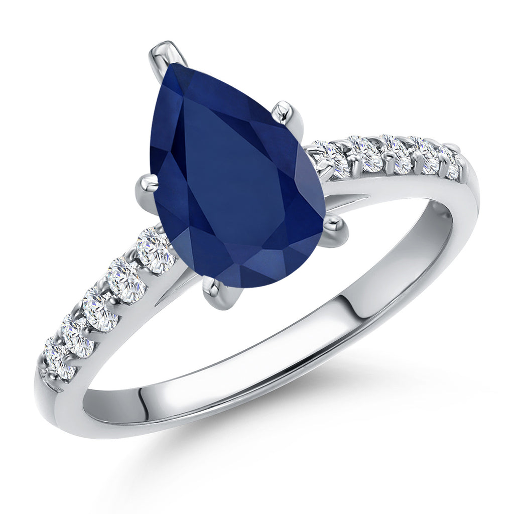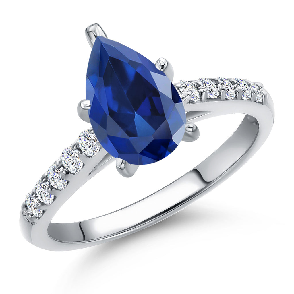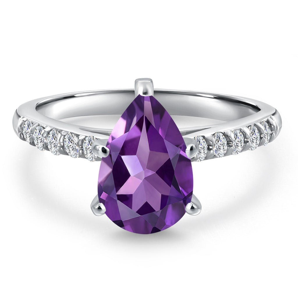 10K White Gold 10X7MM Pear Shape Gemstone Birthstone and White Lab Grown Diamond Engagement Ring | Wedding Anniversary Promise Ring For Women | Available 5, 6, 7, 8, 9
