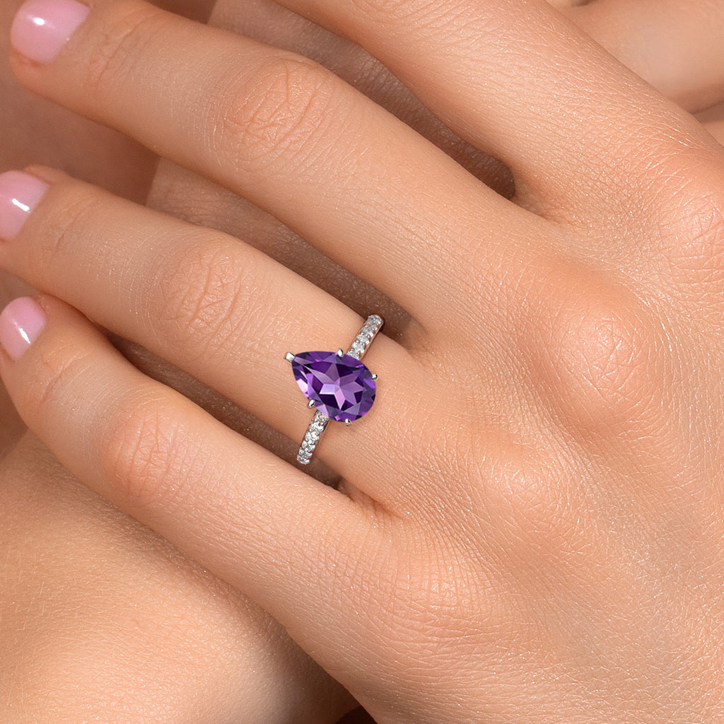 STUNNING PEAR-SHAPED BRILLIANCE: A striking 10x7mm pear-shaped gemstone graces the center of this ring, delivering a bold yet elegant look. Available in a variety of birthstone options, the gemstone's shape symbolizes timeless beauty and individuality, perfect for marking life’s most cherished moments.
