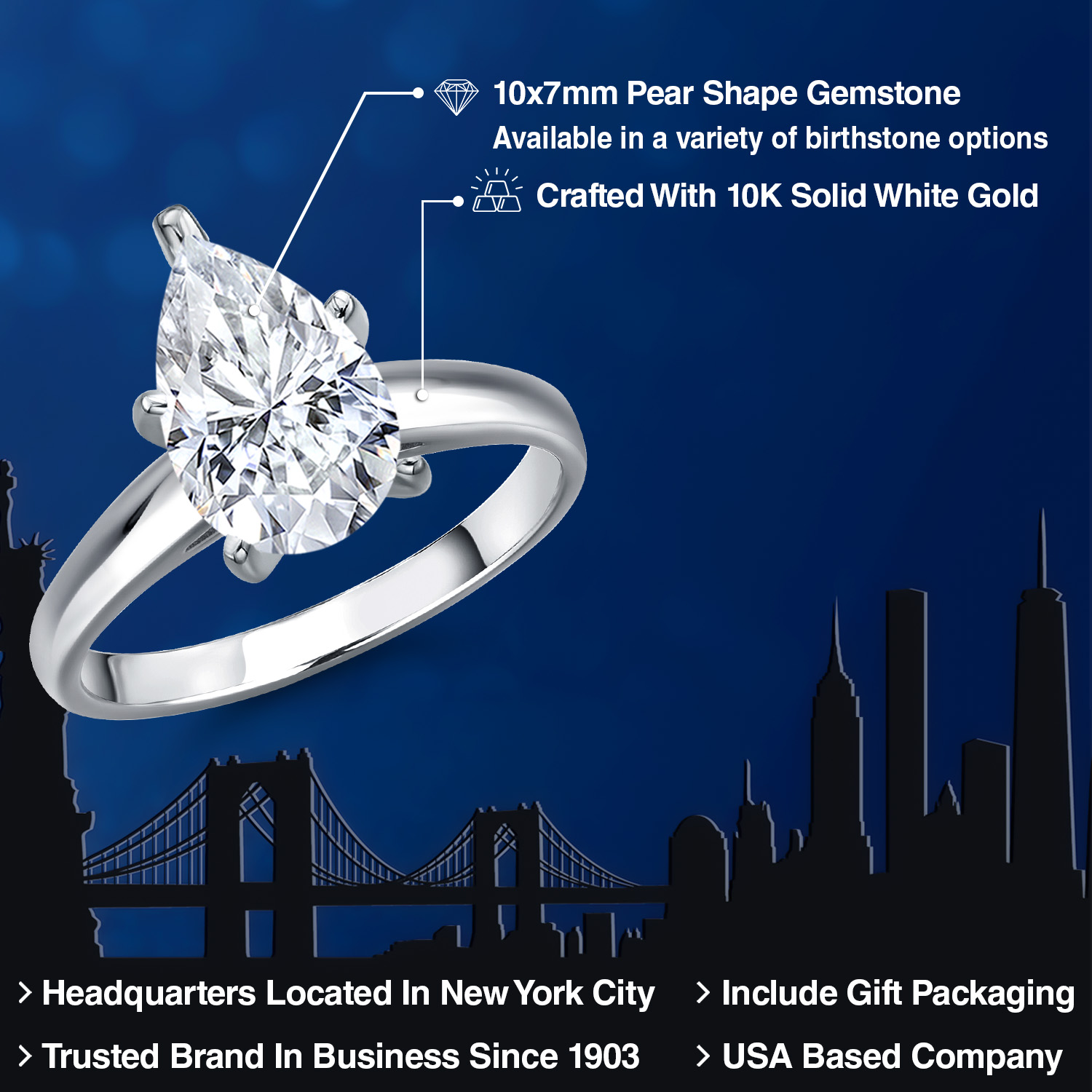 EXQUISITE 10X7MM PEAR SHAPE GEMSTONE: Featuring a vibrant pear-shaped gemstone, this ring celebrates individuality and timeless elegance. Each stone is expertly faceted to maximize brilliance and is available in a variety of enchanting birthstone options, making it the perfect symbol of personal meaning and significance.