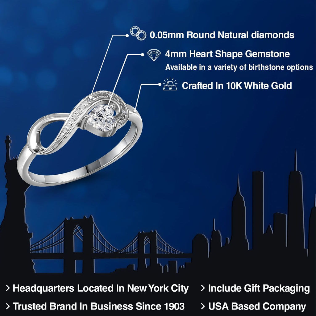 Romantic Heart-Shaped Gemstone - This exquisite ring features a 4MM heart-shaped gemstone, available in a range of birthstones to allow for a personalized touch that resonates with the wearer's birth month or favorite color. Set at the center of an infinity symbol, the gemstone adds a romantic and deeply personal element to this elegant piece.
