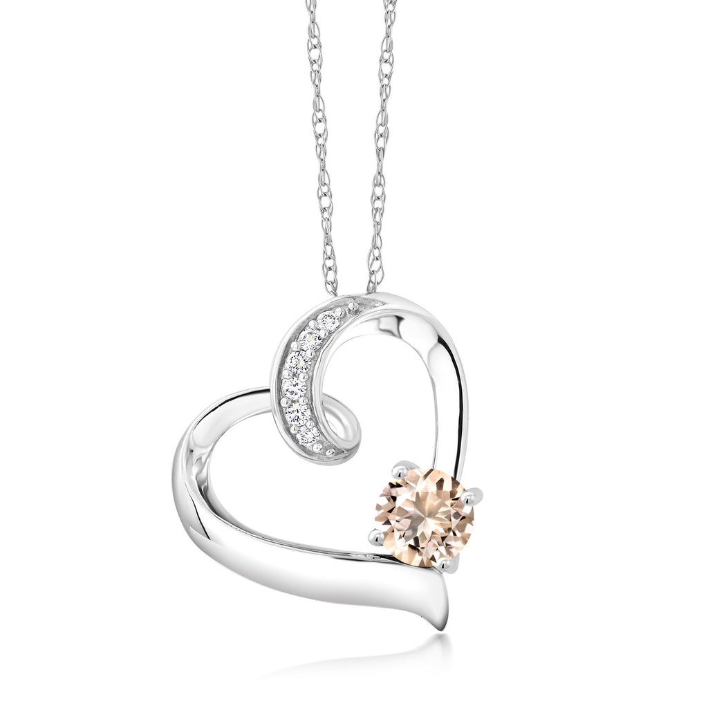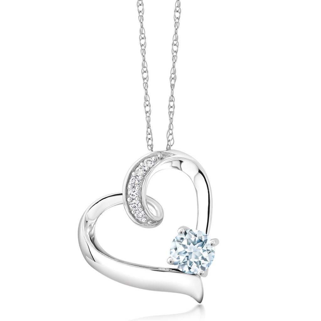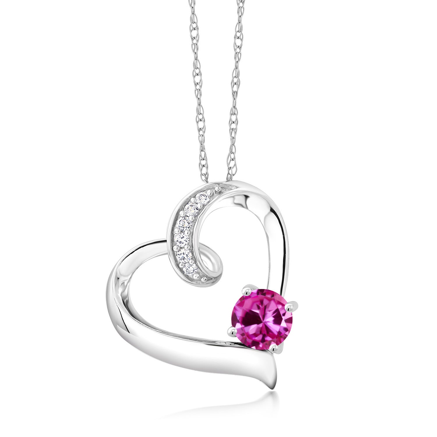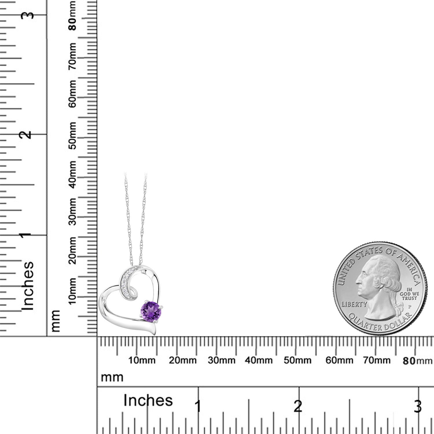 Heart Pendant Necklace For Women | 10K White Gold | 5MM Round Gemstone Birthstone and White Lab Grown Diamond | Gold Necklace | 18 Inch Chain | Fine Jewelry Gifts for Her Mom Wife