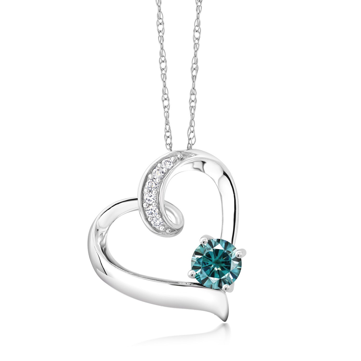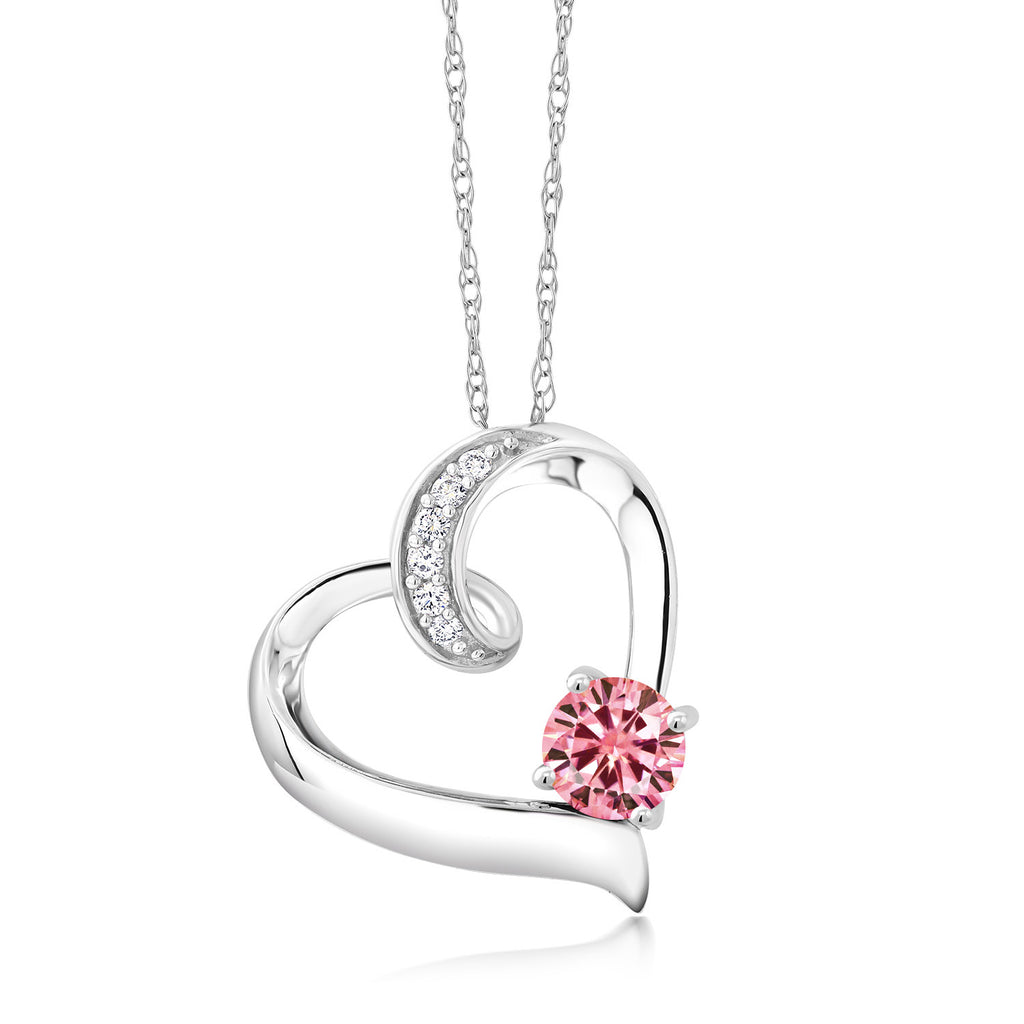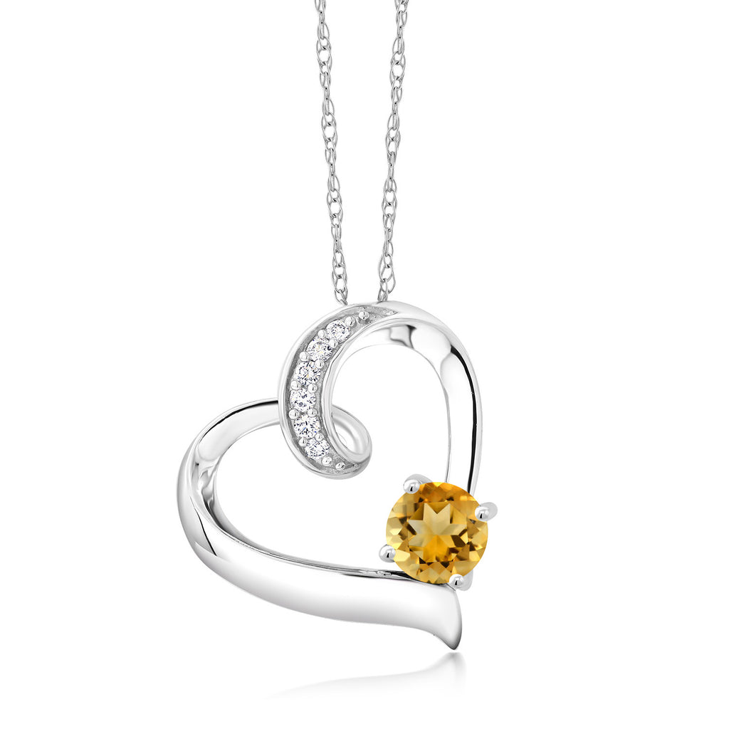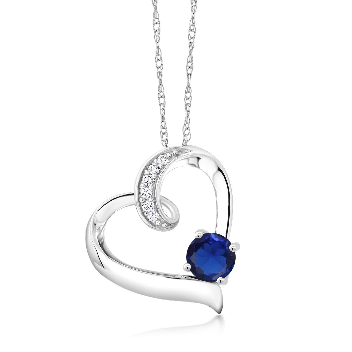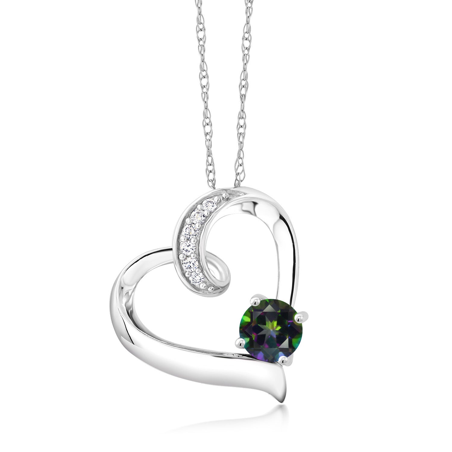 Heart Pendant Necklace For Women | 10K White Gold | 5MM Round Gemstone Birthstone and White Lab Grown Diamond | Gold Necklace | 18 Inch Chain | Fine Jewelry Gifts for Her Mom Wife
