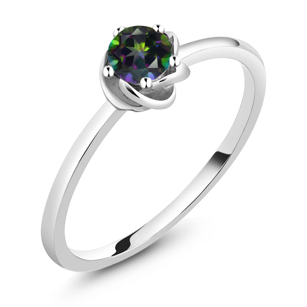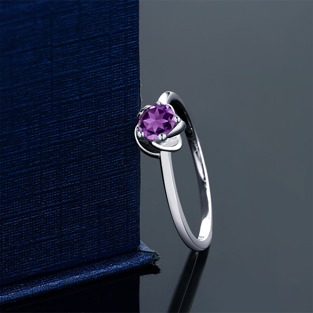 10K White Gold 5MM Round Gemstone Birthstone Solitaire Engagement Ring | Wedding Anniversary Promise Gold Ring For Women | Available In Size 5, 6, 7, 8, 9