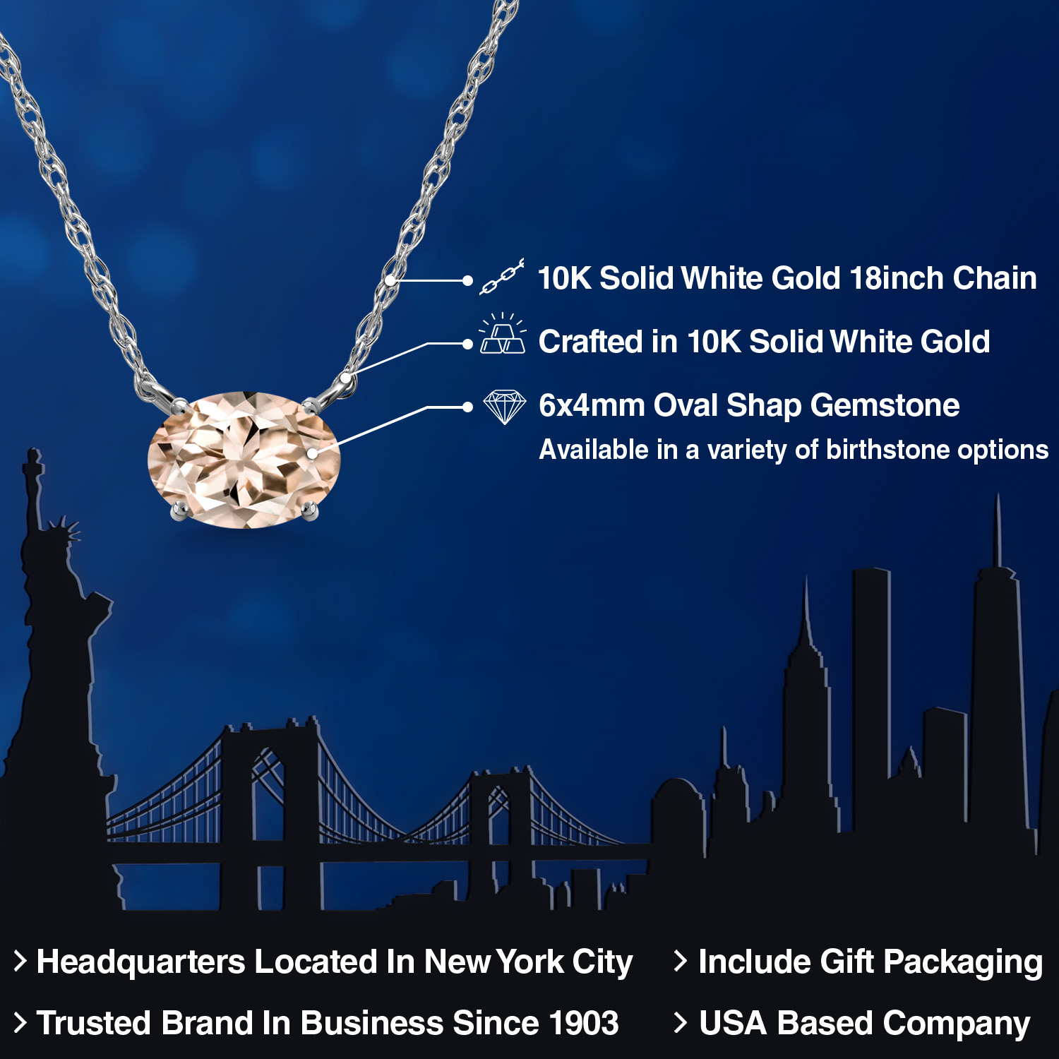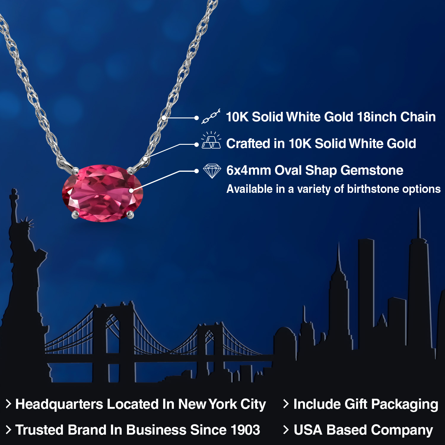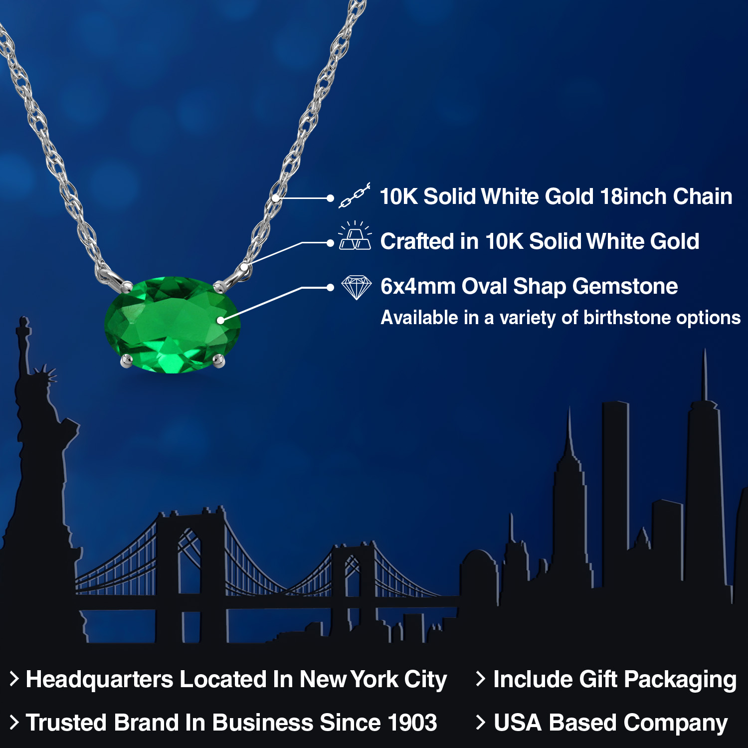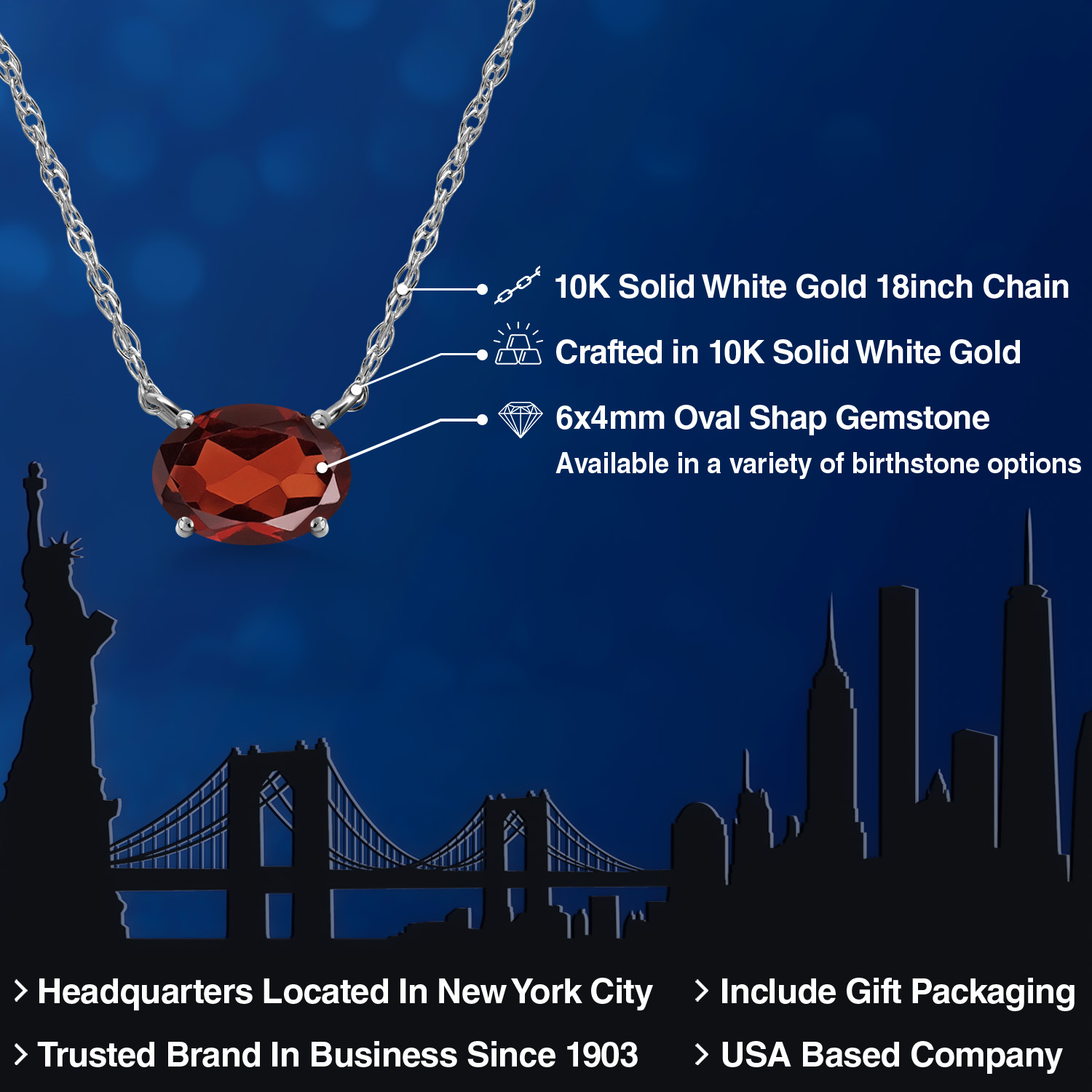 CRAFTED IN SOLID 10K WHITE GOLD: Made from high-quality 10K solid white gold, both the pendant and 18-inch chain offer lasting durability and shine. The sleek white gold finish enhances the gemstone’s brilliance, making it perfect for daily wear or special occasions.