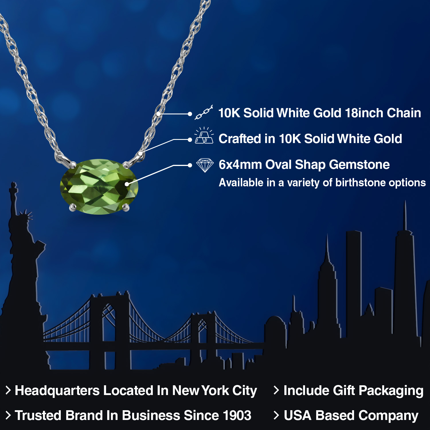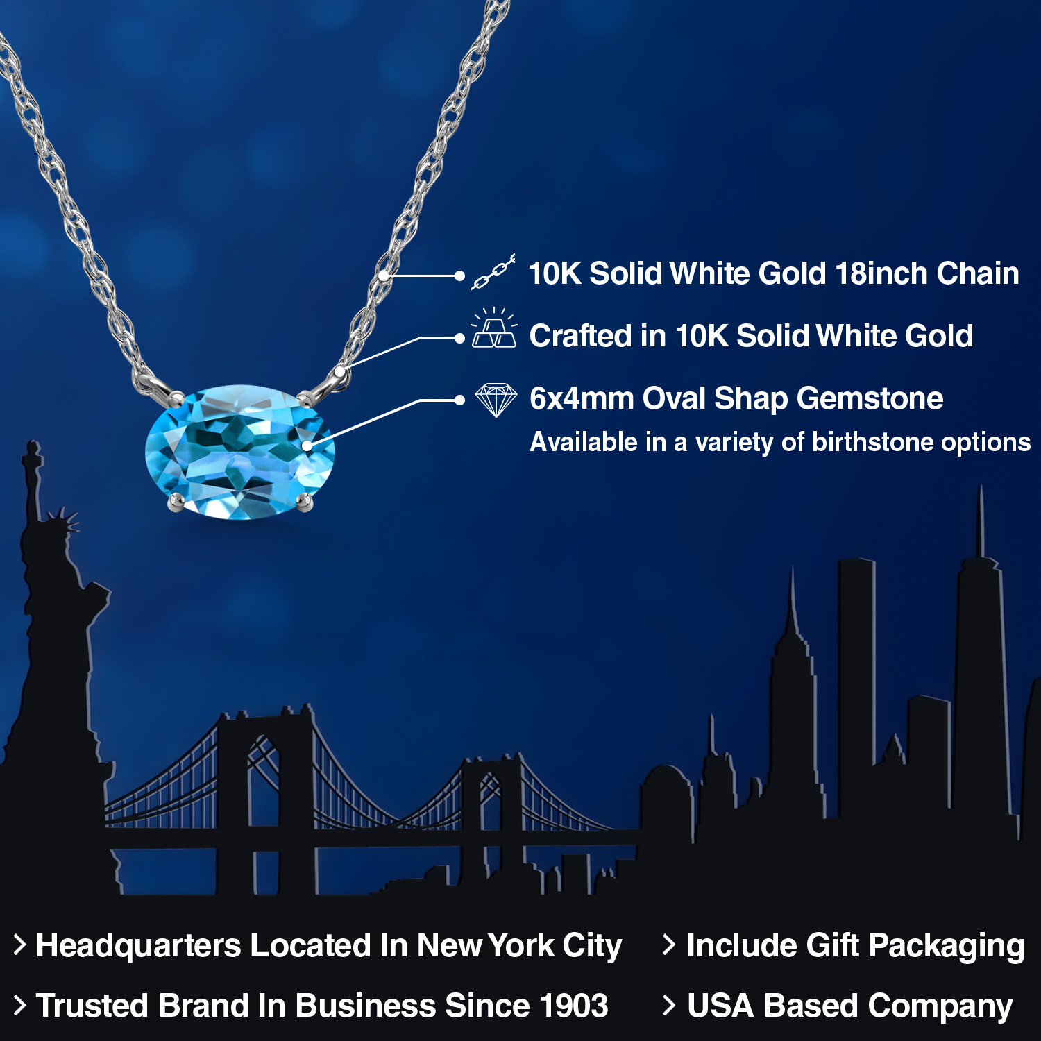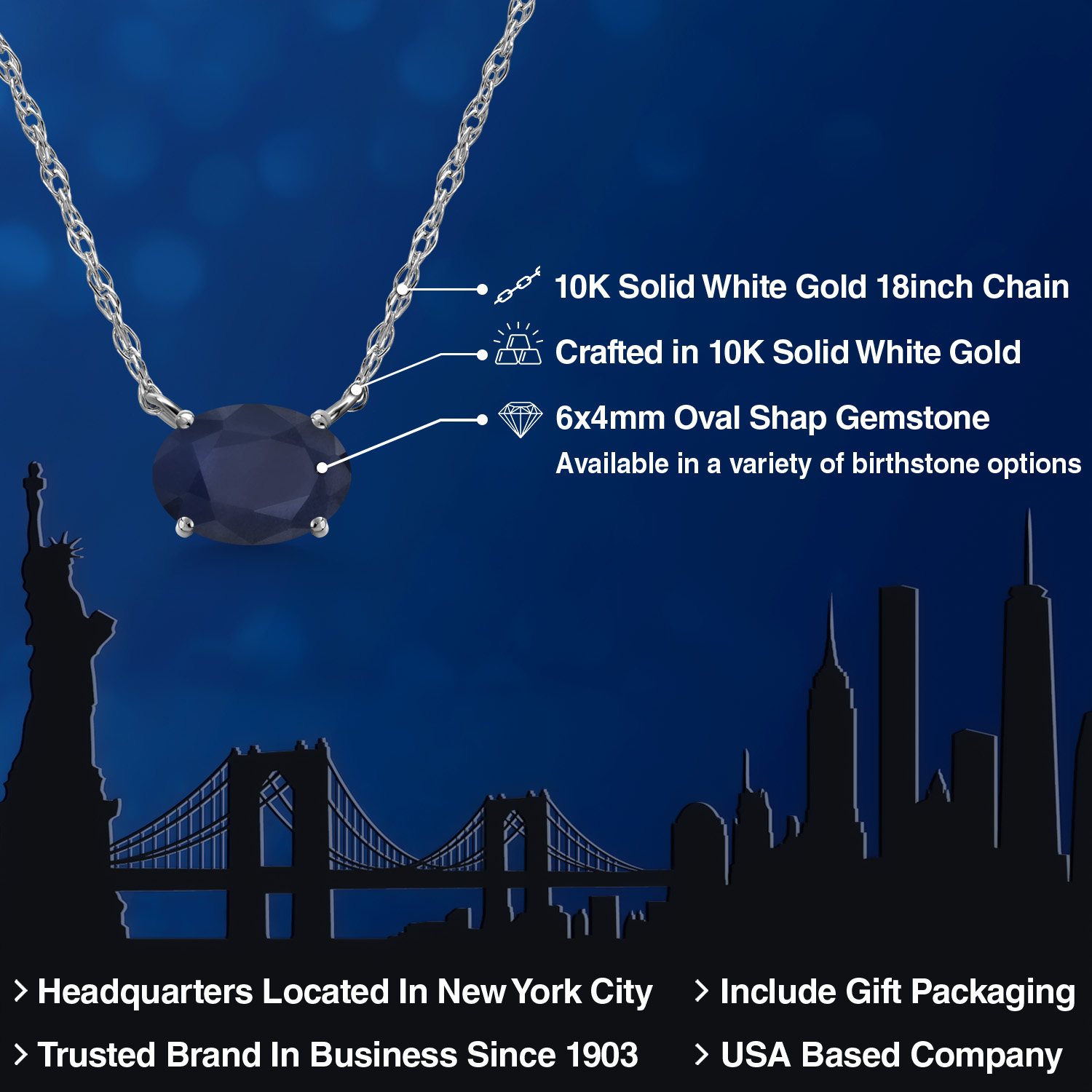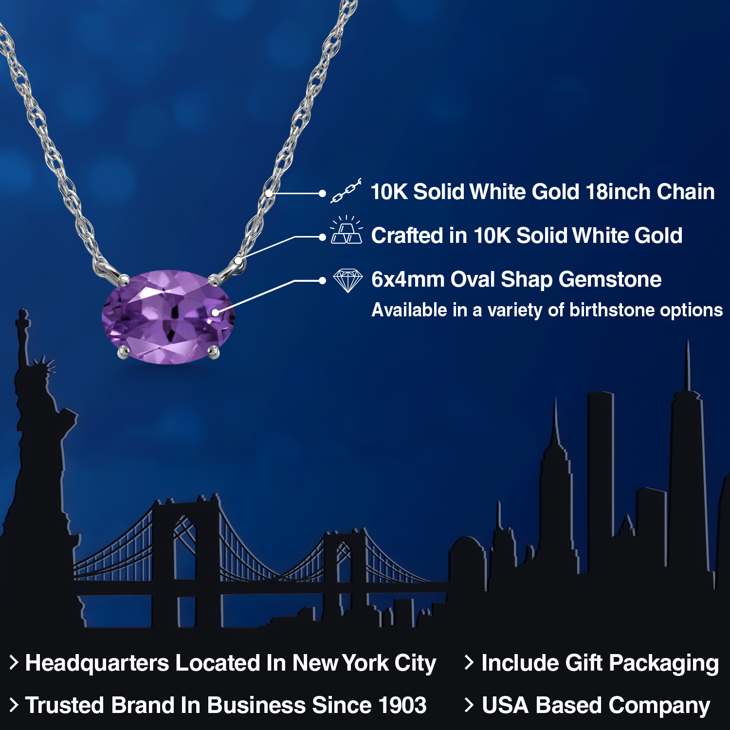 CRAFTED IN SOLID 10K WHITE GOLD: Made from high-quality 10K solid white gold, both the pendant and 18-inch chain offer lasting durability and shine. The sleek white gold finish enhances the gemstone’s brilliance, making it perfect for daily wear or special occasions.