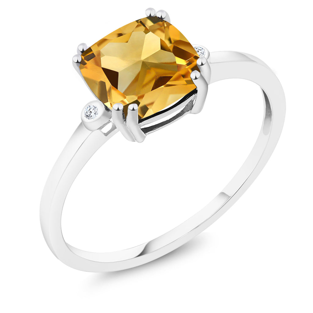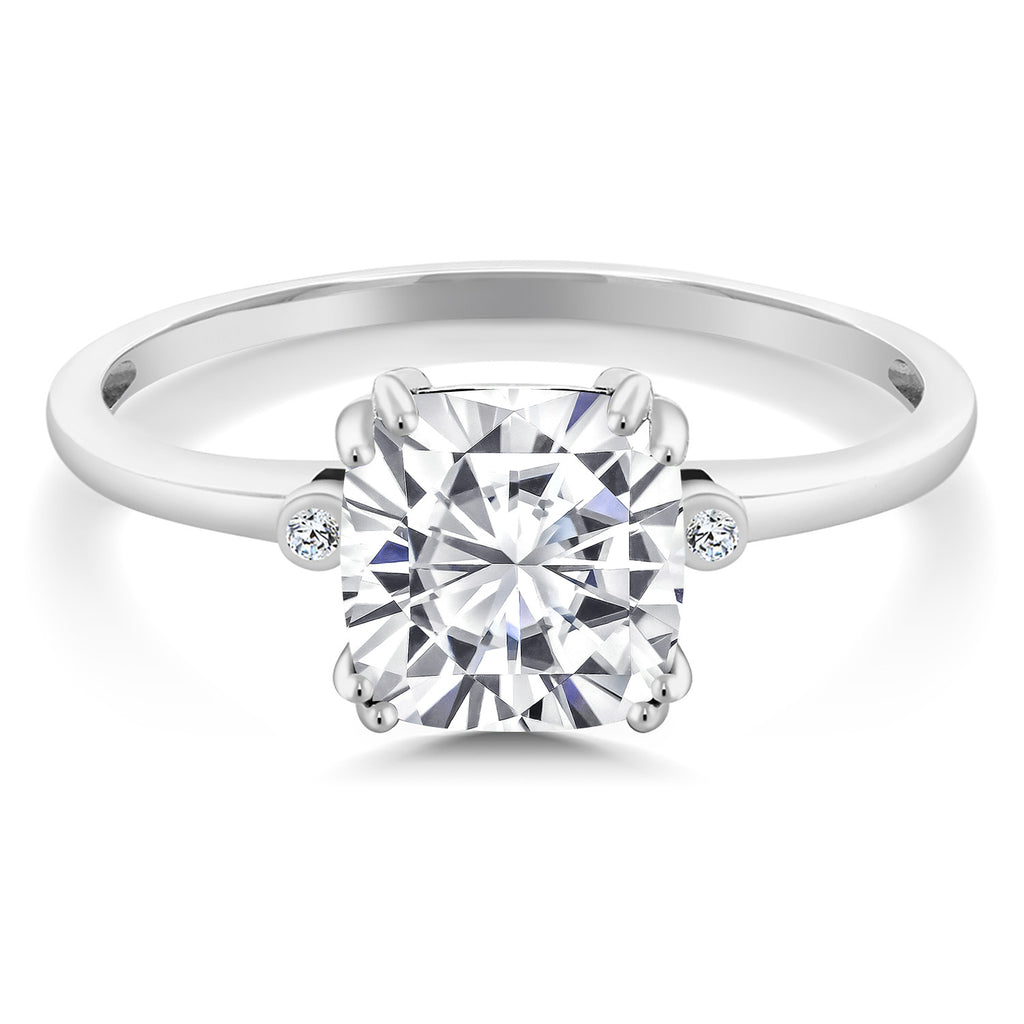 EXQUISITE GEMSTONE AND DIAMOND COMBINATION: Elevate your engagement with our stunning ring crafted from premium 10K white gold. Adorned with a trio of gemstones, including a central cushion-cut 8mm gemstone birthstone of your choice flanked by sparkling white diamonds on either side, this ring exudes elegance and sophistication. The gemstones and diamonds complement each other beautifully, creating a captivating and timeless design that symbolizes love and commitment.