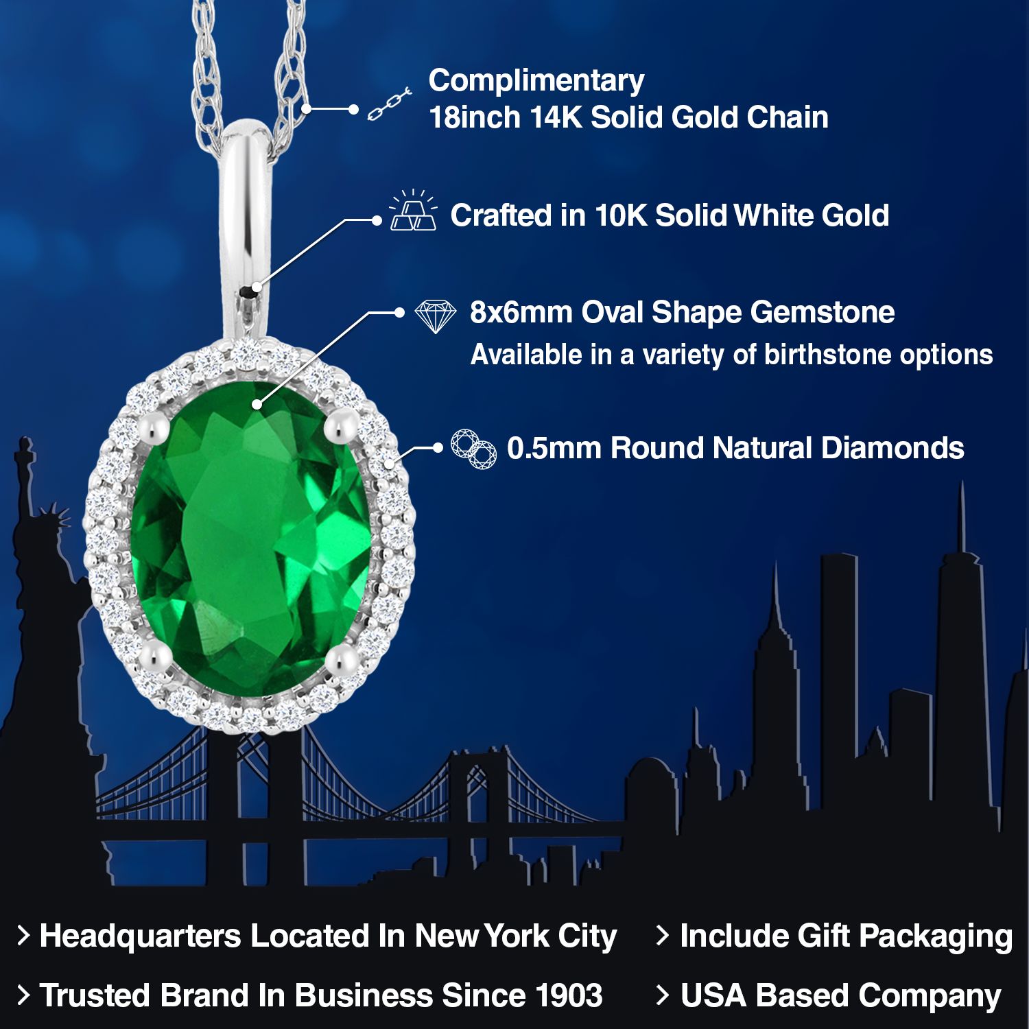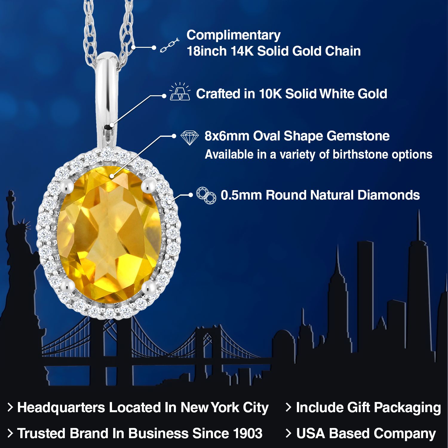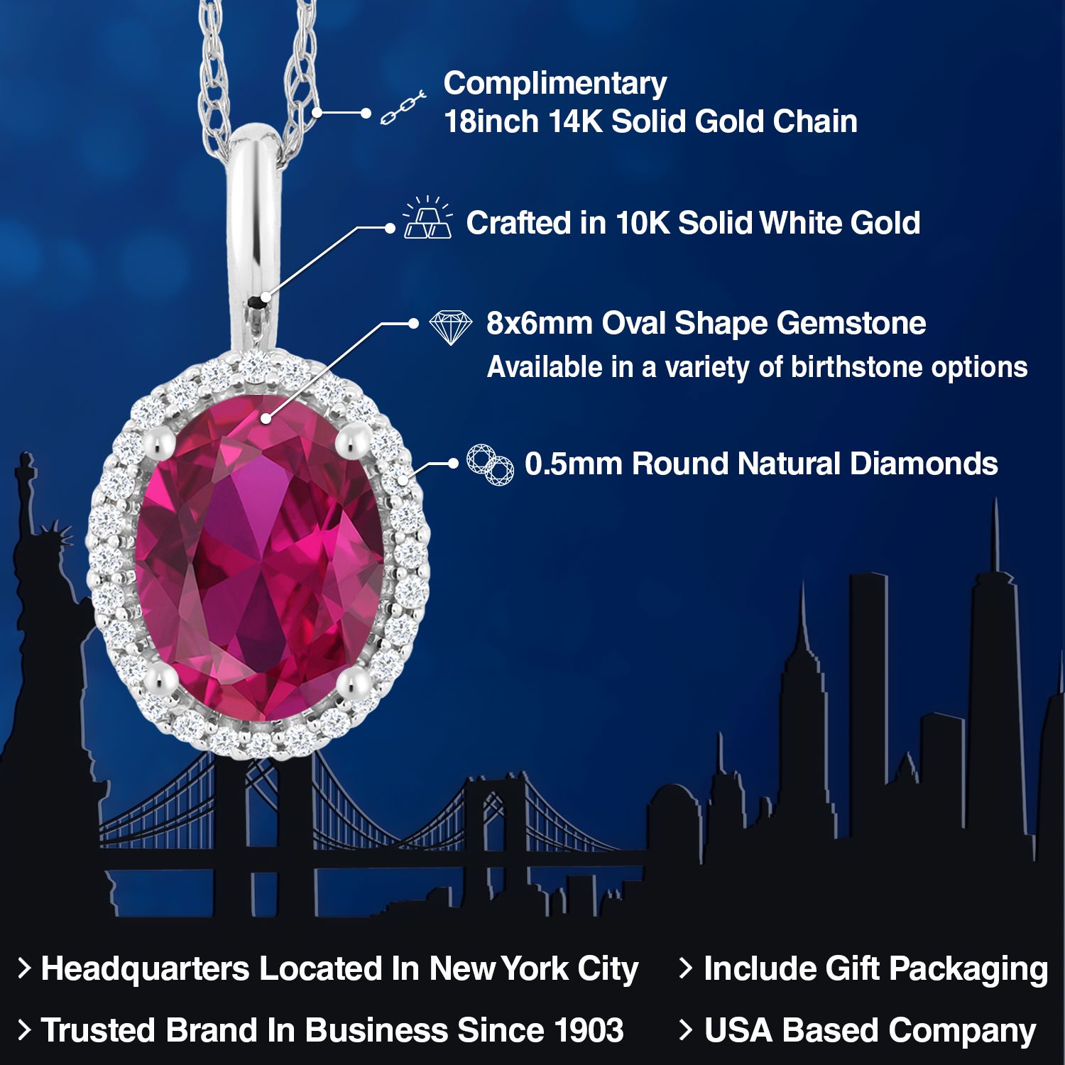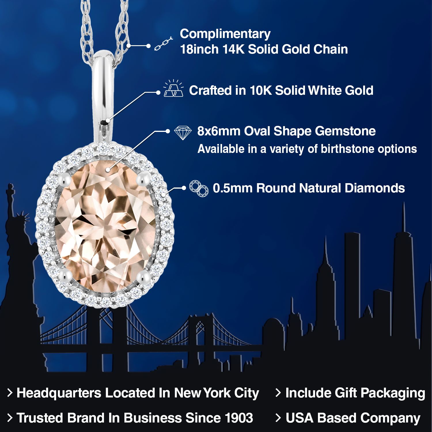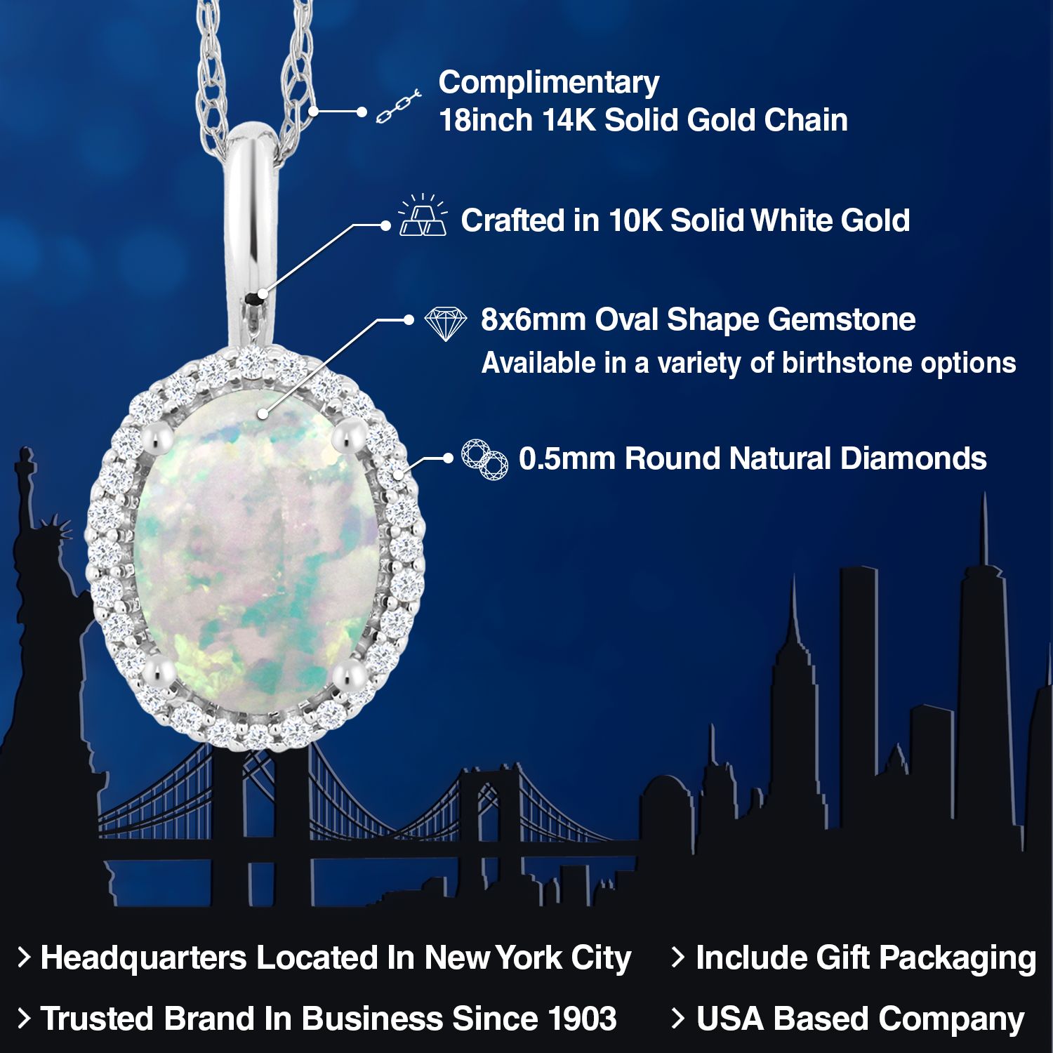 10K White Gold Oval Halo Pendant Necklace for Women | Gemstone Birthstone and Diamond | Oval 8X6MM | White Gold Necklace | 18 Inch Chain | Fine Jewelry Gifts for Her Mom Women Wife