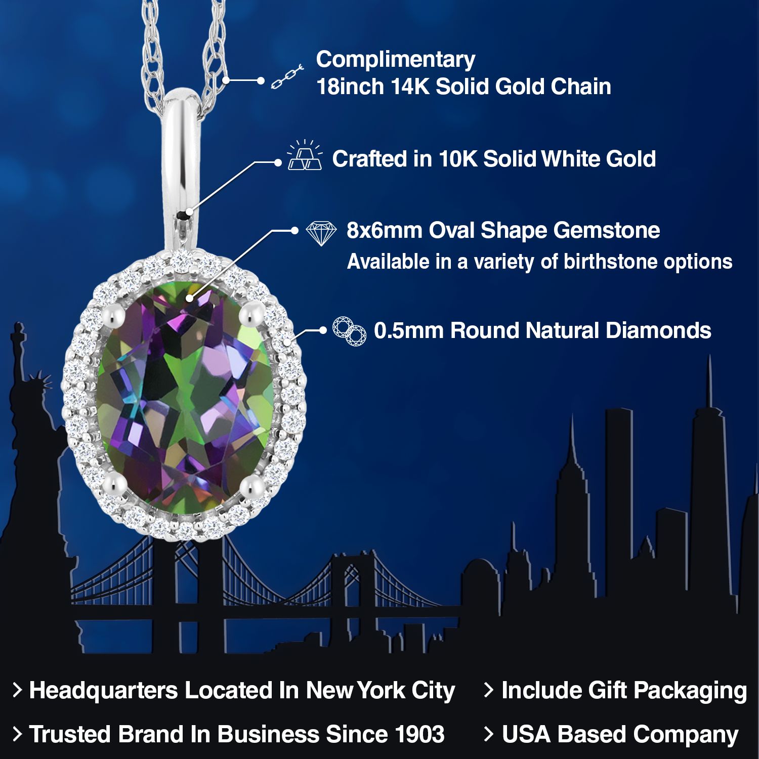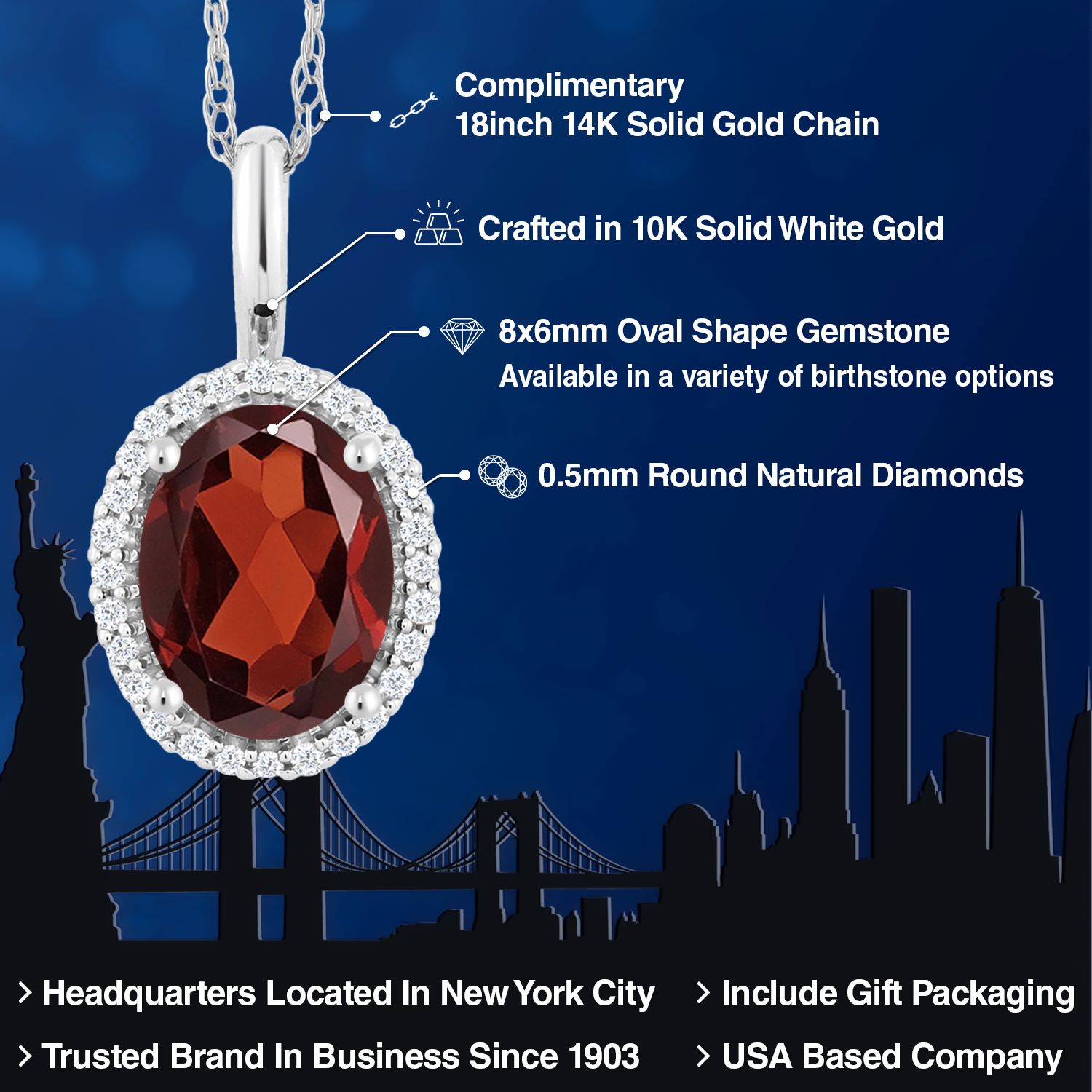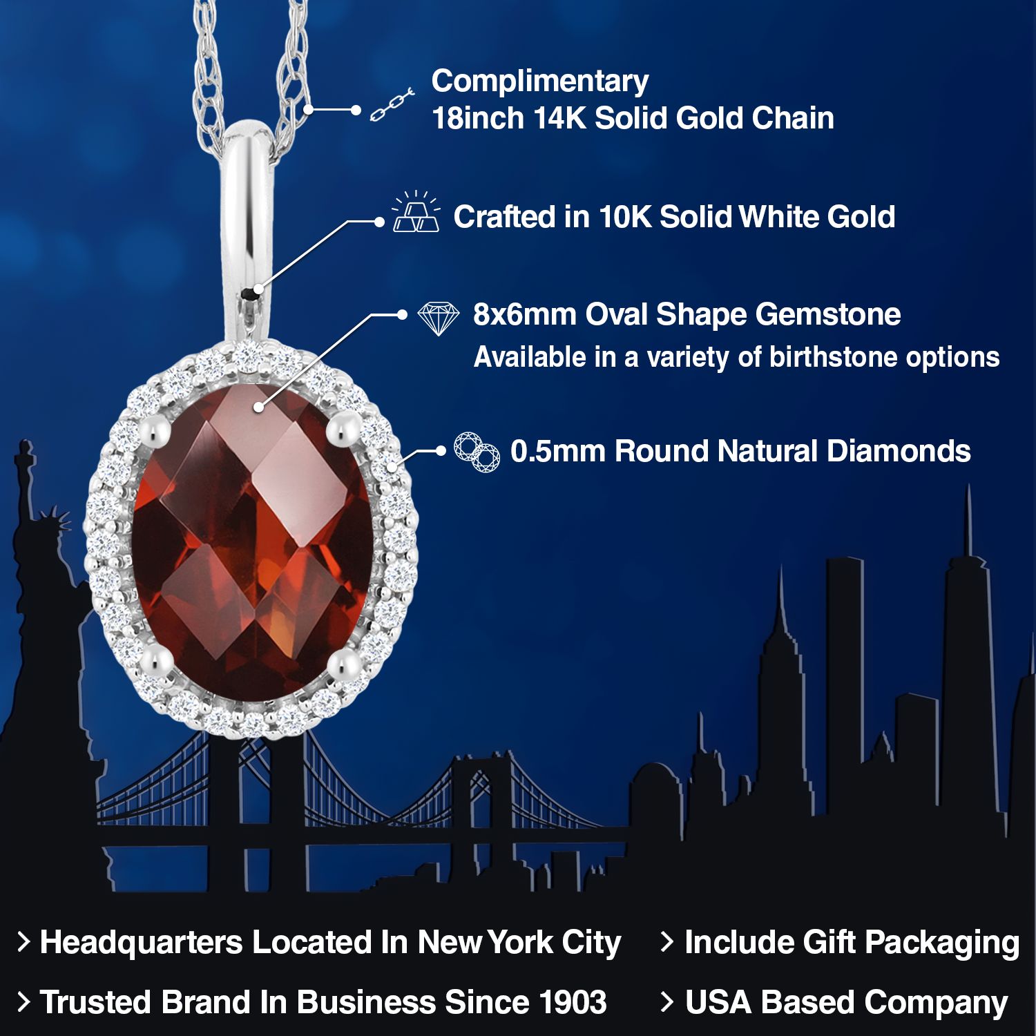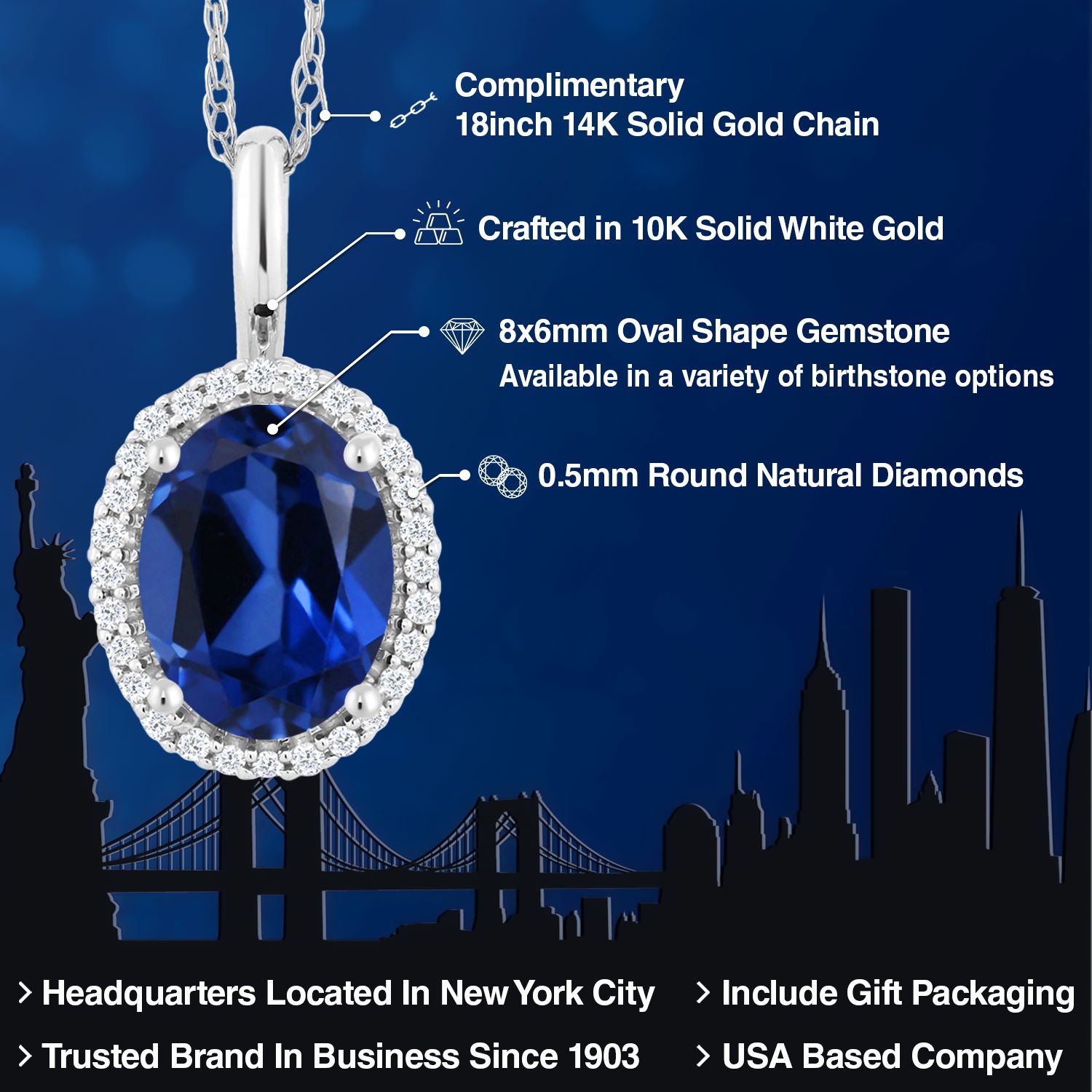 10K White Gold Oval Halo Pendant Necklace for Women | Gemstone Birthstone and Diamond | Oval 8X6MM | White Gold Necklace | 18 Inch Chain | Fine Jewelry Gifts for Her Mom Women Wife