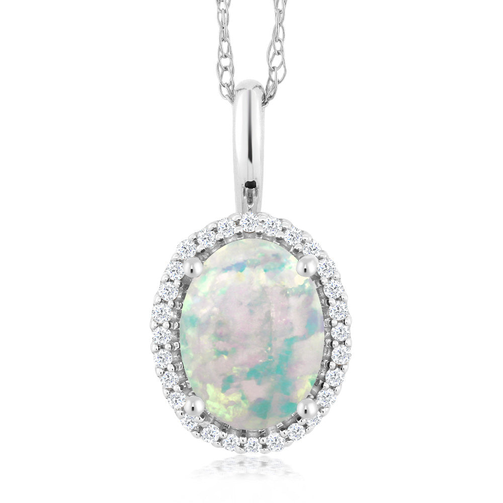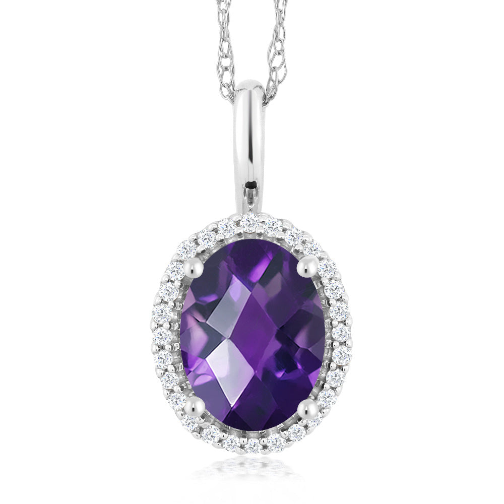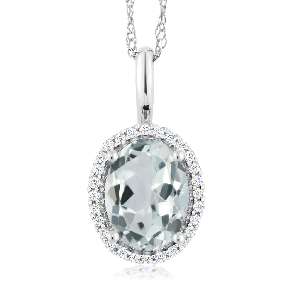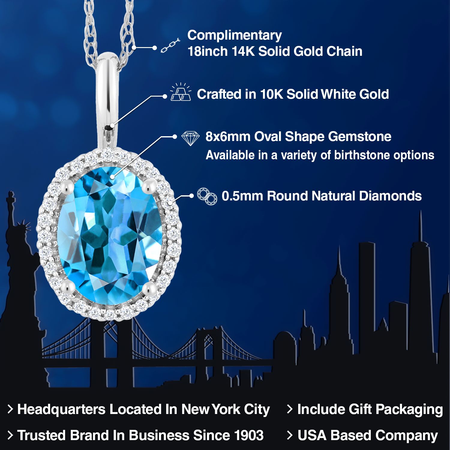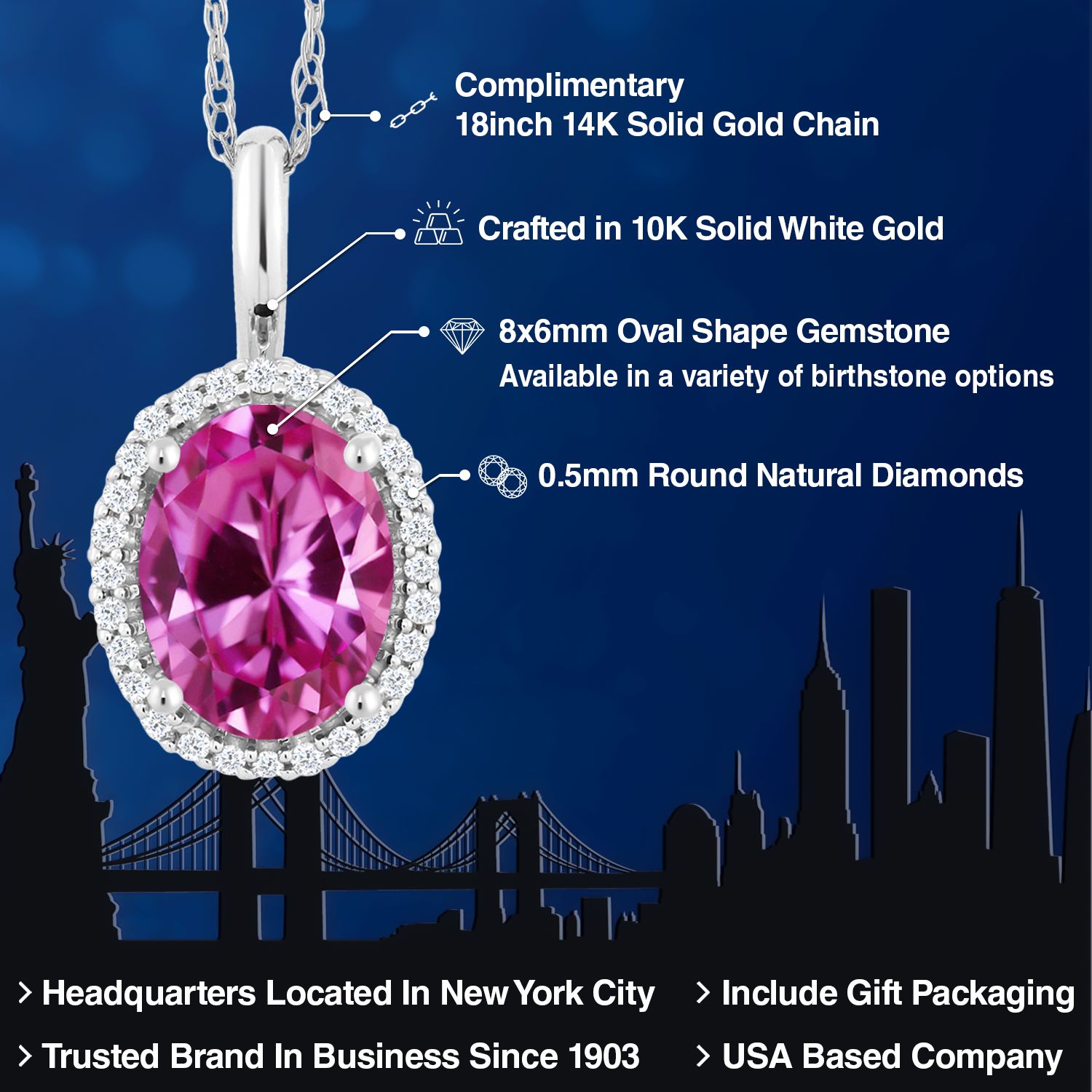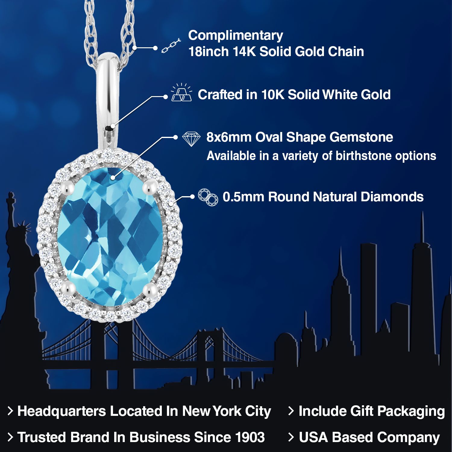 10K White Gold Oval Halo Pendant Necklace for Women | Gemstone Birthstone and Diamond | Oval 8X6MM | White Gold Necklace | 18 Inch Chain | Fine Jewelry Gifts for Her Mom Women Wife