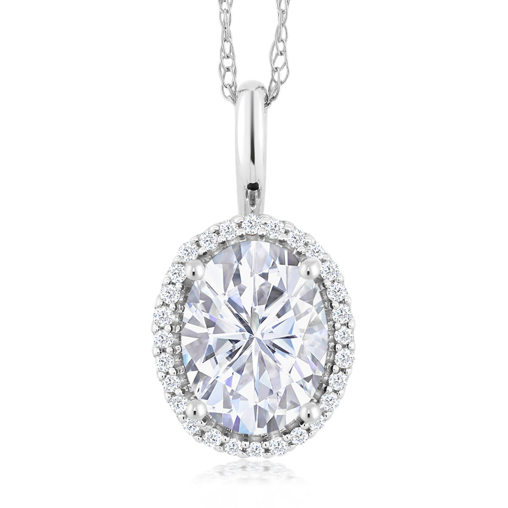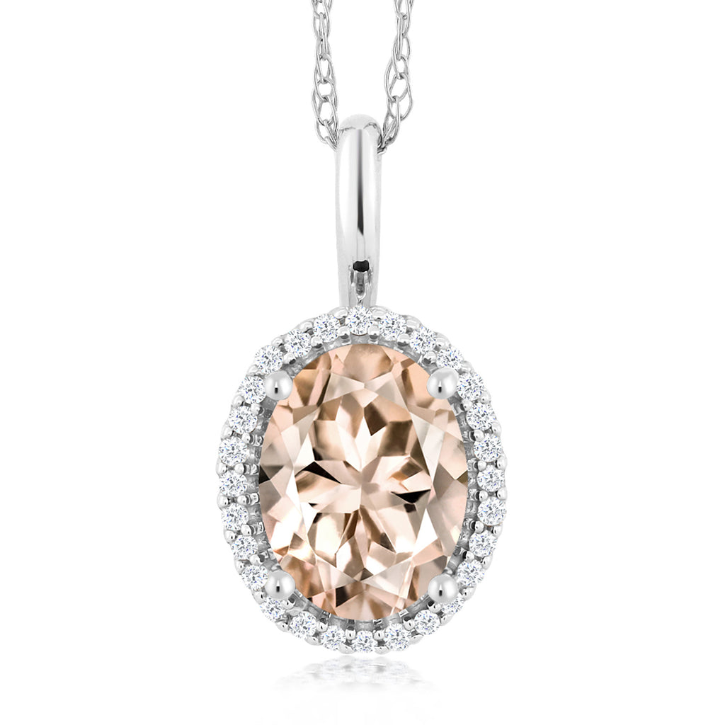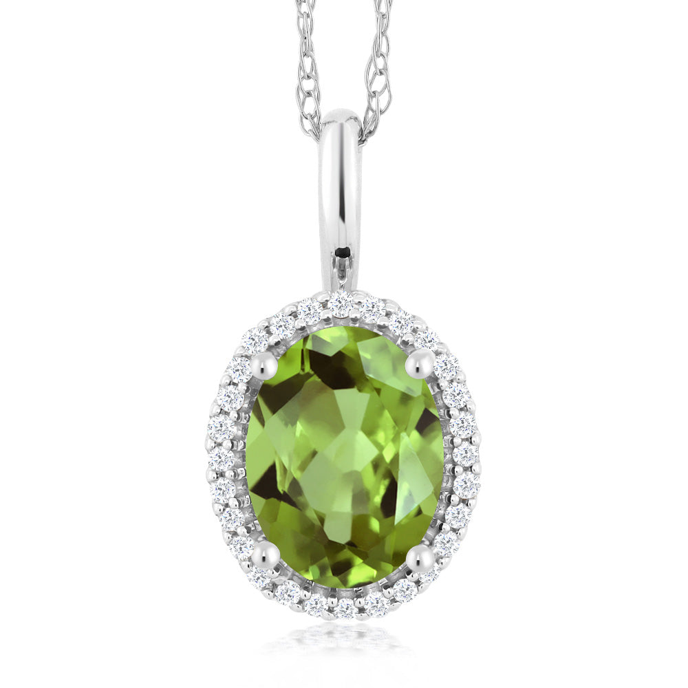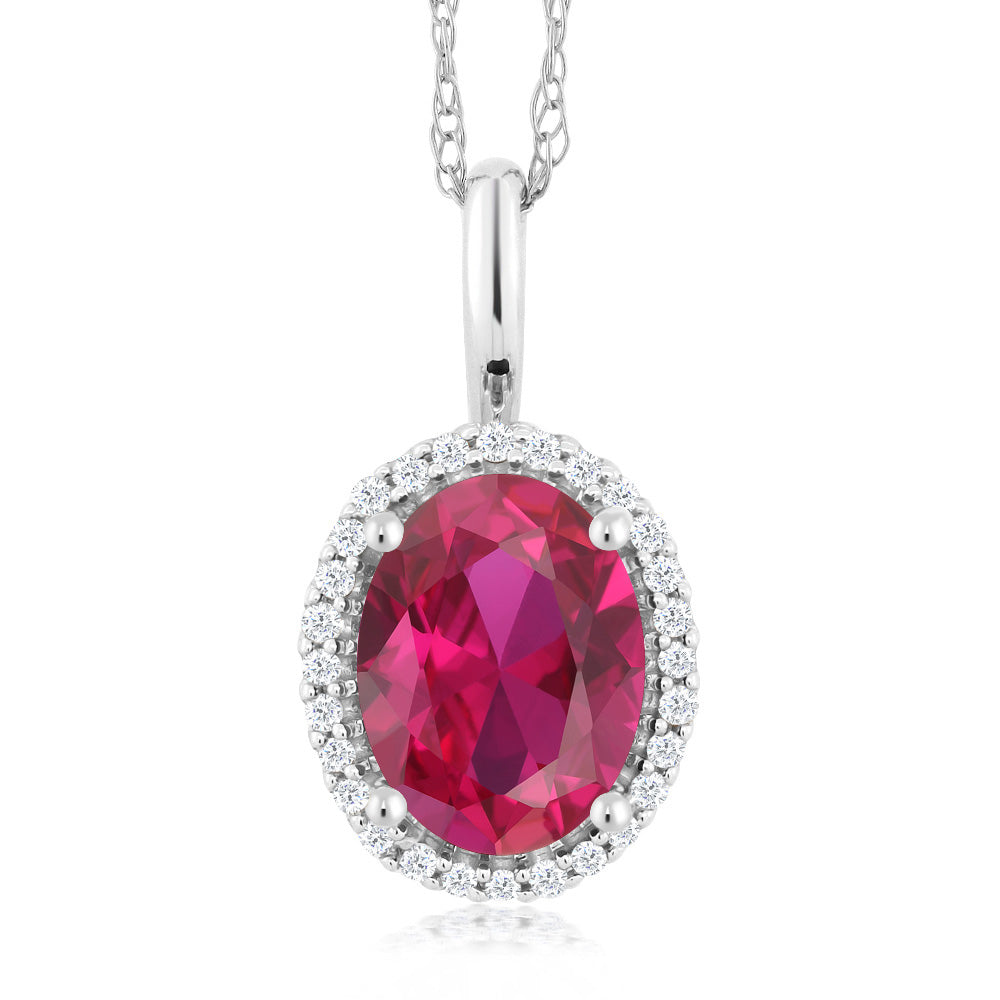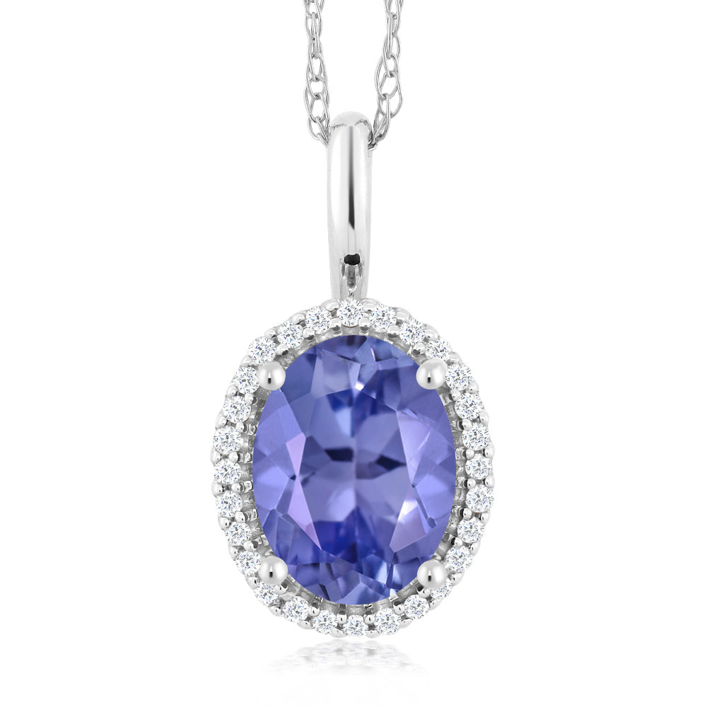 10K White Gold Oval Halo Pendant Necklace for Women | Gemstone Birthstone and Diamond | Oval 8X6MM | White Gold Necklace | 18 Inch Chain | Fine Jewelry Gifts for Her Mom Women Wife