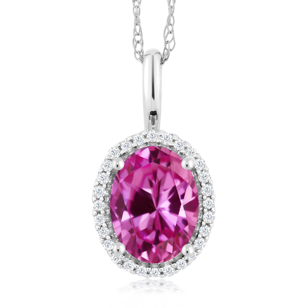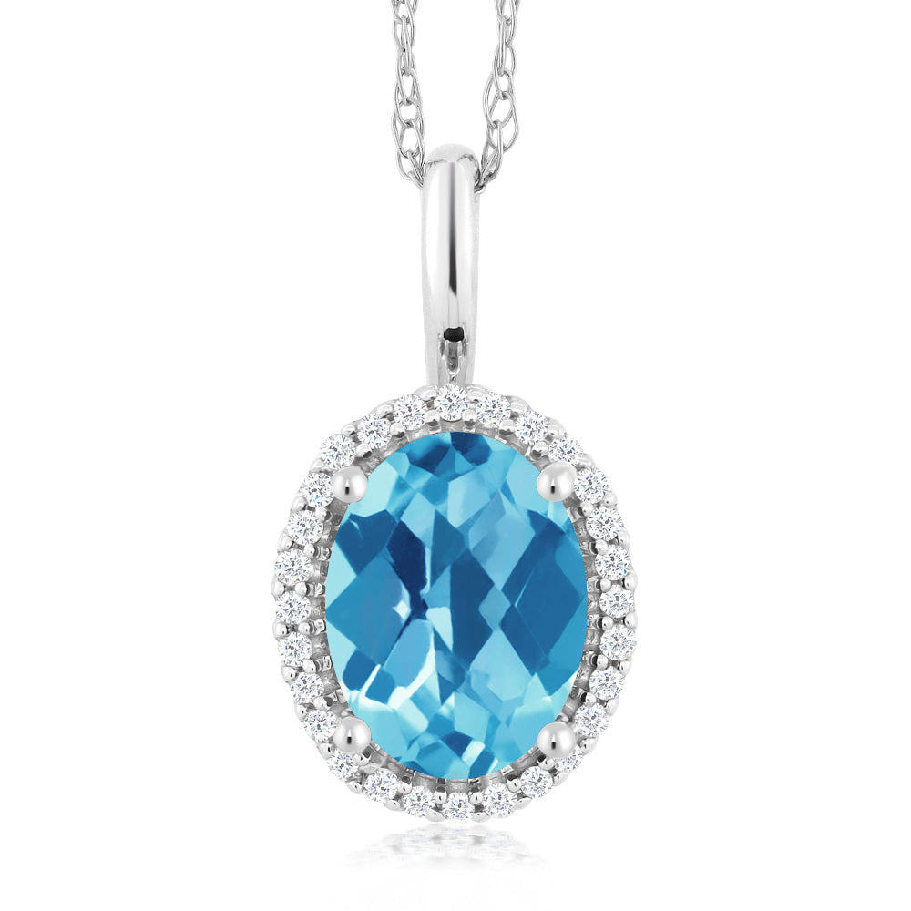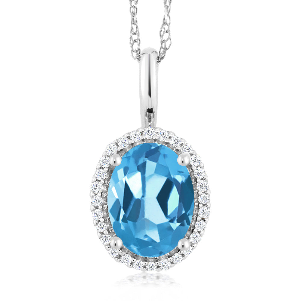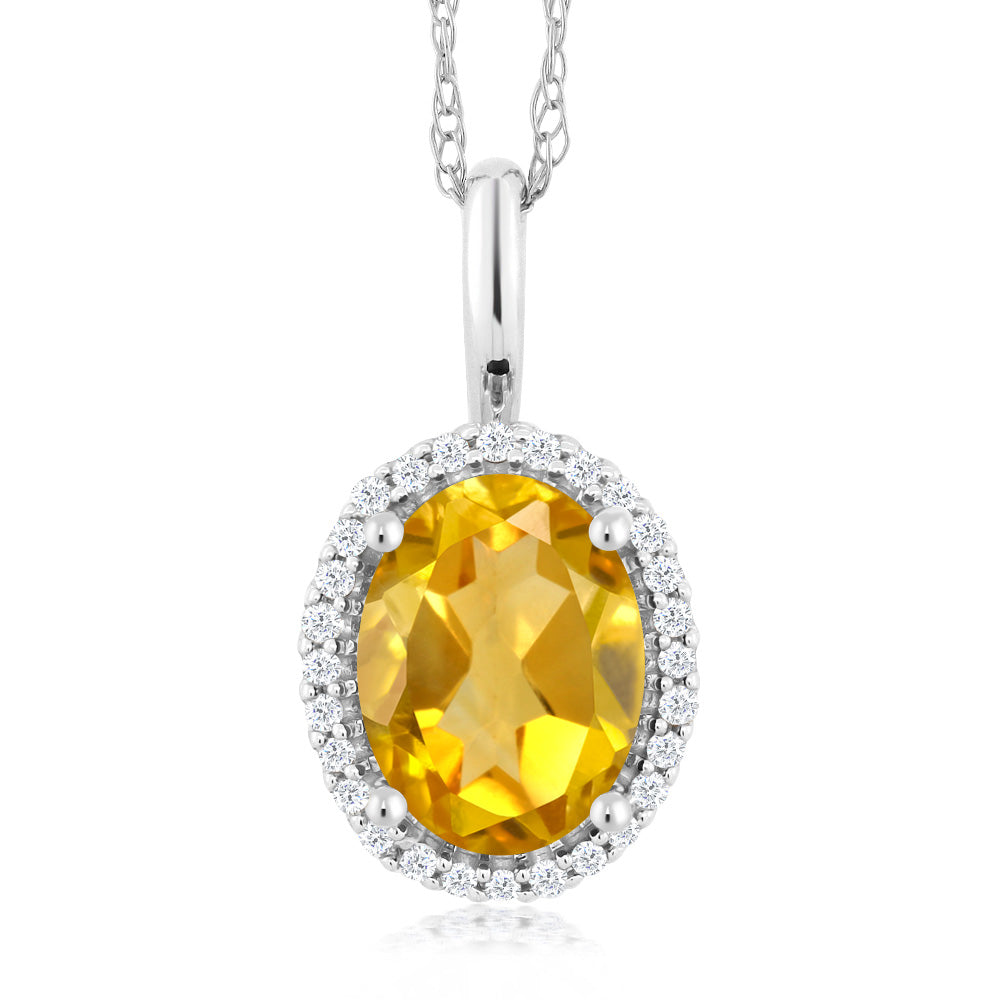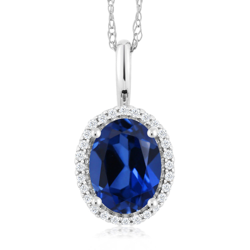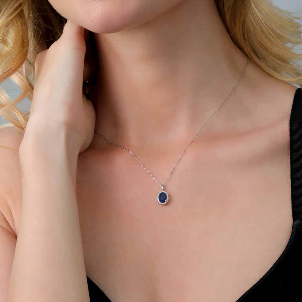 10K White Gold Oval Halo Pendant Necklace for Women | Gemstone Birthstone and Diamond | Oval 8X6MM | White Gold Necklace | 18 Inch Chain | Fine Jewelry Gifts for Her Mom Women Wife