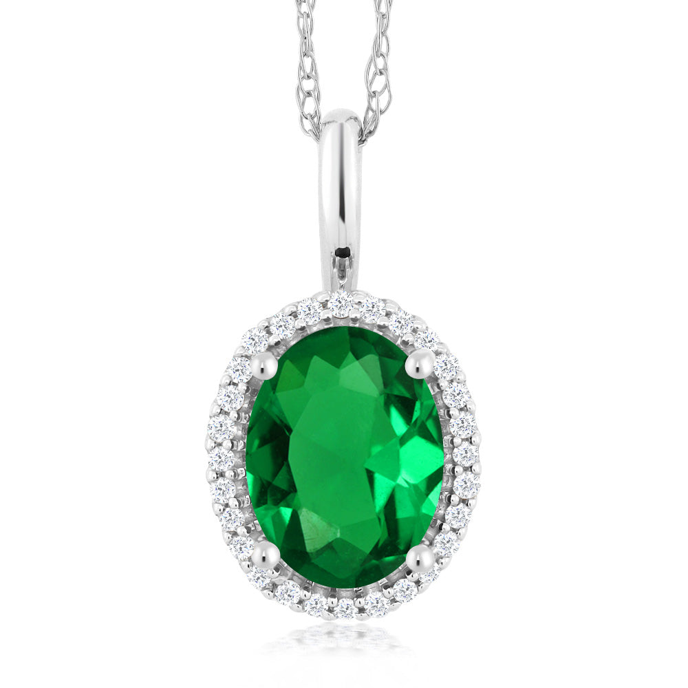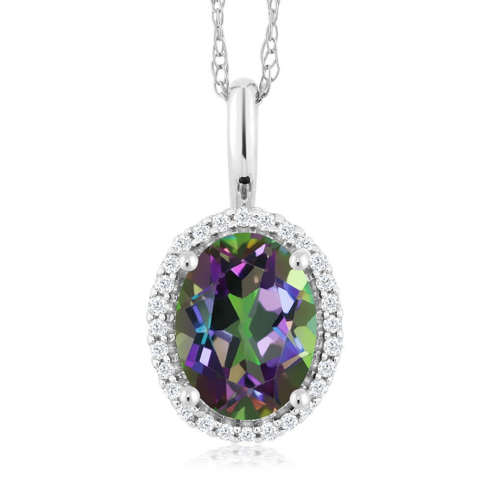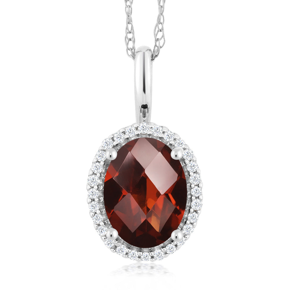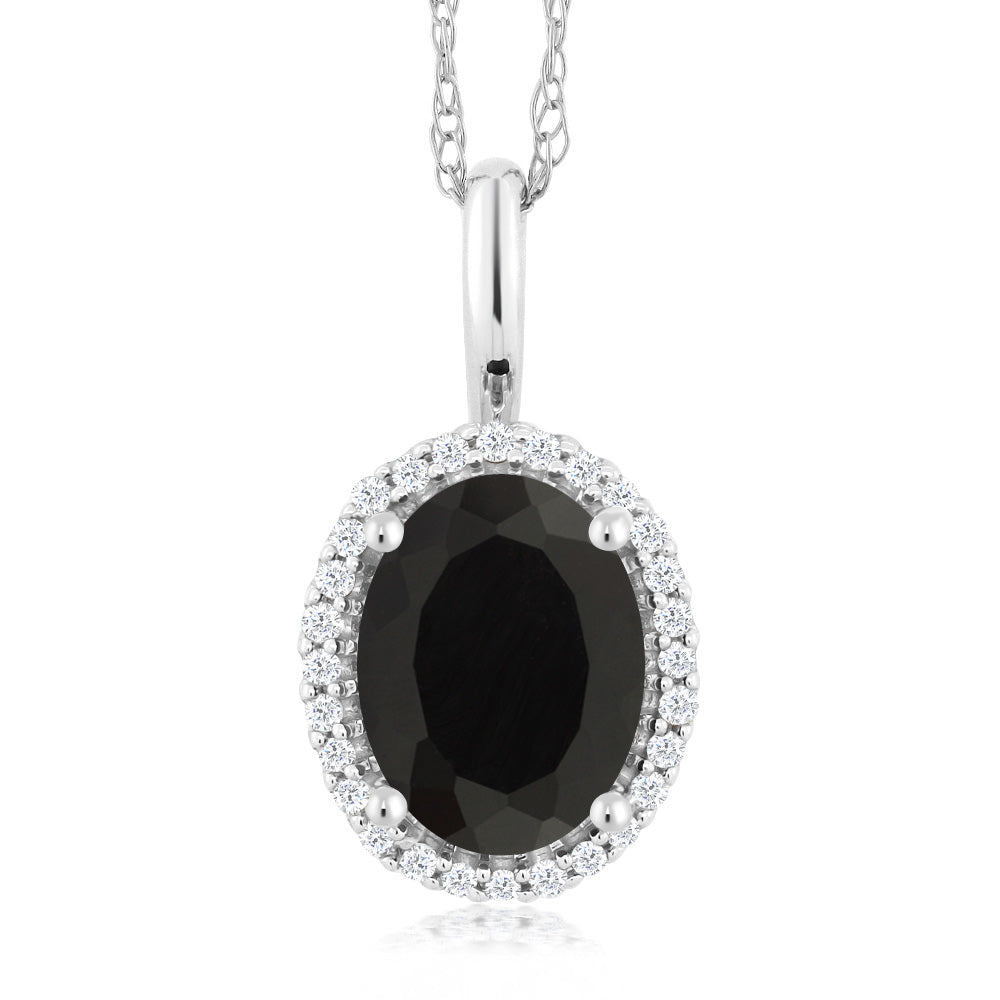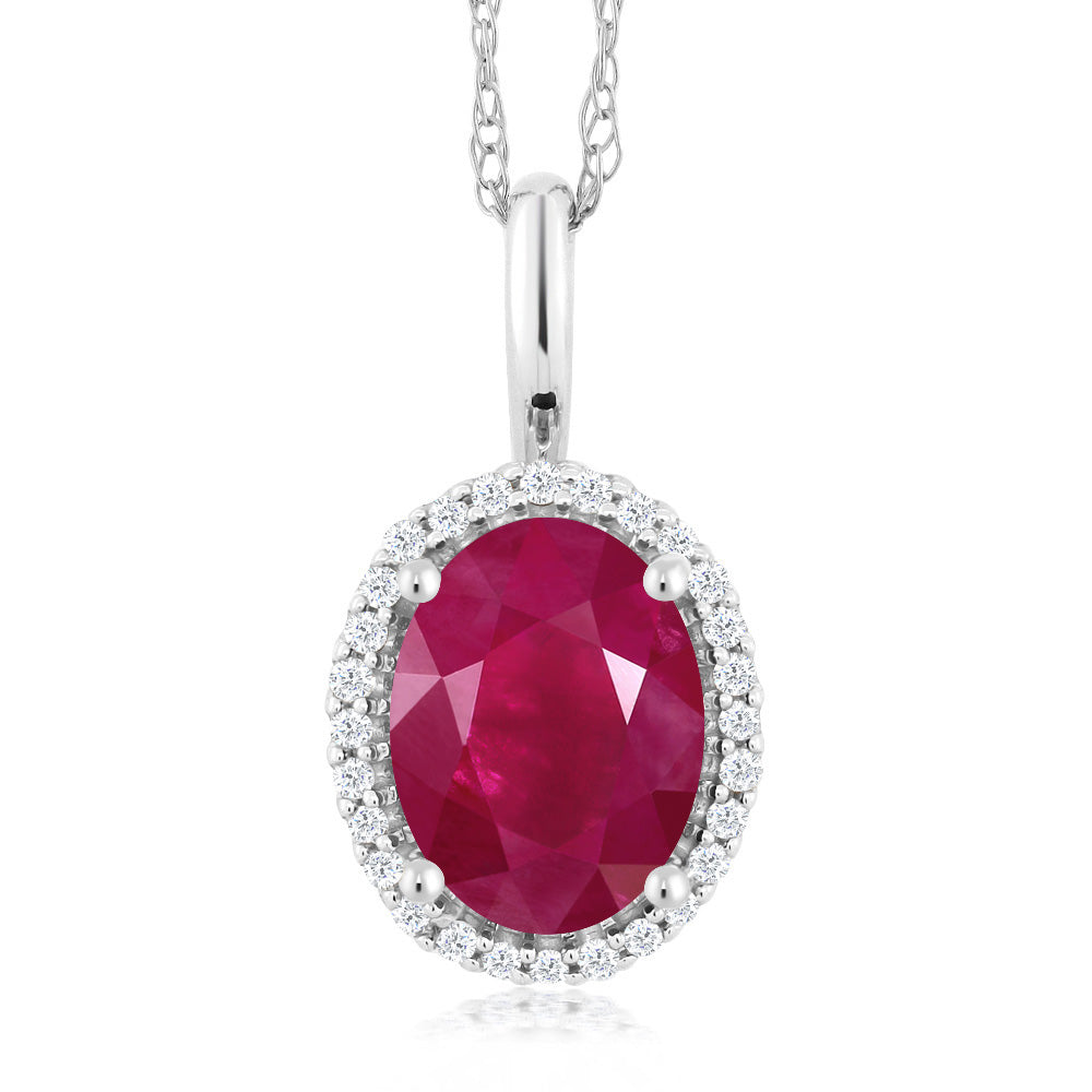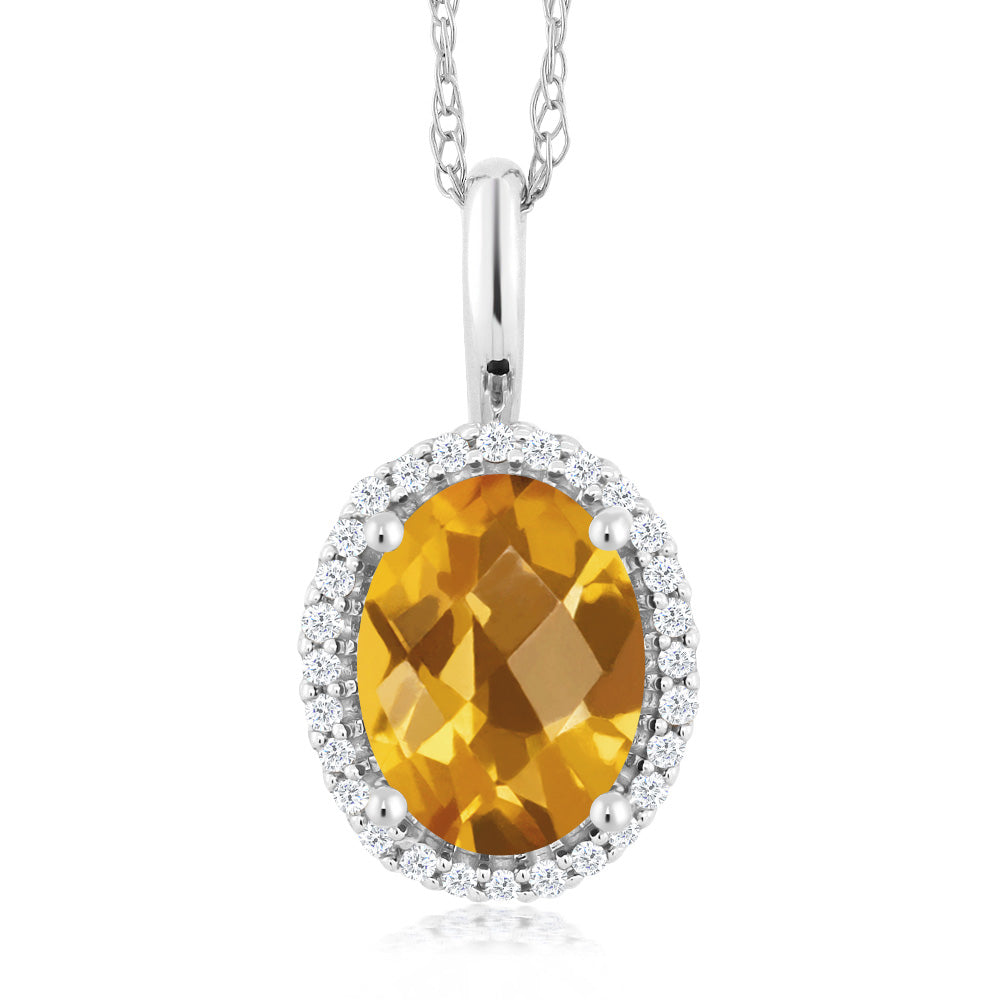 10K White Gold Oval Halo Pendant Necklace for Women | Gemstone Birthstone and Diamond | Oval 8X6MM | White Gold Necklace | 18 Inch Chain | Fine Jewelry Gifts for Her Mom Women Wife