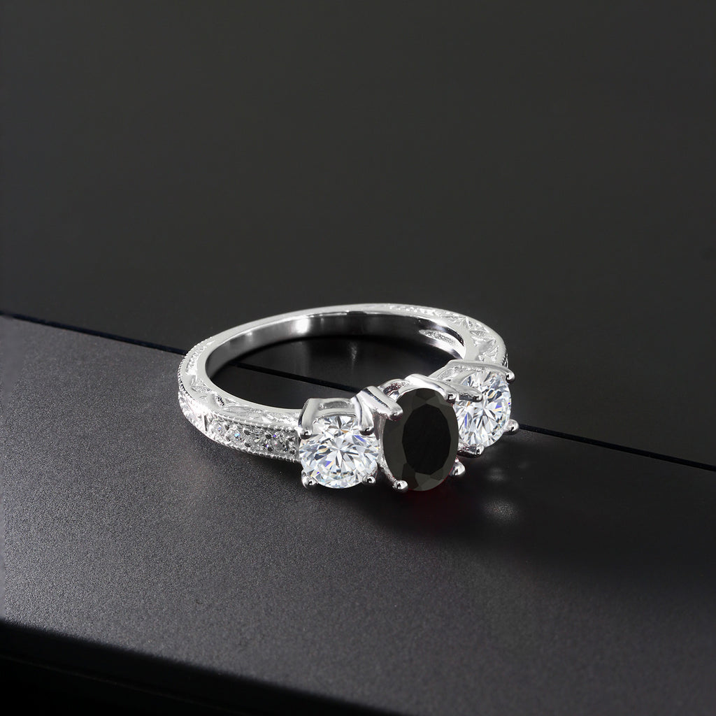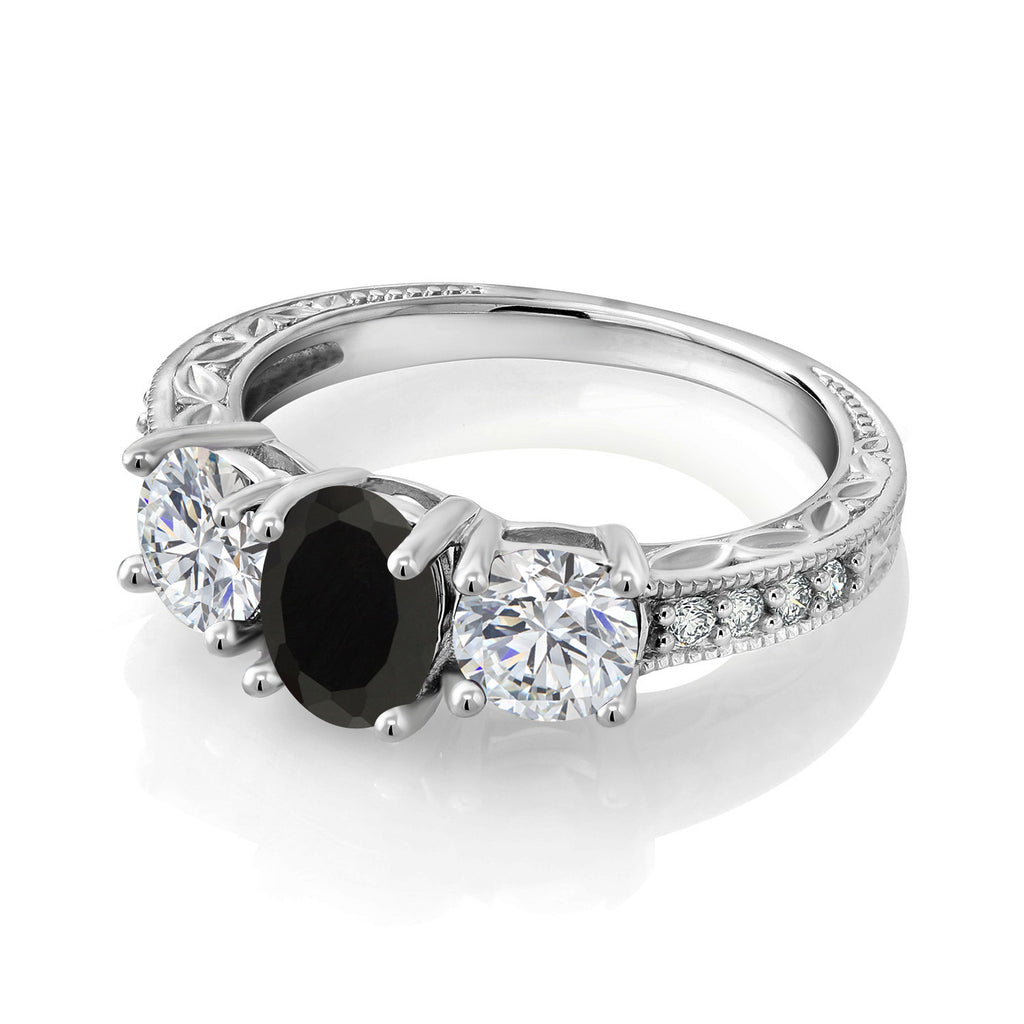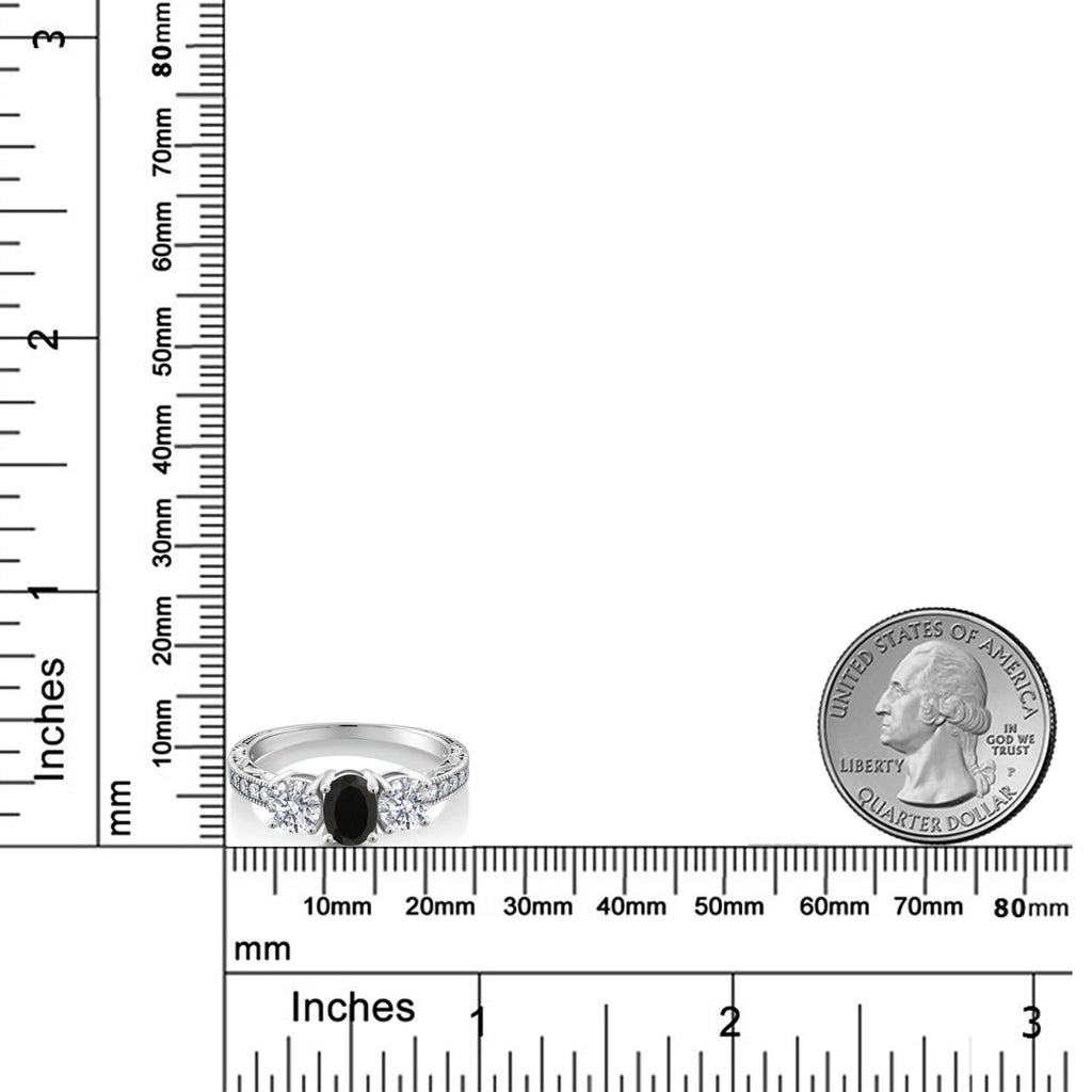 MEASUREMENTS: 7x5mm Oval Black Onyx, 5x5mm Round E - F Lab Grown Diamond1.5, x, 1.5, mm Round E - F Lab Grown Diamond. Total Carat Weight is 1.82 cttw