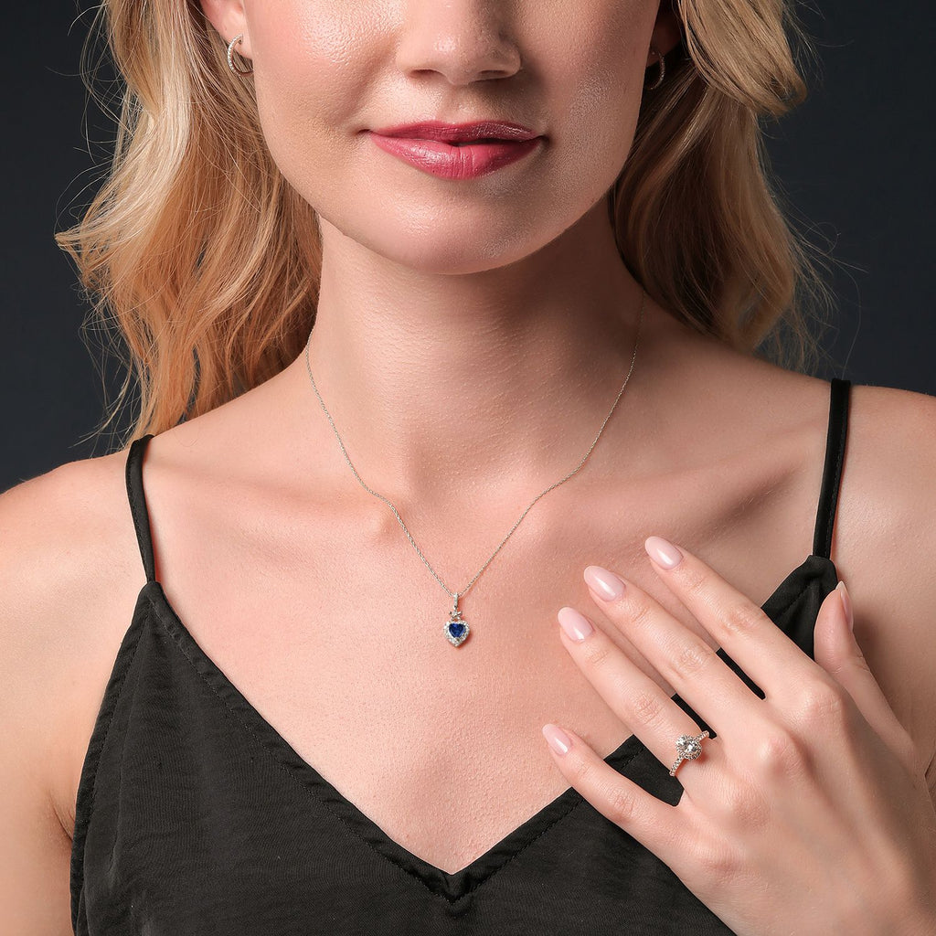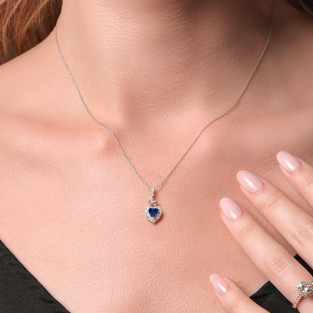HEART-SHAPED ELEGANCE: Elevate your style with this exquisite pendant necklace featuring a heart-shaped 5MM blue created sapphire. The deep blue hue symbolizes sincerity and adds a touch of elegance to your look.