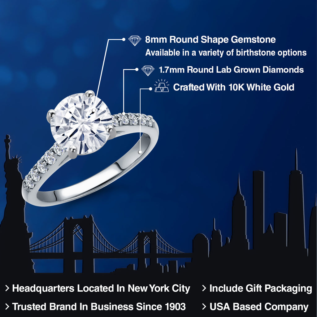 CAPTIVATING 8MM ROUND GEMSTONE: Featuring a stunning 8MM round gemstone, this engagement ring offers a brilliant centerpiece that radiates elegance. Available in a range of birthstone options, each gemstone is meticulously cut to maximize its natural beauty and allure, making it a perfect symbol of personal significance and timeless romance. The round shape enhances its sparkle, ensuring every glance at this masterpiece is met with admiration and awe.