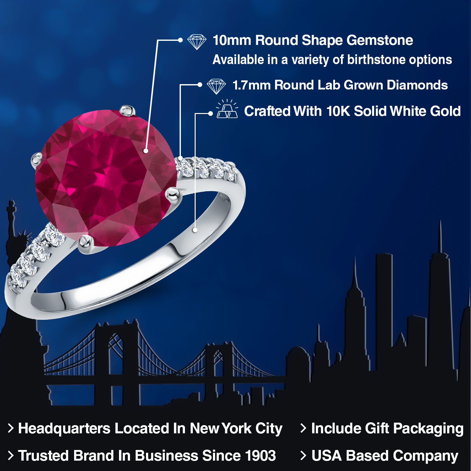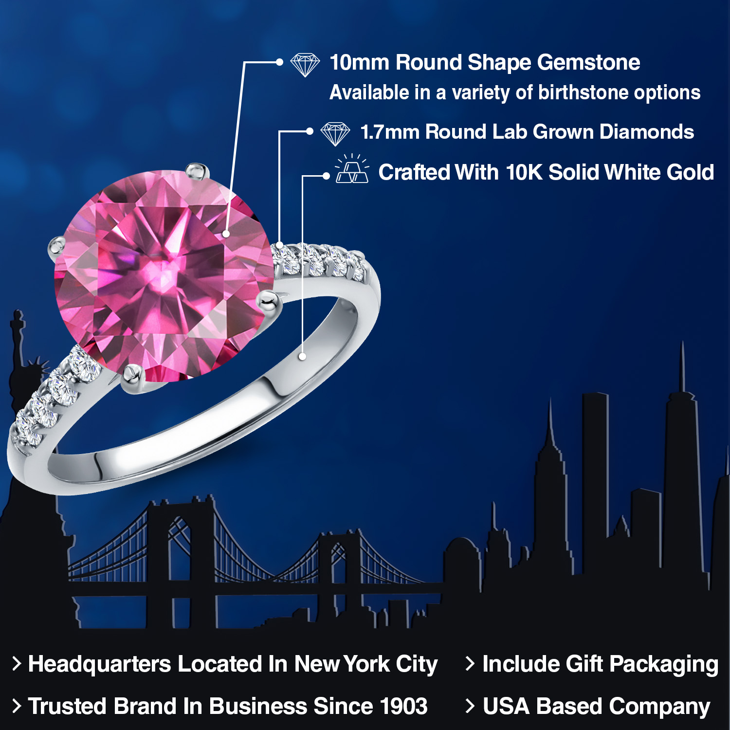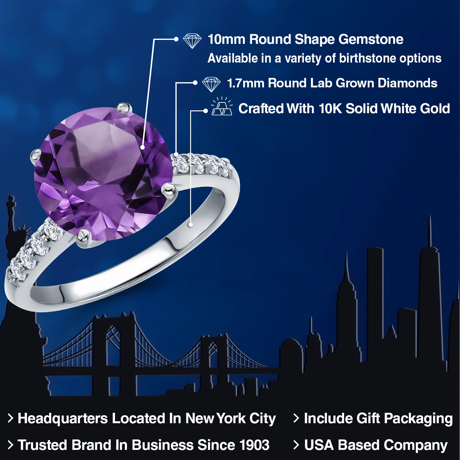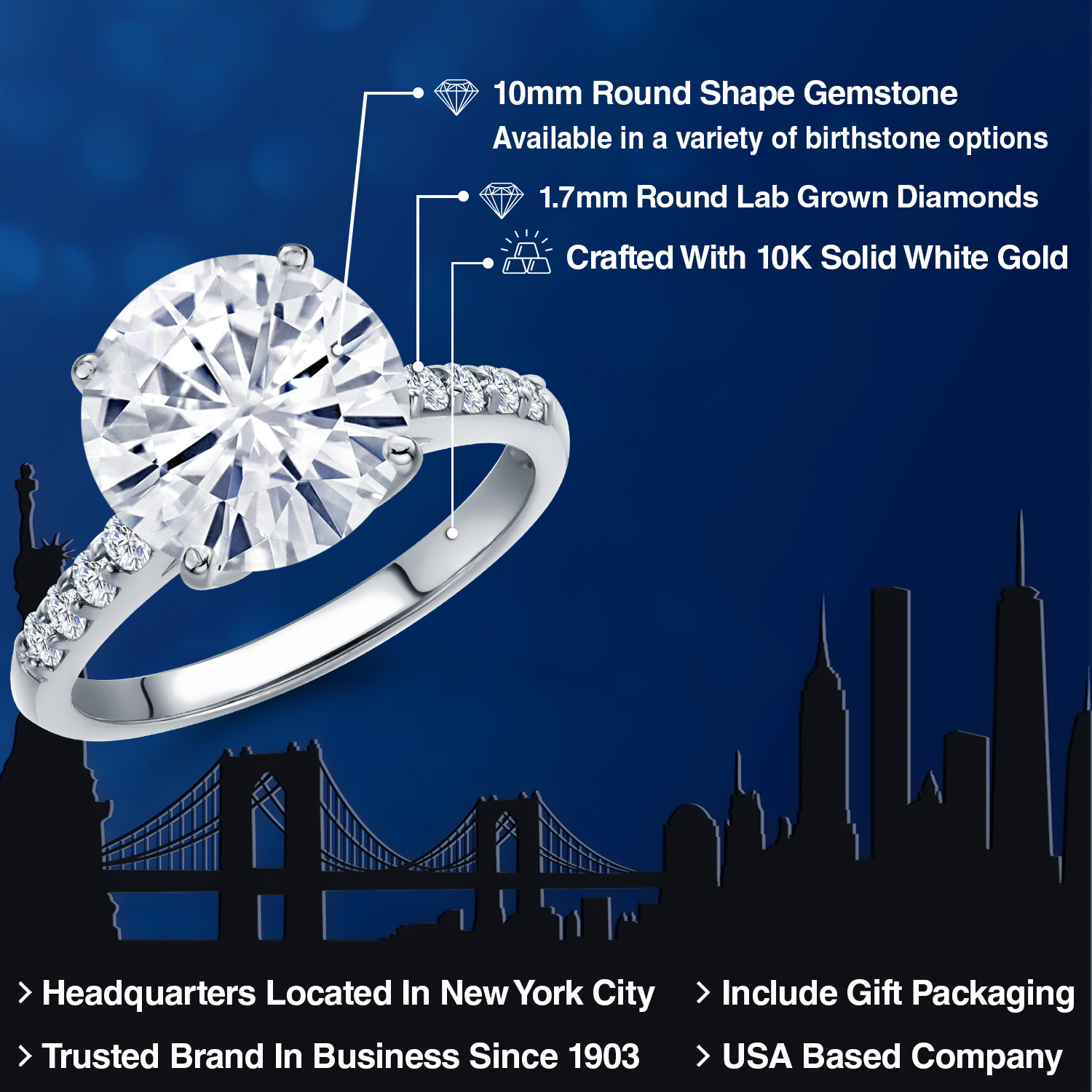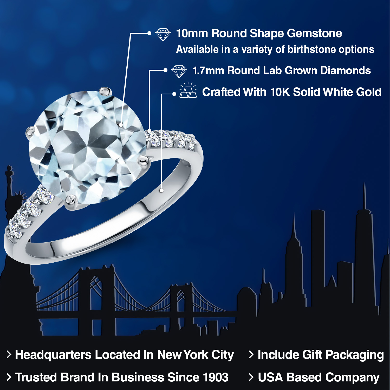 10K White Gold Round 10MM Gemstone Birthstone and Lab Grown Diamond Engagement Ring For Women | Wedding Anniversary Promise Ring For Women | Size 5,6,7,8,9