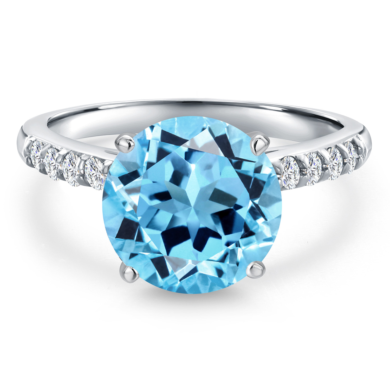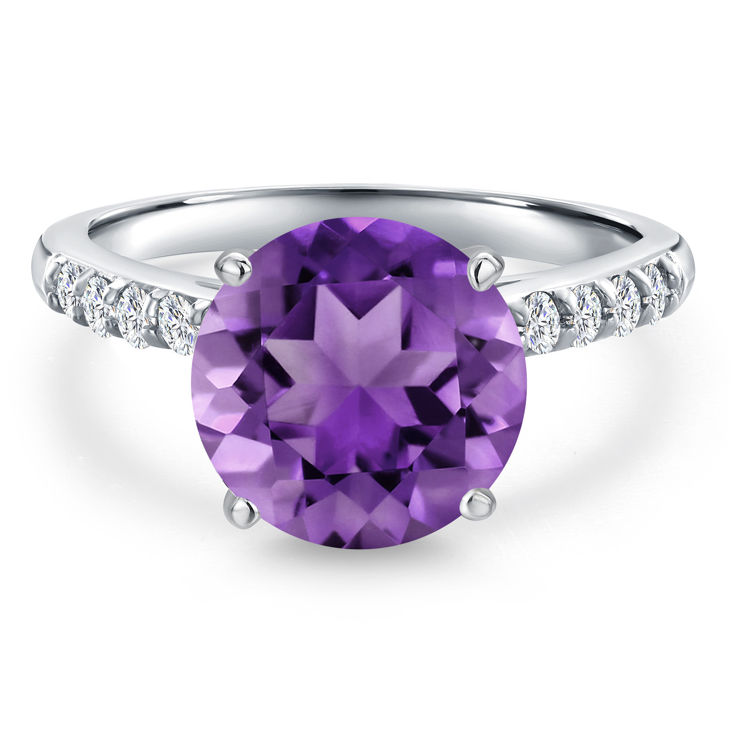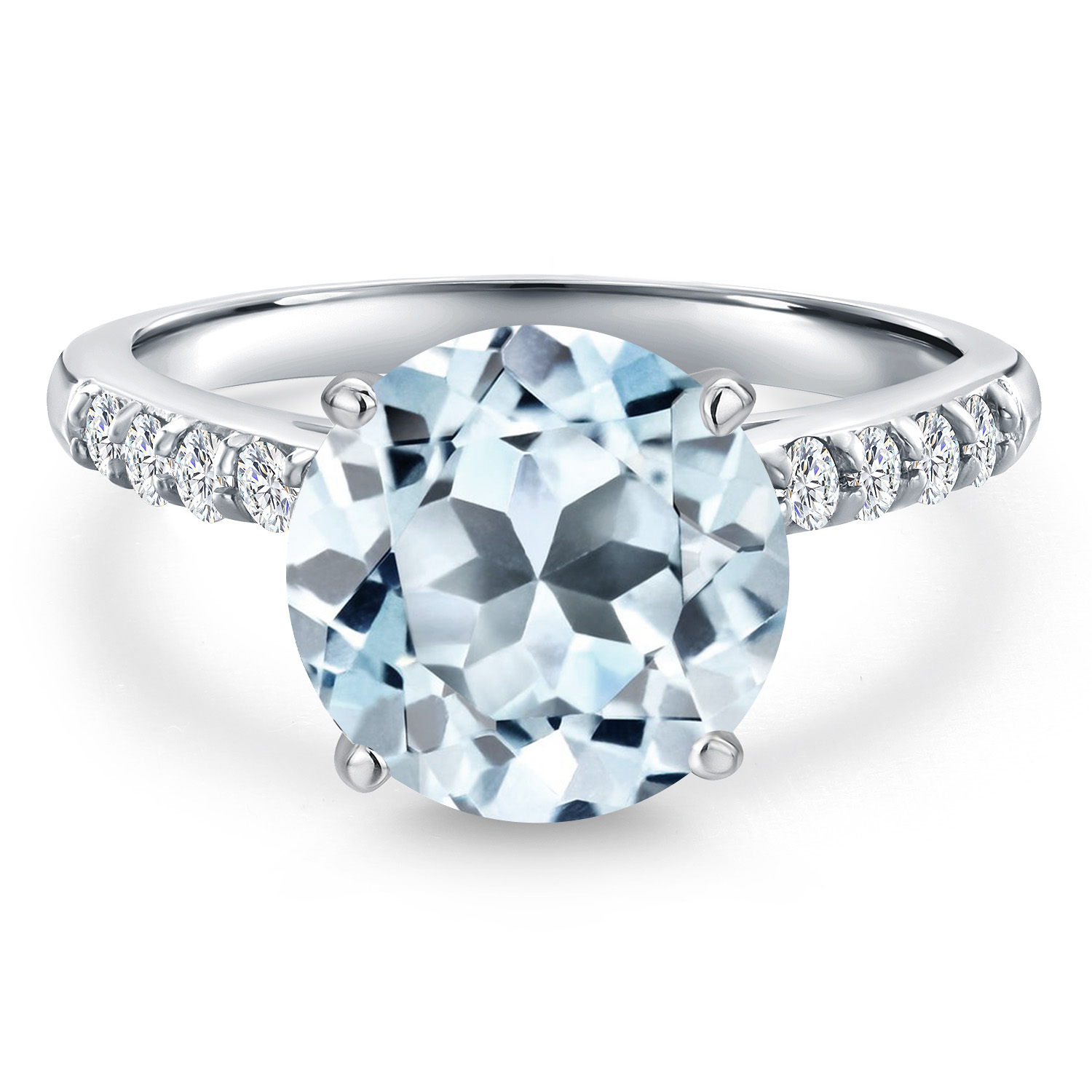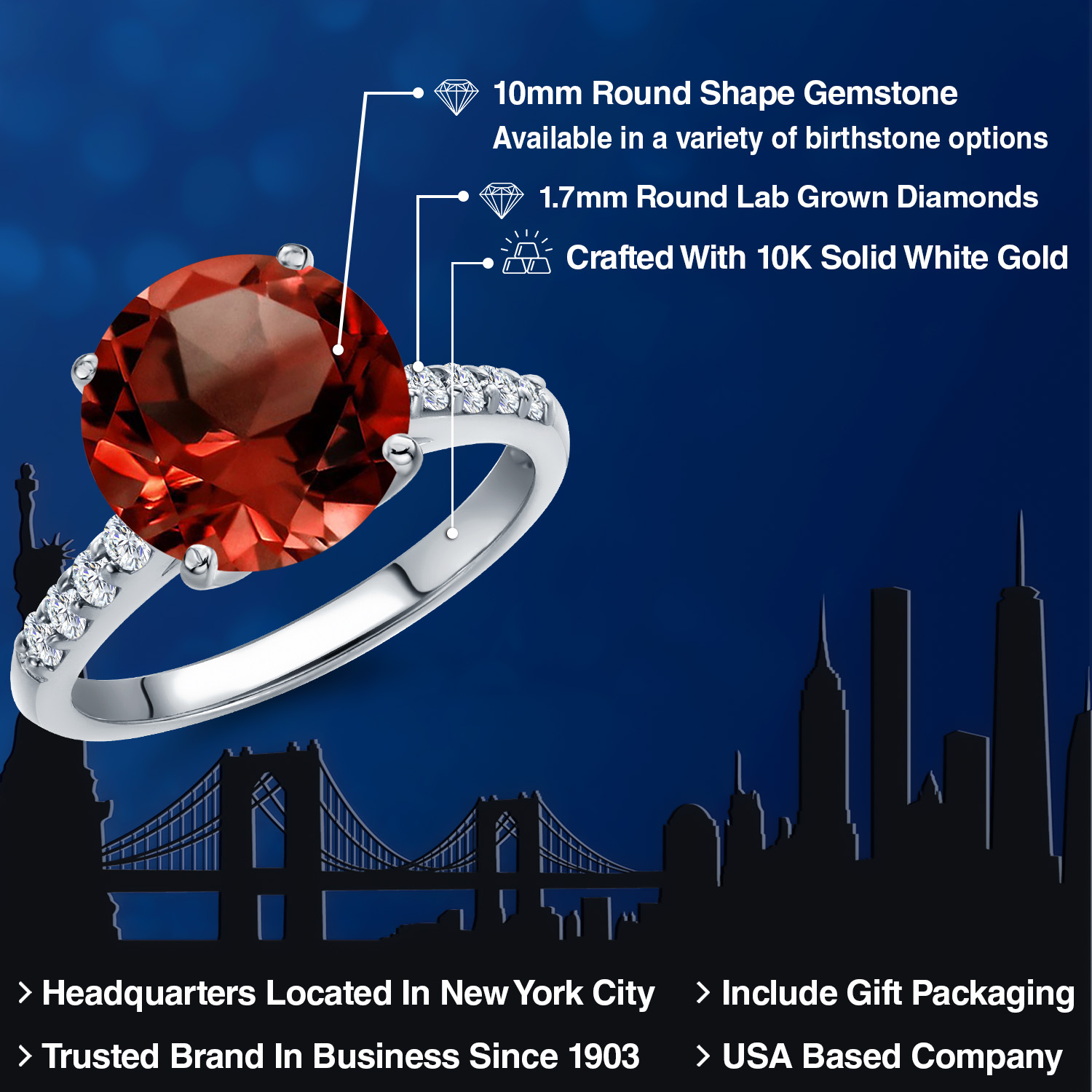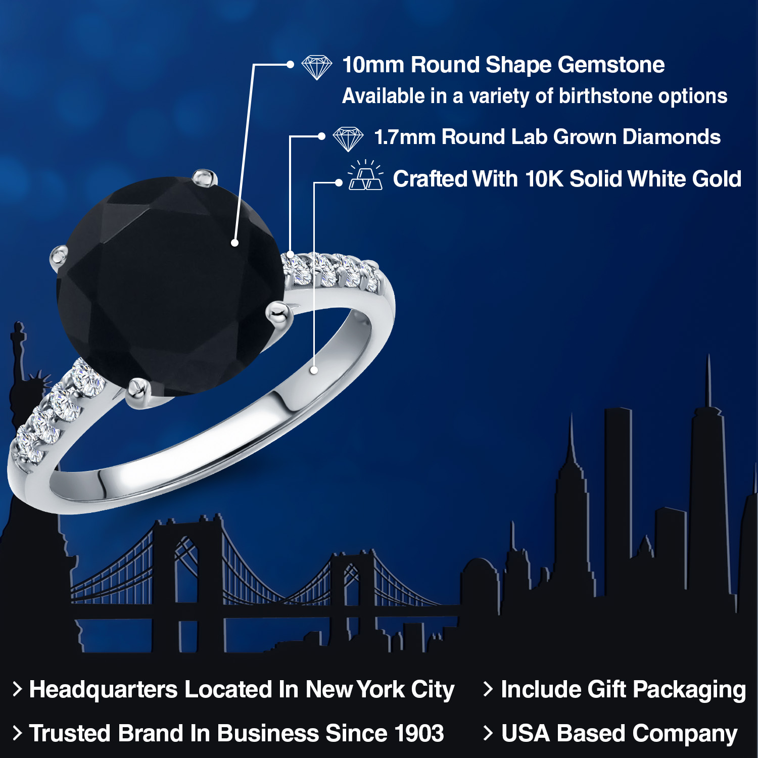 10K White Gold Round 10MM Gemstone Birthstone and Lab Grown Diamond Engagement Ring For Women | Wedding Anniversary Promise Ring For Women | Size 5,6,7,8,9