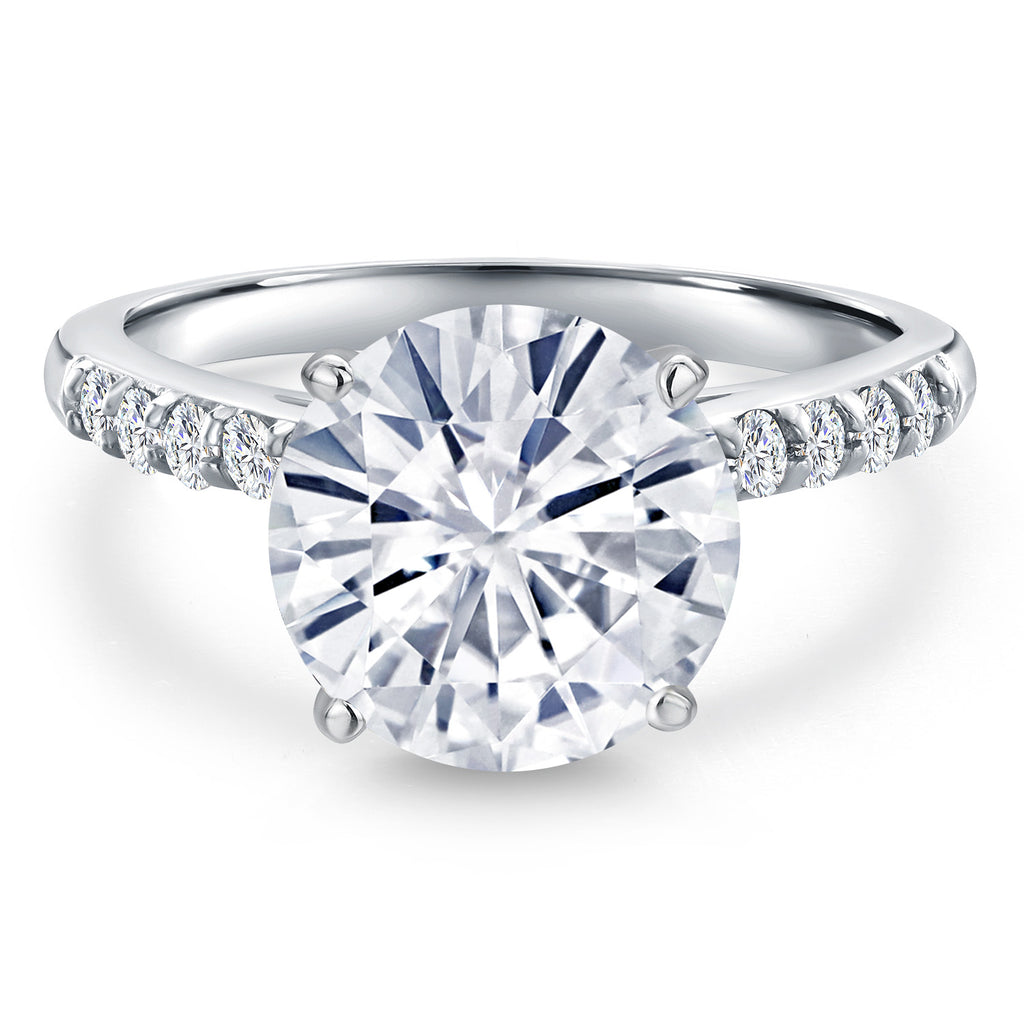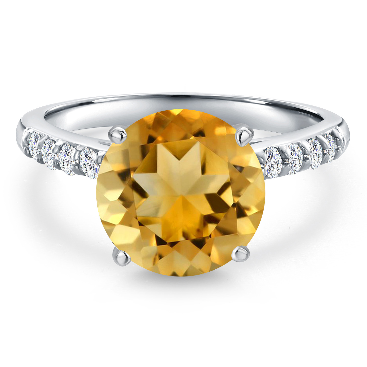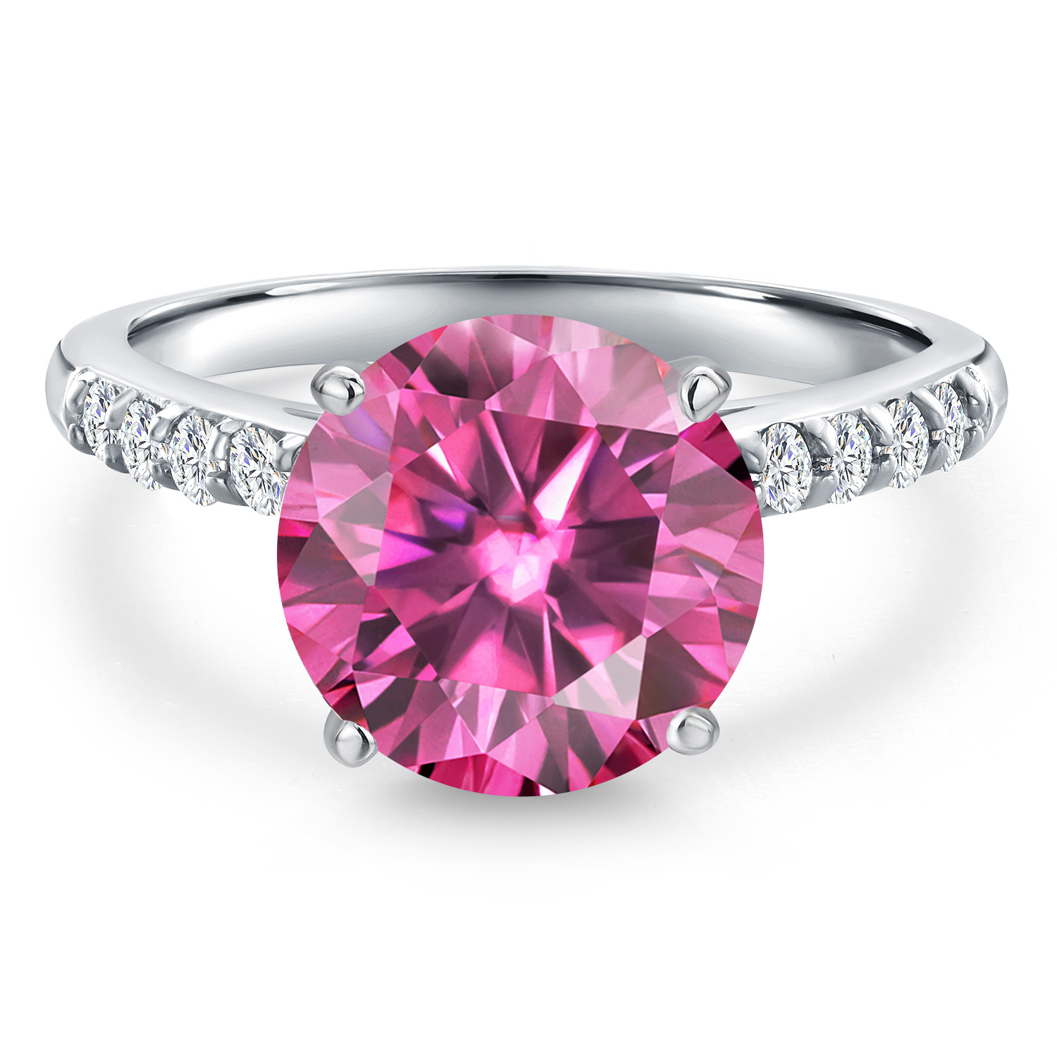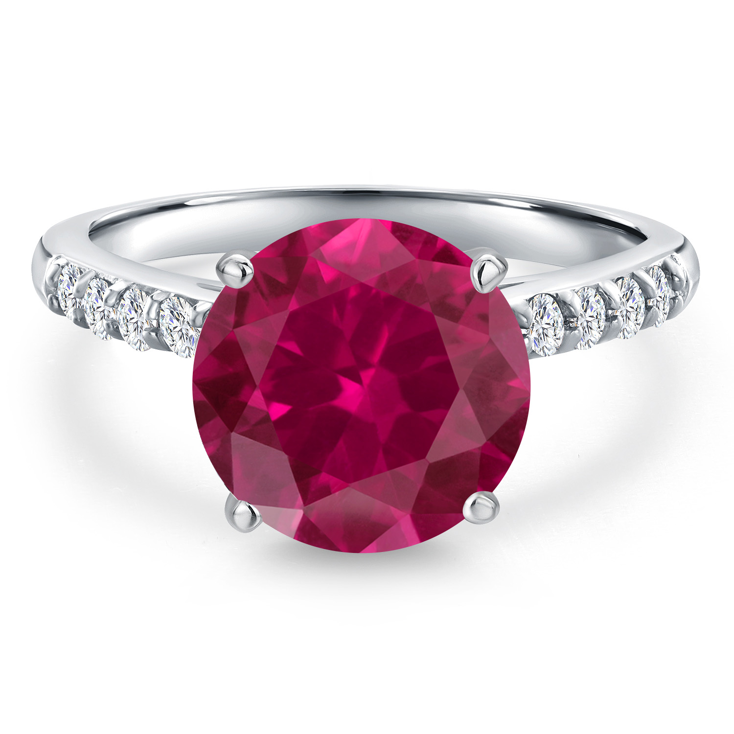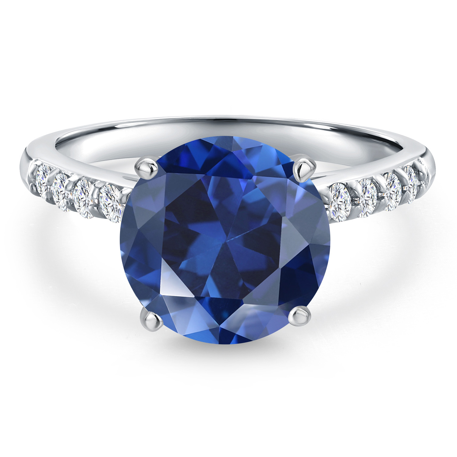 10K White Gold Round 10MM Gemstone Birthstone and Lab Grown Diamond Engagement Ring For Women | Wedding Anniversary Promise Ring For Women | Size 5,6,7,8,9