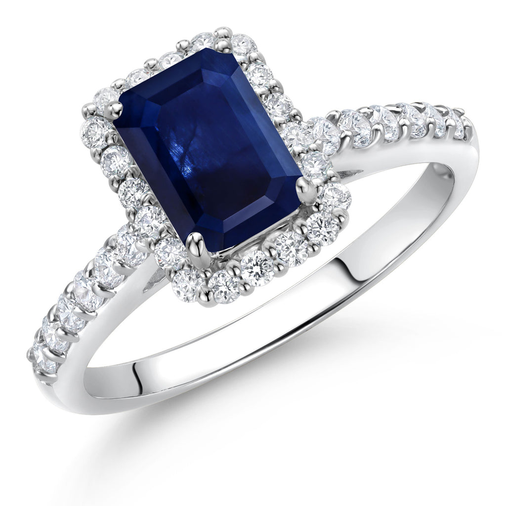 BLUE SAPPHIRE AND LAB-GROWN DIAMOND GEMSTONES: Showcasing a 7x5MM emerald-cut blue sapphire surrounded by sparkling white lab-grown diamonds, this ring offers a total weight of 1.90 carats. As the September birthstone, sapphire is prized for its deep, rich color and lasting beauty, while the halo of diamonds adds brilliance and dimension.