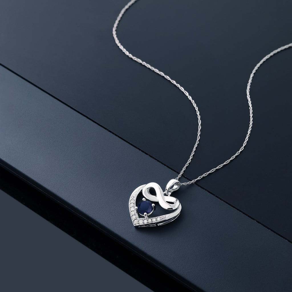 SYMBOLIC HEART AND INFINITY DESIGN: This elegant pendant necklace features a meaningful heart and infinity design, symbolizing eternal love and connection, enhanced by a 1.02 Cttw round 5MM blue sapphire and white lab-grown diamonds.
