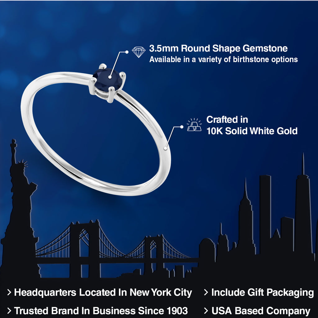 0.22 CTTW ROUND BLUE SAPPHIRE CENTERPIECE: This elegant solitaire engagement ring features a 3.5MM round-cut natural blue sapphire totaling 0.22 carats. As September’s birthstone, blue sapphire symbolizes loyalty, wisdom, and inner strength—making it a meaningful and refined choice for a lifelong promise of love and devotion.