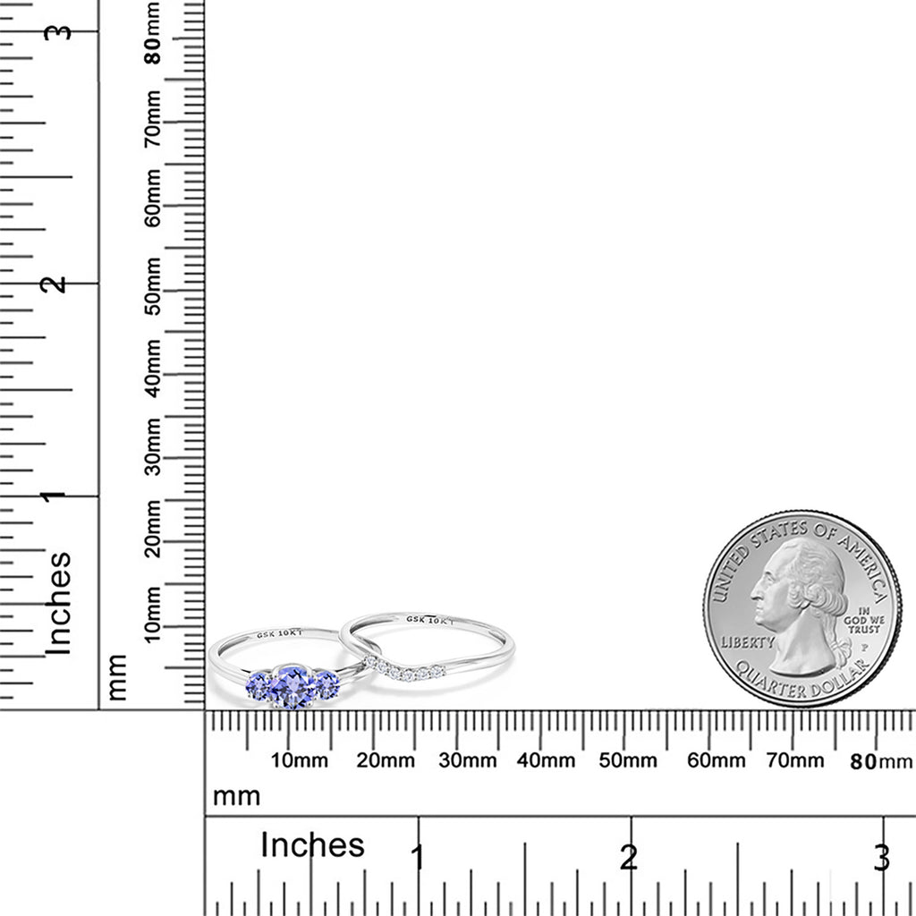 10K White Gold Blue Tanzanite and White Lab Grown Diamond 3-Stone Bridal Engagement Wedding Ring Set For Women (0.77 Cttw | Round 5MM | Available In Size 5, 6, 7, 8, 9