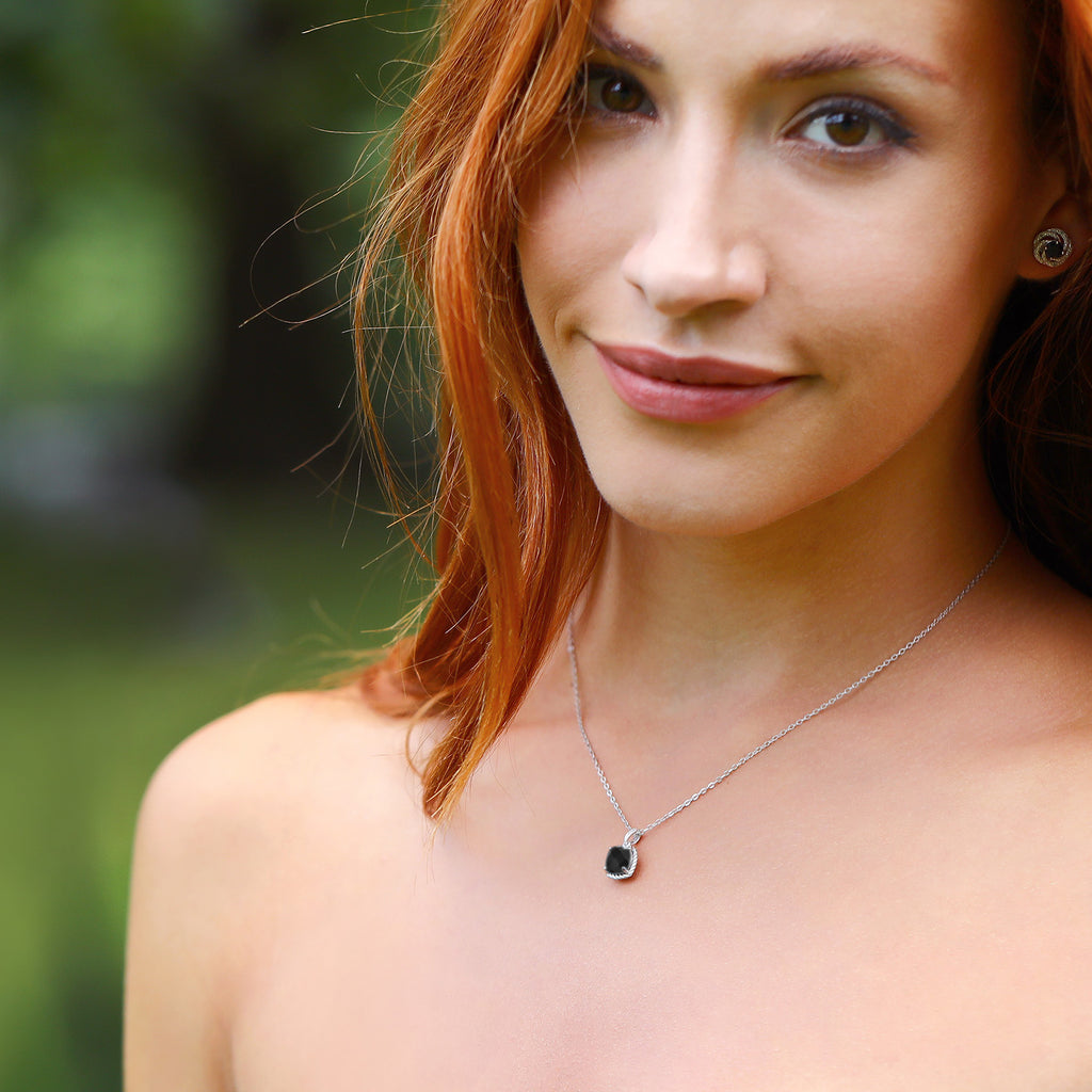 ELEGANT CRAFTSMANSHIP: This stunning necklace features a beautiful 10K white gold setting, showcasing a captivating 8MM cushion-cut gemstone birthstone, making it a timeless and sophisticated piece of jewelry.