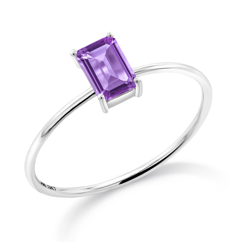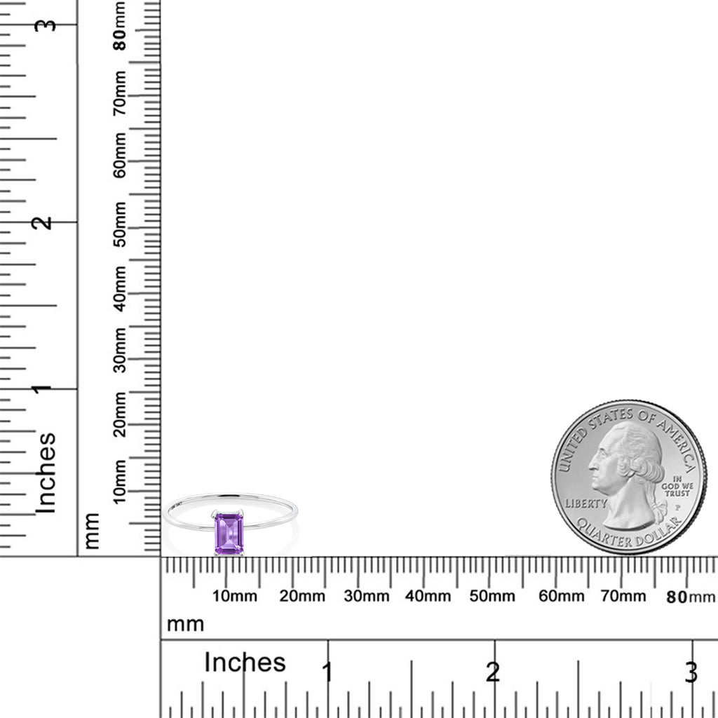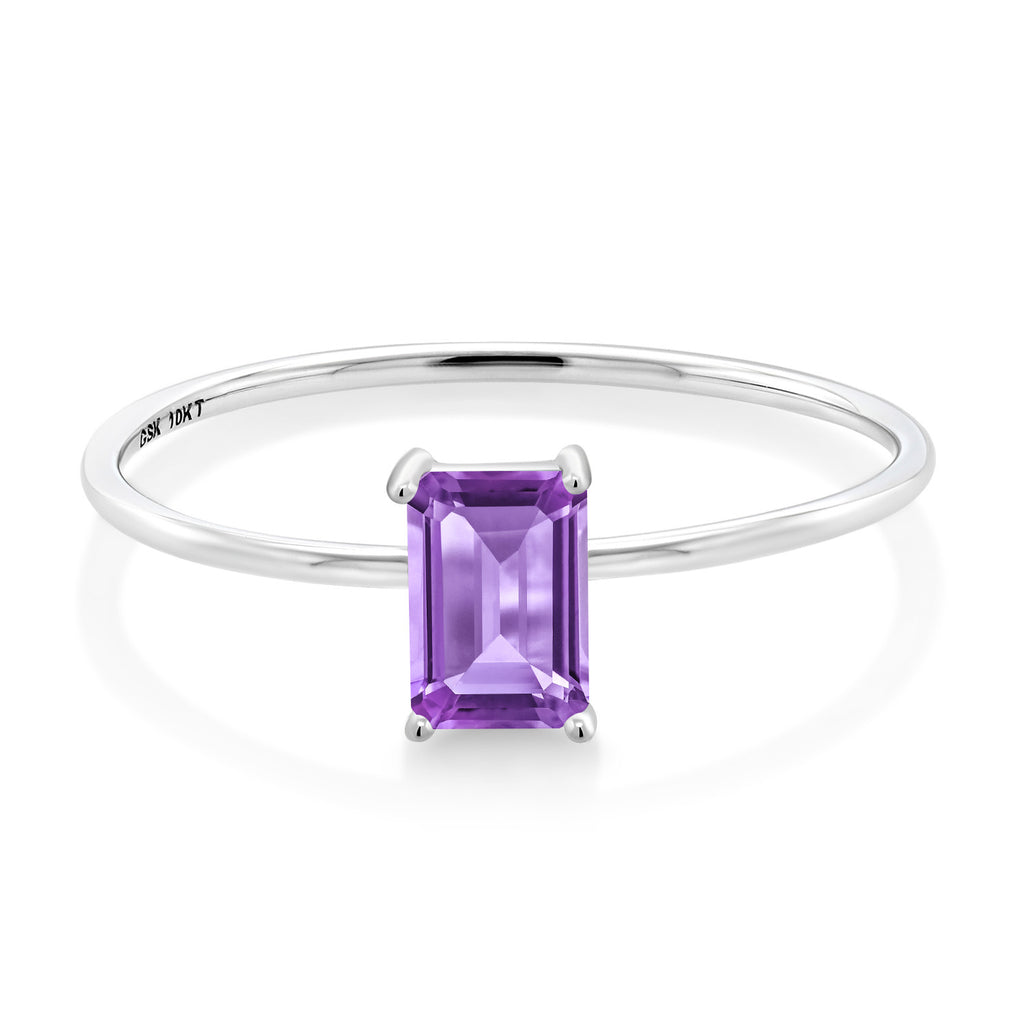 10K White Gold 6X4MM Emerald Cut Gemstone Birthstone Solitaire Engagement Ring for Women | Wedding Anniversary Promise Gold Ring | Available In Size 5 to 9