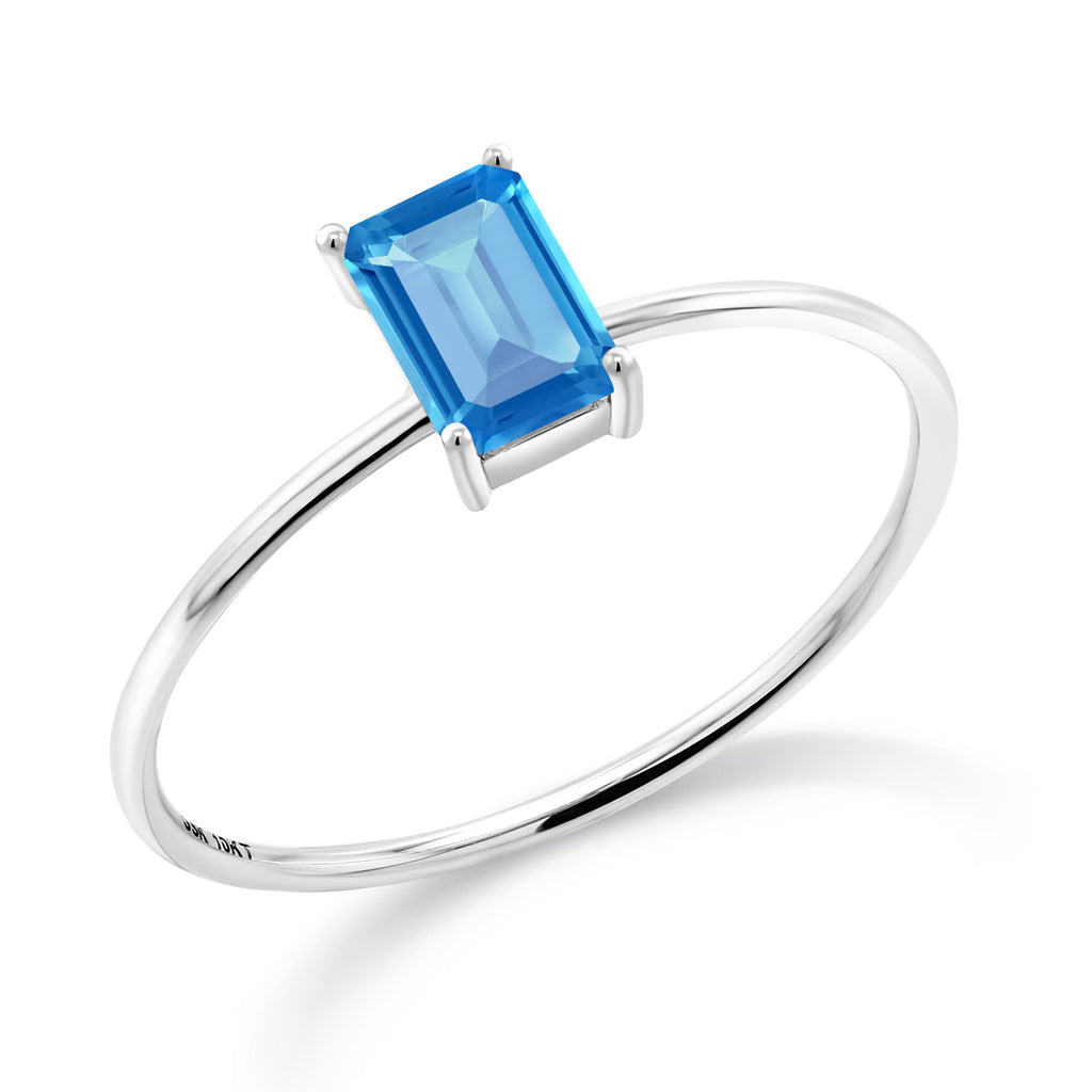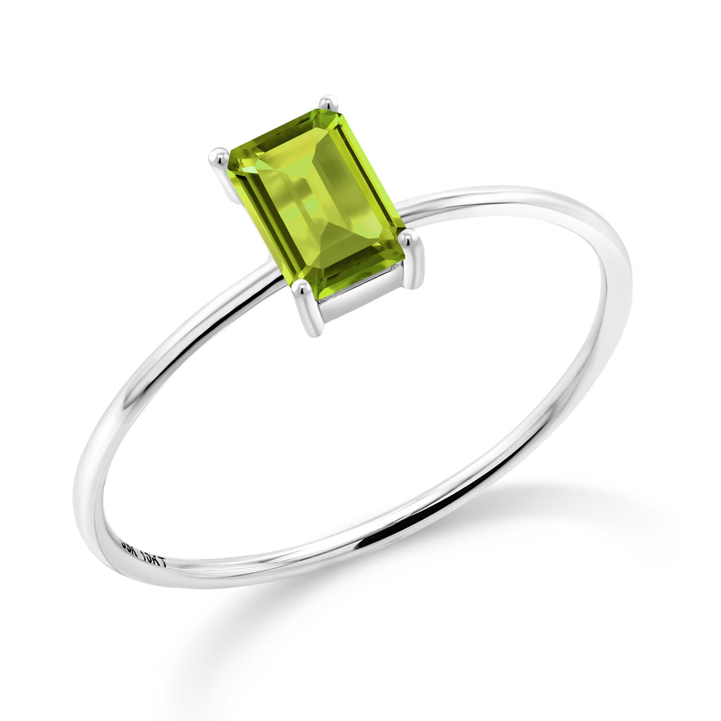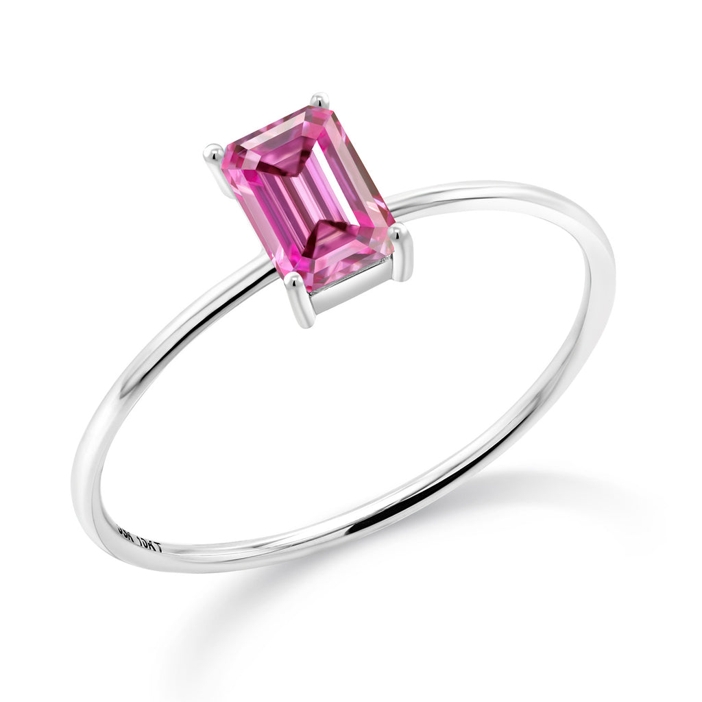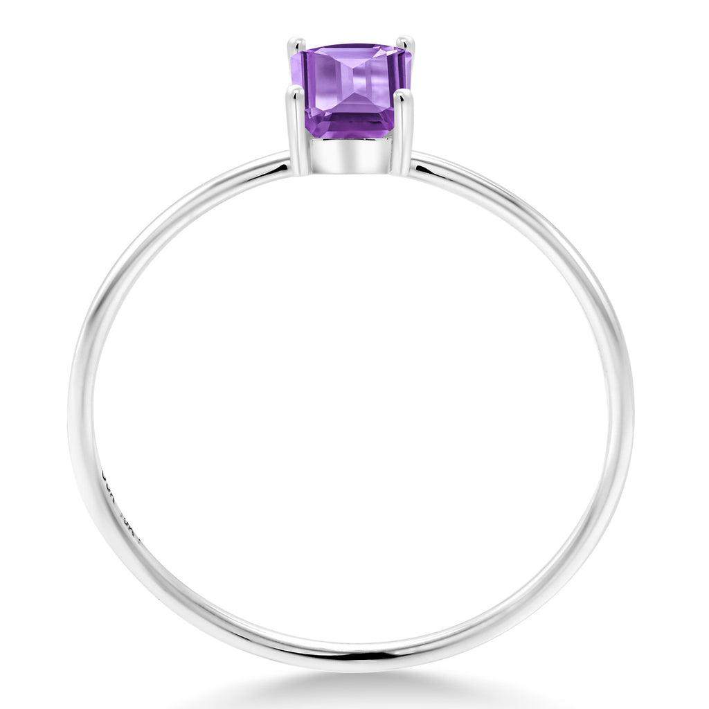 10K White Gold 6X4MM Emerald Cut Gemstone Birthstone Solitaire Engagement Ring for Women | Wedding Anniversary Promise Gold Ring | Available In Size 5 to 9