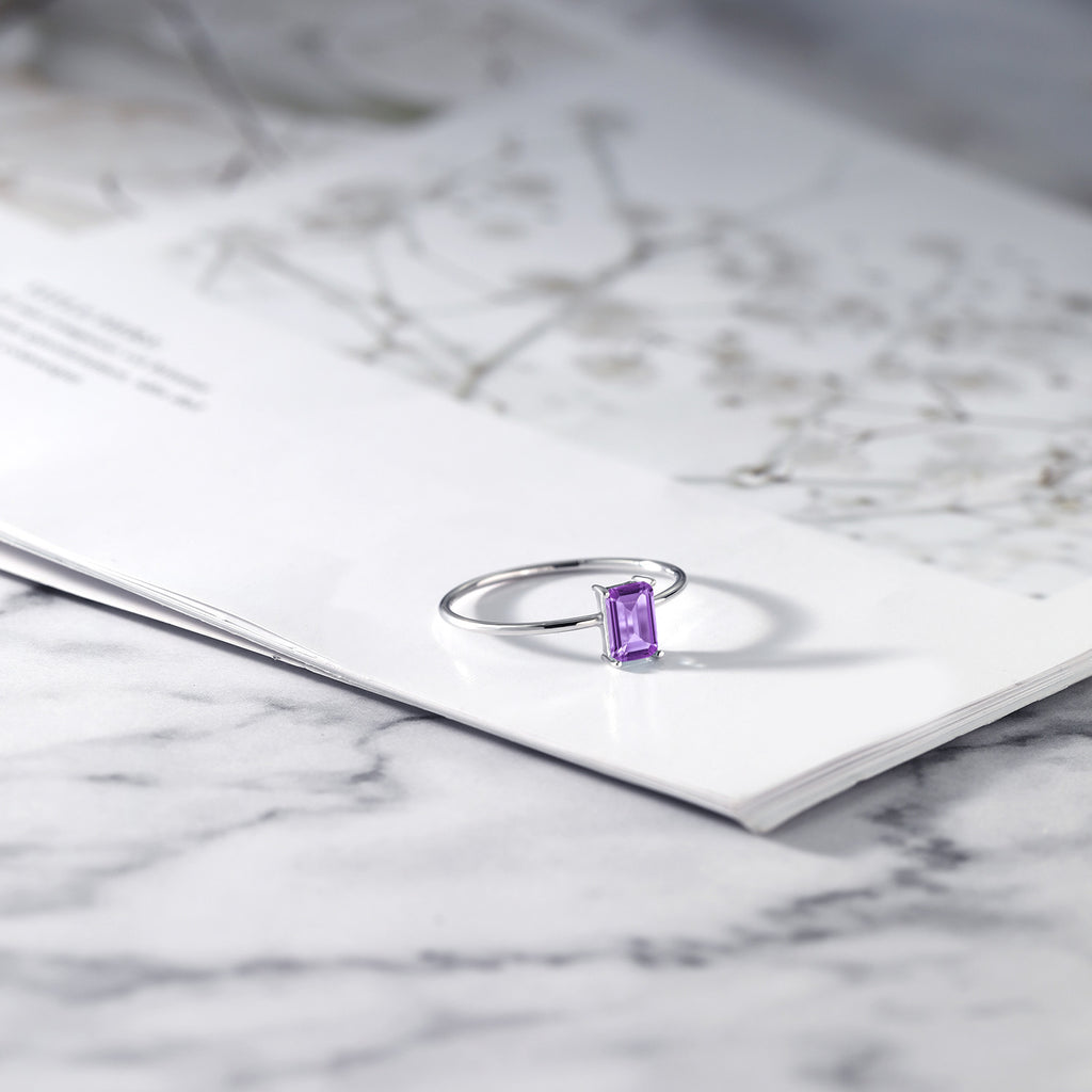 SLEEK AND MINIMALIST DESIGN: Designed for the woman who values subtlety and elegance, this ring’s slender band highlights the gemstone’s beauty without overwhelming it. The minimalist aesthetic ensures that the emerald-cut stone remains the focal point, making it ideal for both engagement and promise ring occasions. Its simplicity enhances its versatility for daily wear.